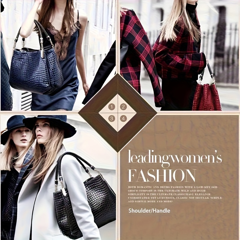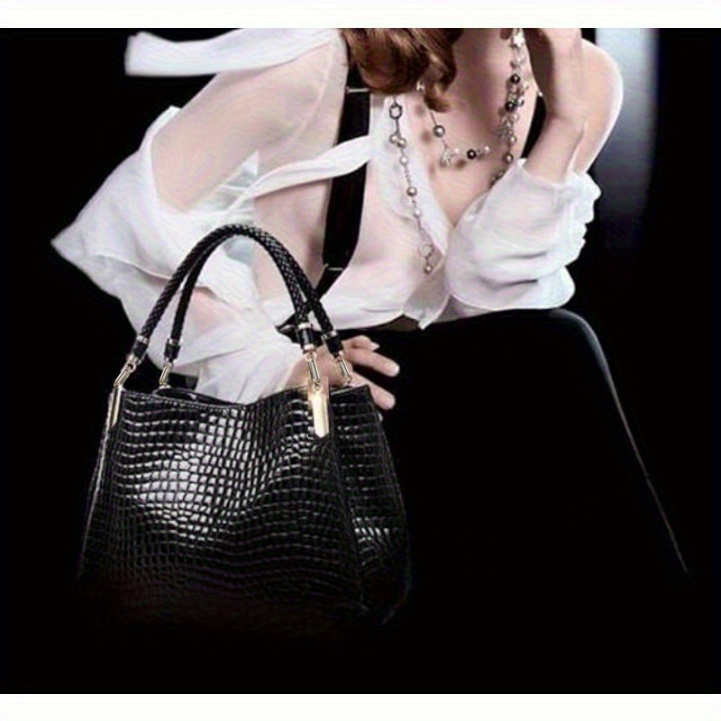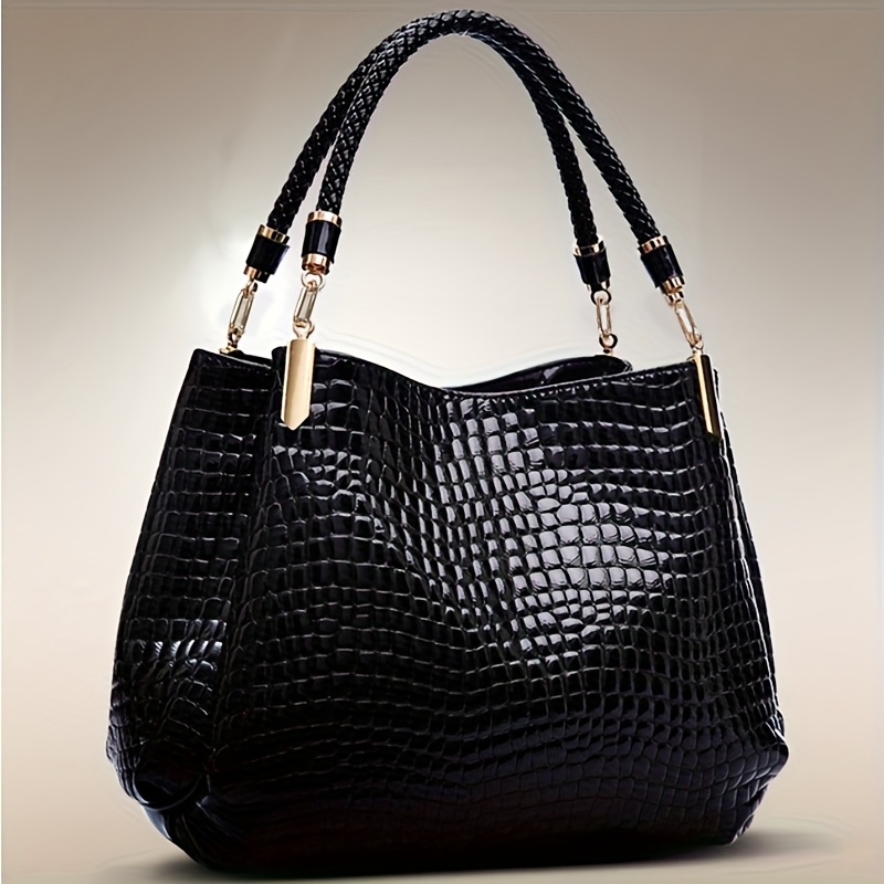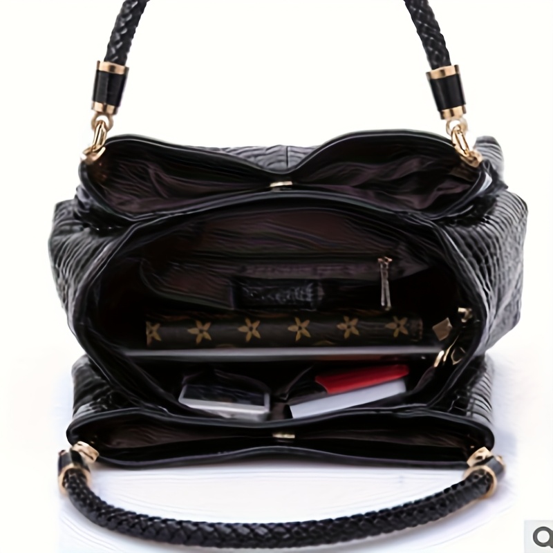 Sac bandoulière noir embossé crocodile – multi-poches, durable et élégant, parfait quotidien et voyage
