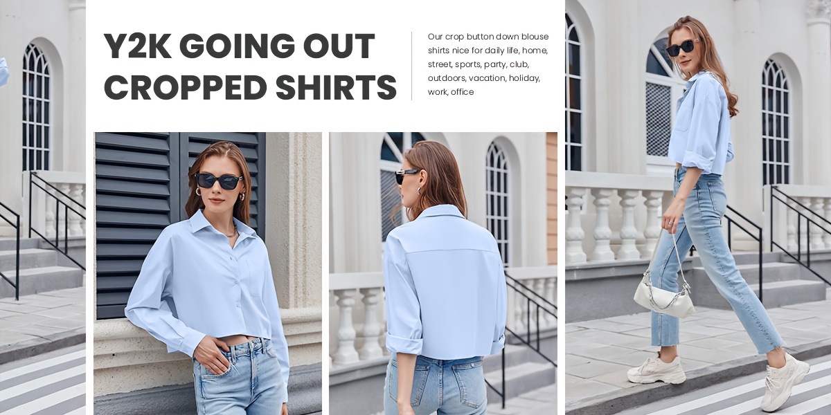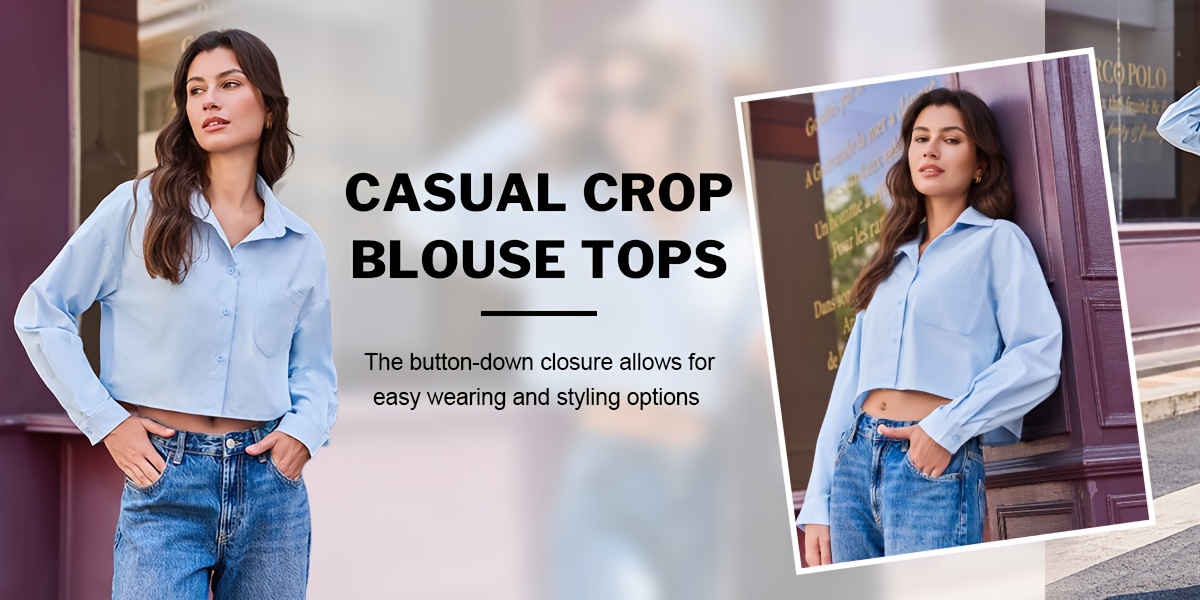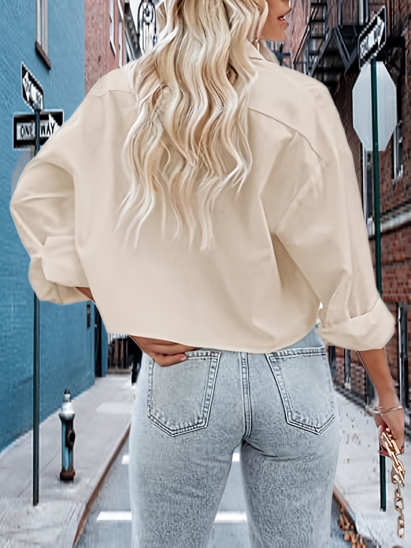 Blouse courte chic pour femmes – Manches longues, boutons, poche poitrine, tissu opaque, coupe ample, noir et couleurs neutres