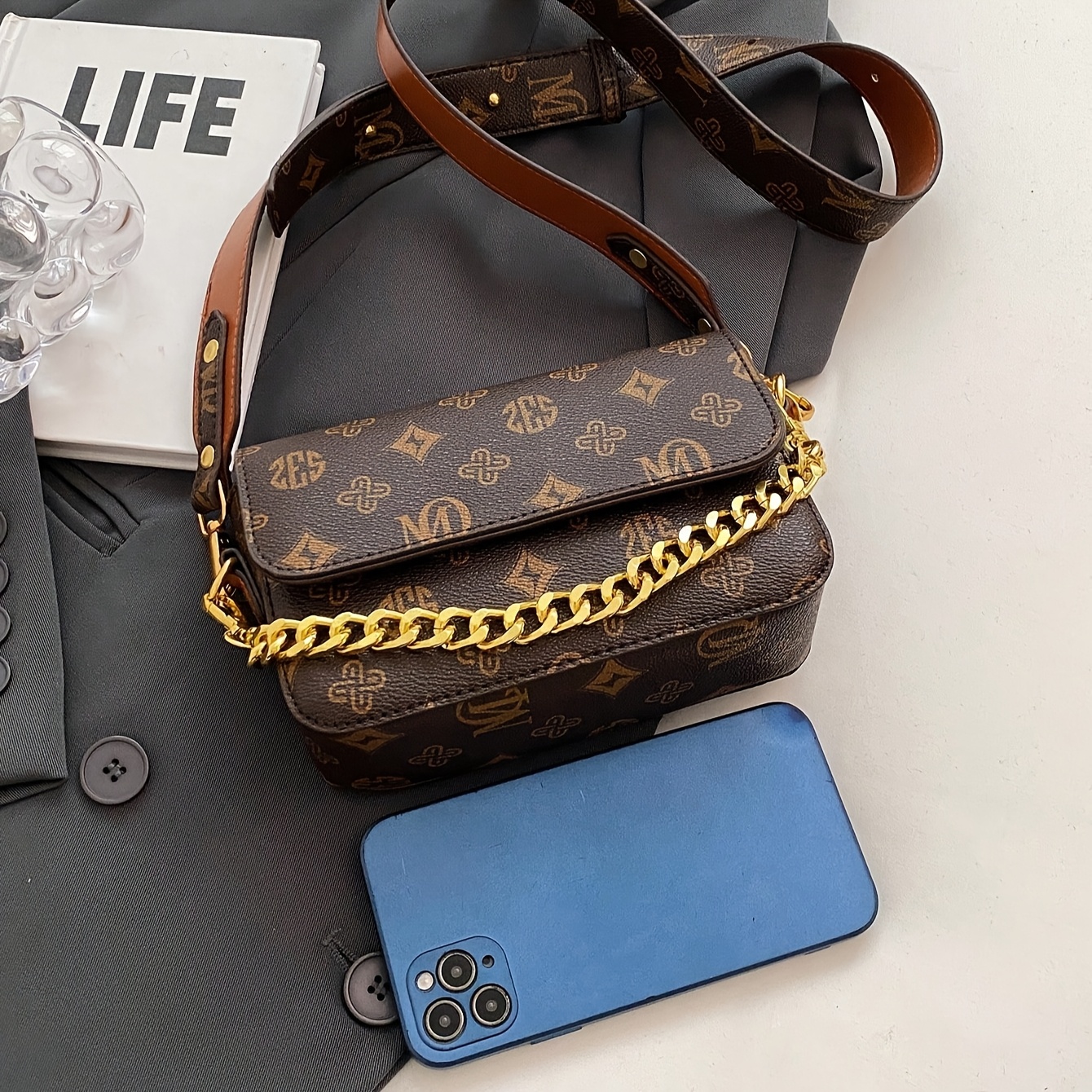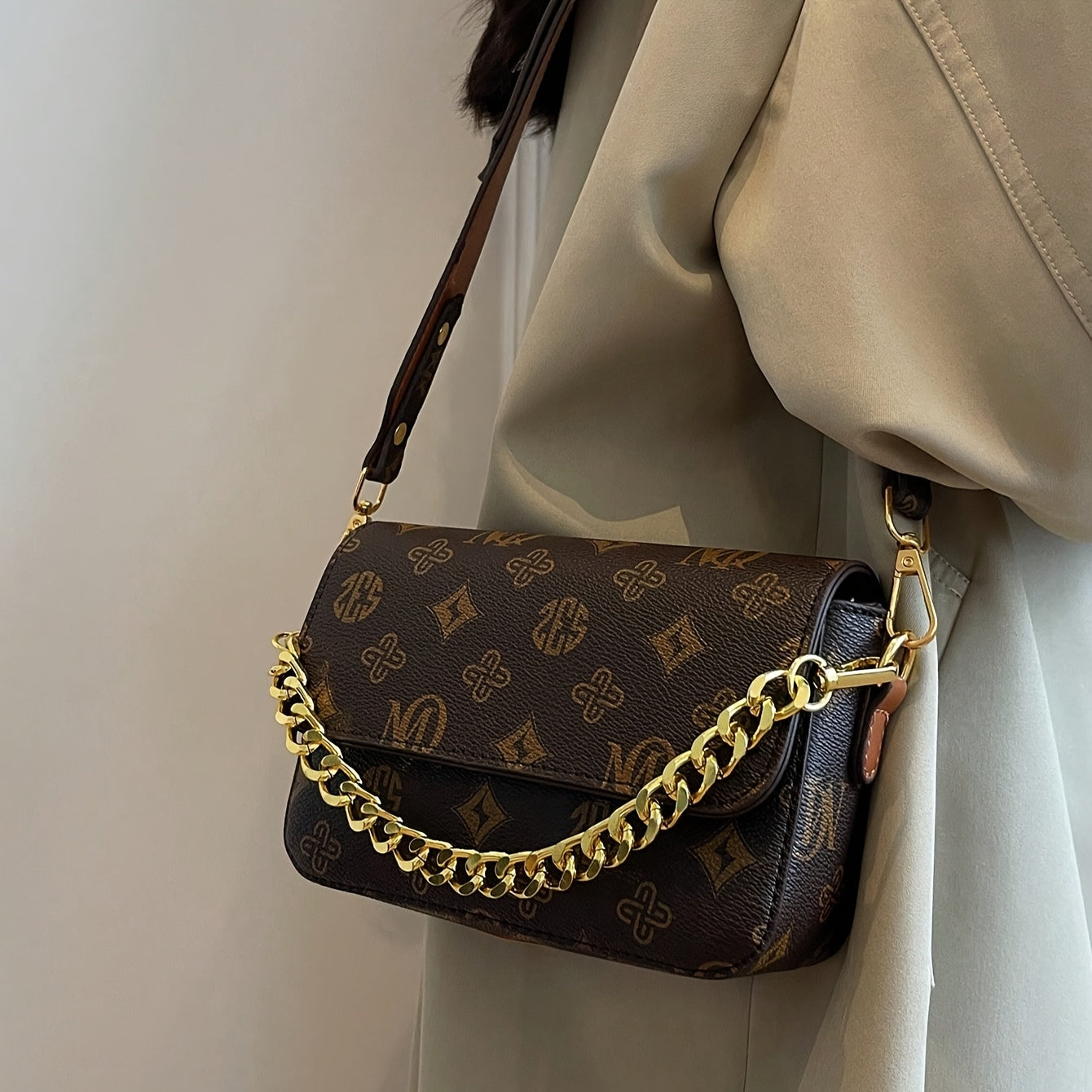 Sac convertible marron café pour femmes – Bandoulière chaîne dorée, fermeture magnétique