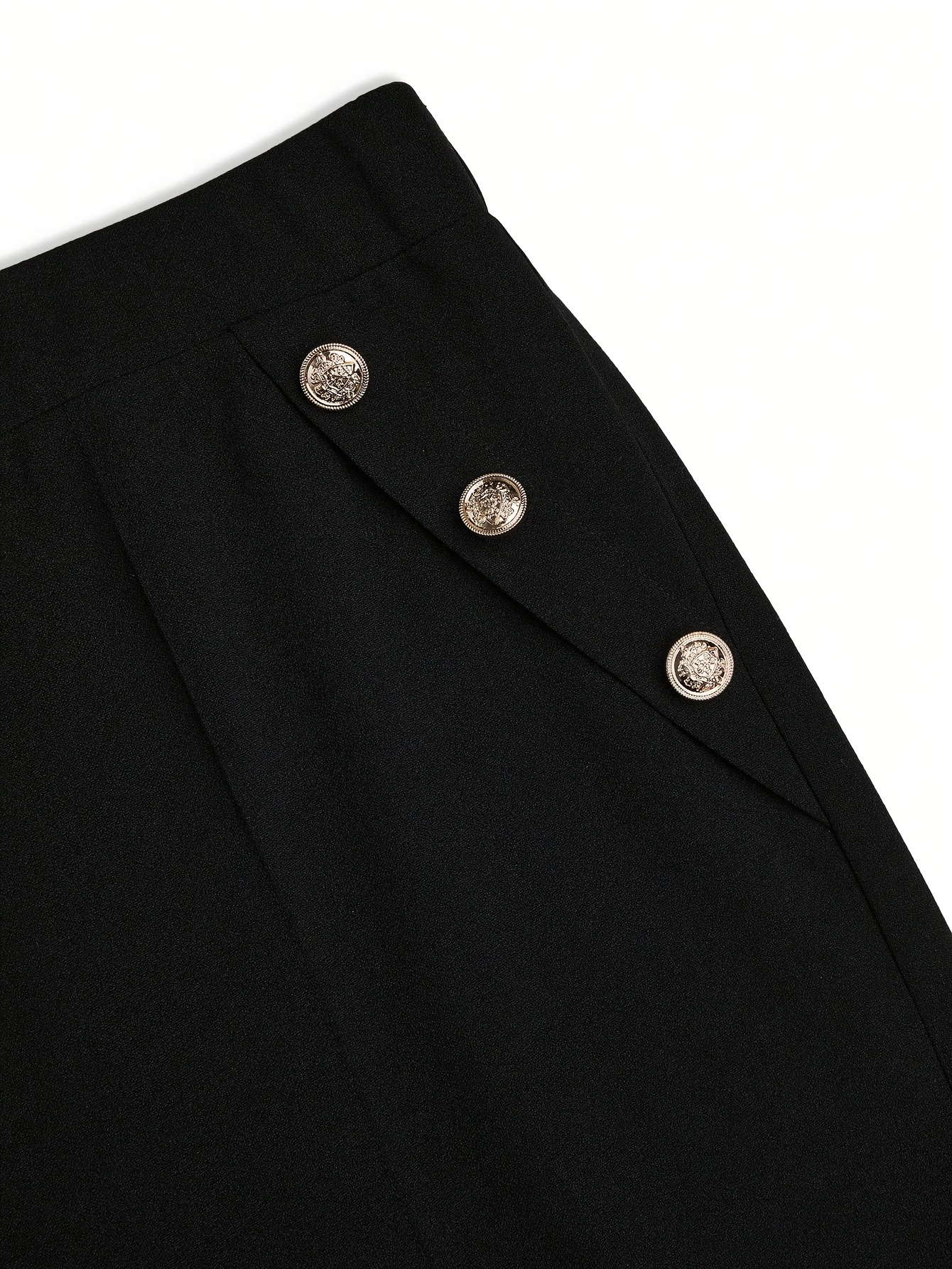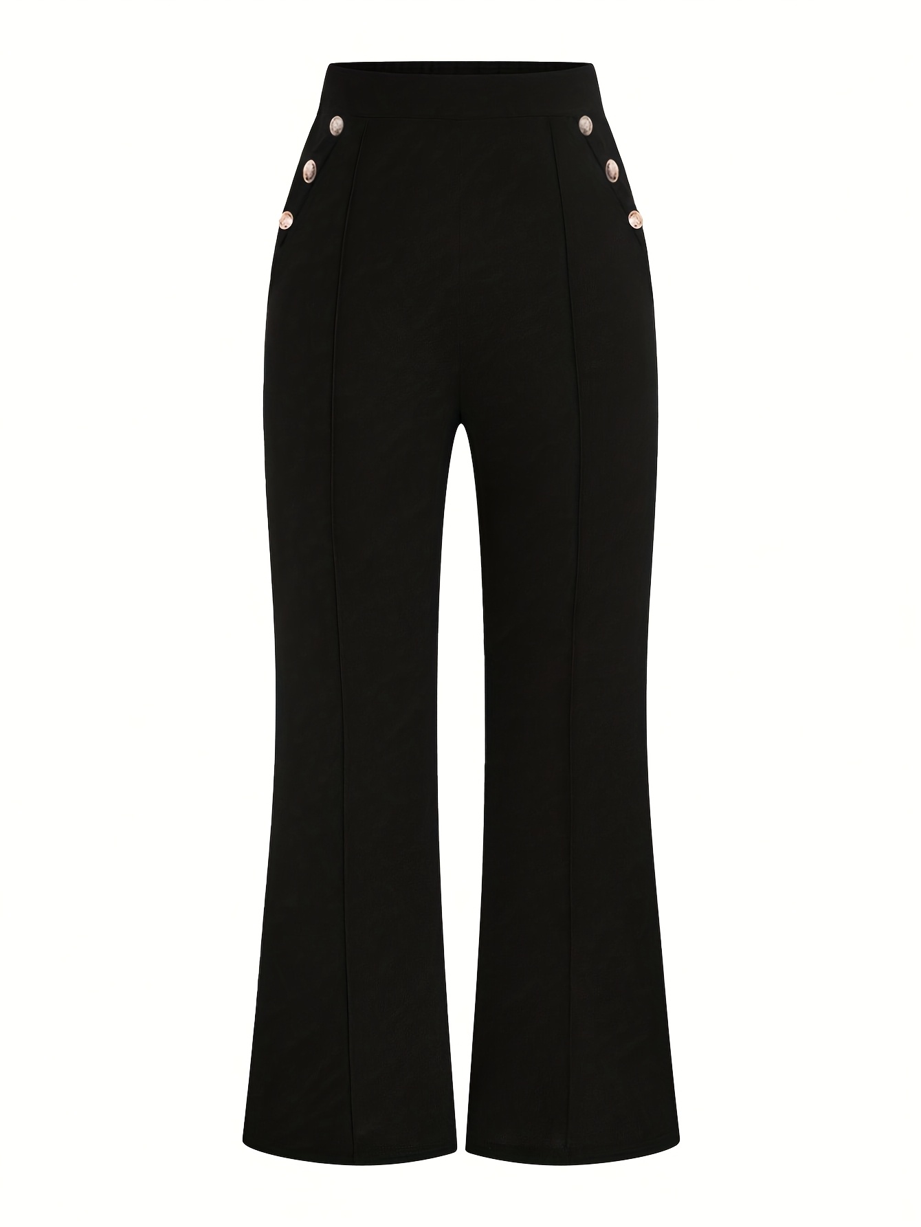 Pantalon Femme Élégant Noir – Jambe Large, Taille Haute avec Boutons