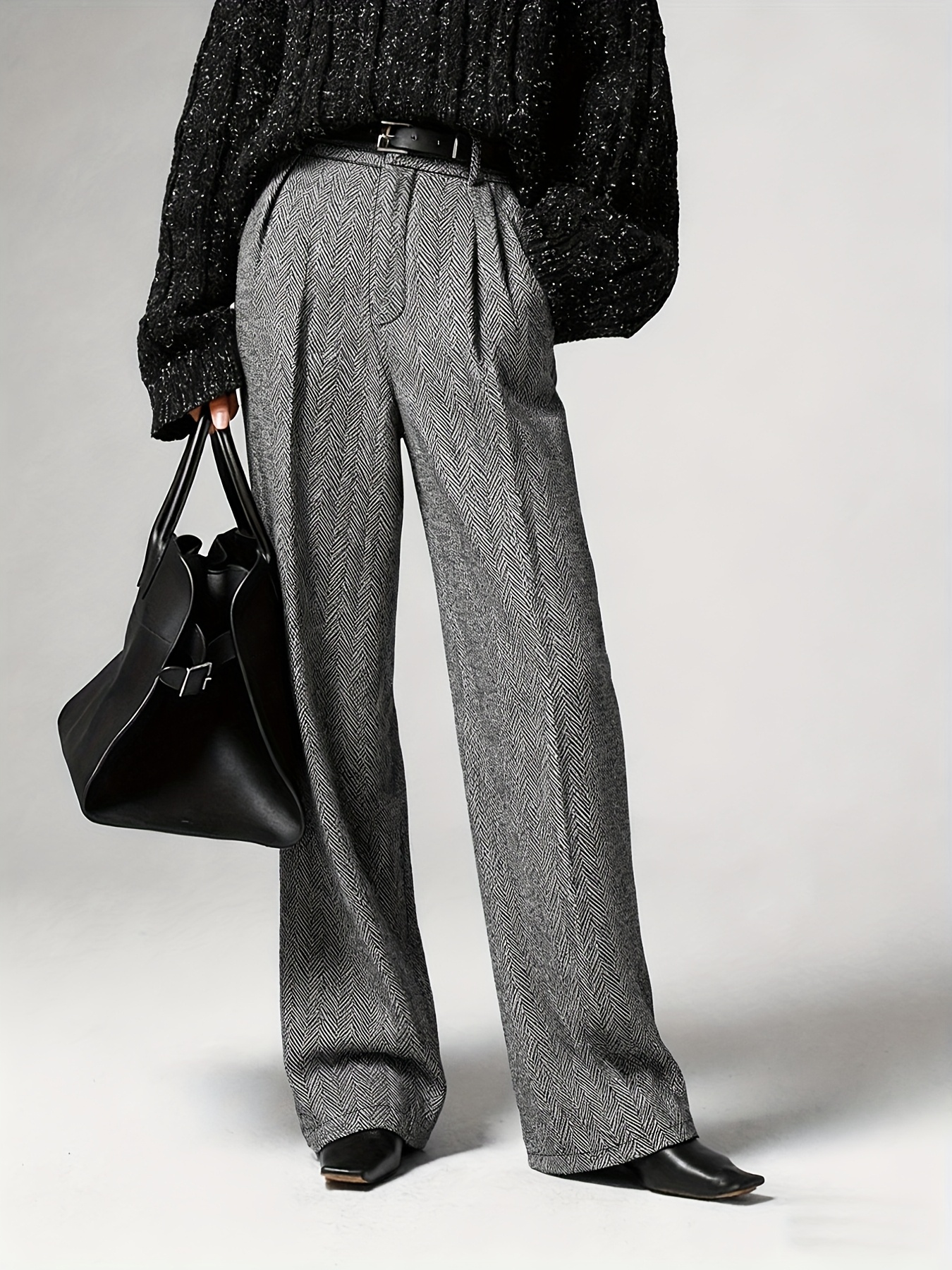 Pantalon Femme Élégant – Motif Géométrique, Coupe Tailleur, Bureau et Semi-Formel, Sans Extensibilité, Tous Saisons