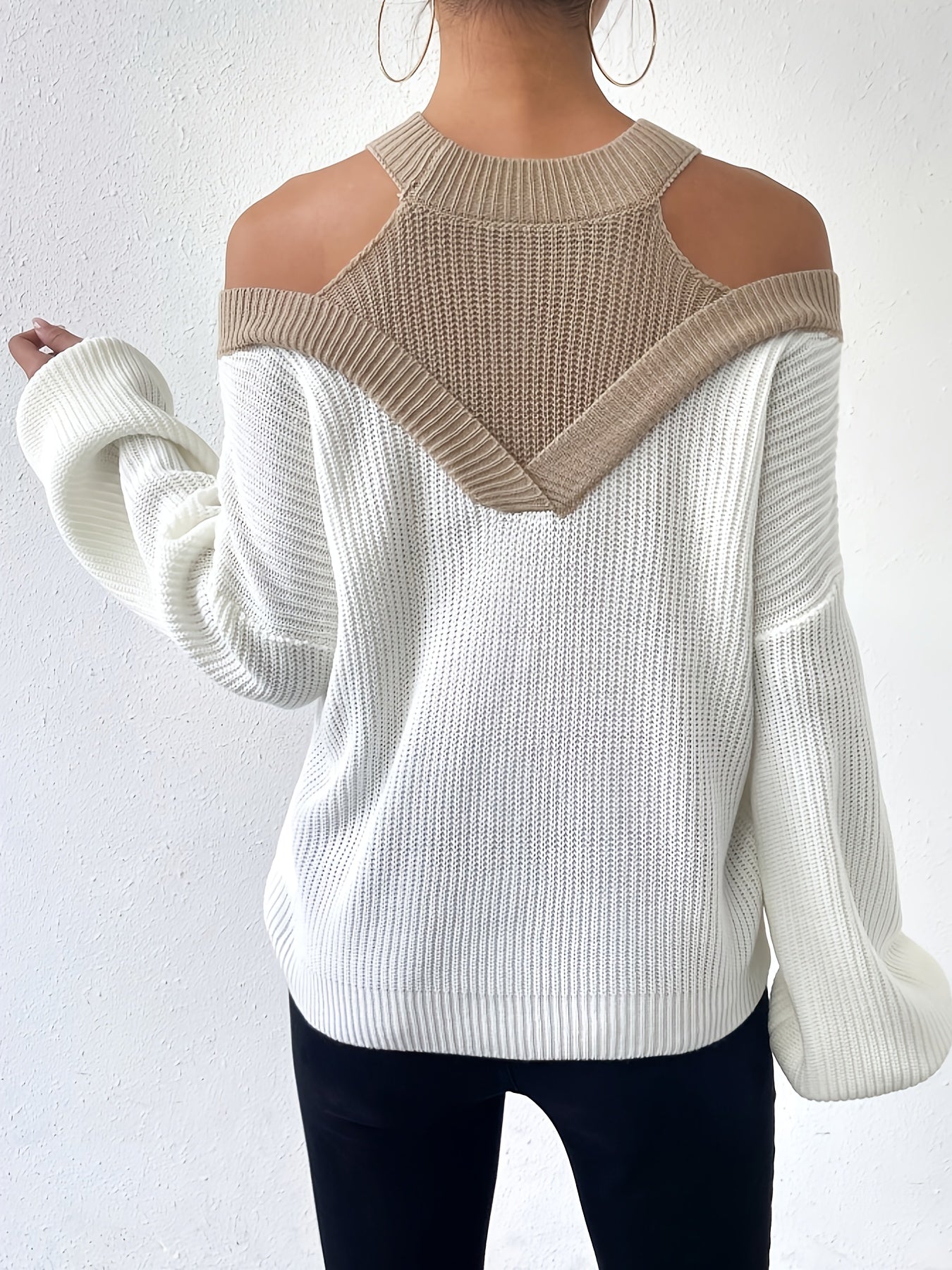 Pull élégant épaules dénudées pour femmes – Manches longues, doux, couleur unie, coupe régulière, automne/hiver, polyvalent casual et formel, lavage à la main ou nettoyage à sec