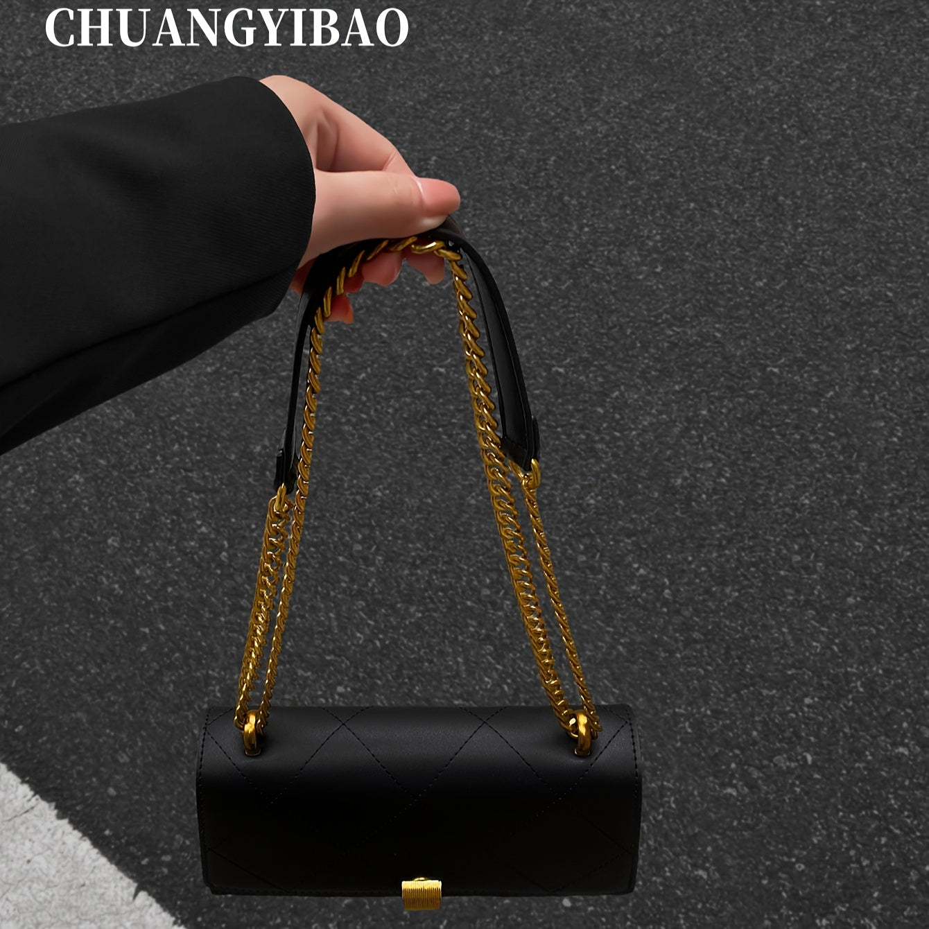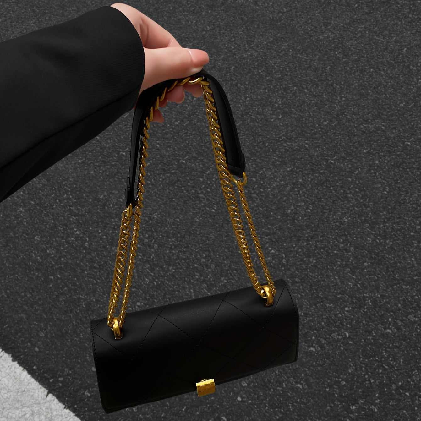 Sac à main synthétique élégant pour femmes – design moderne, bandoulière chaîne réglable, ferrures dorées, noir uni, fermeture boucle dorée, doublure structurée