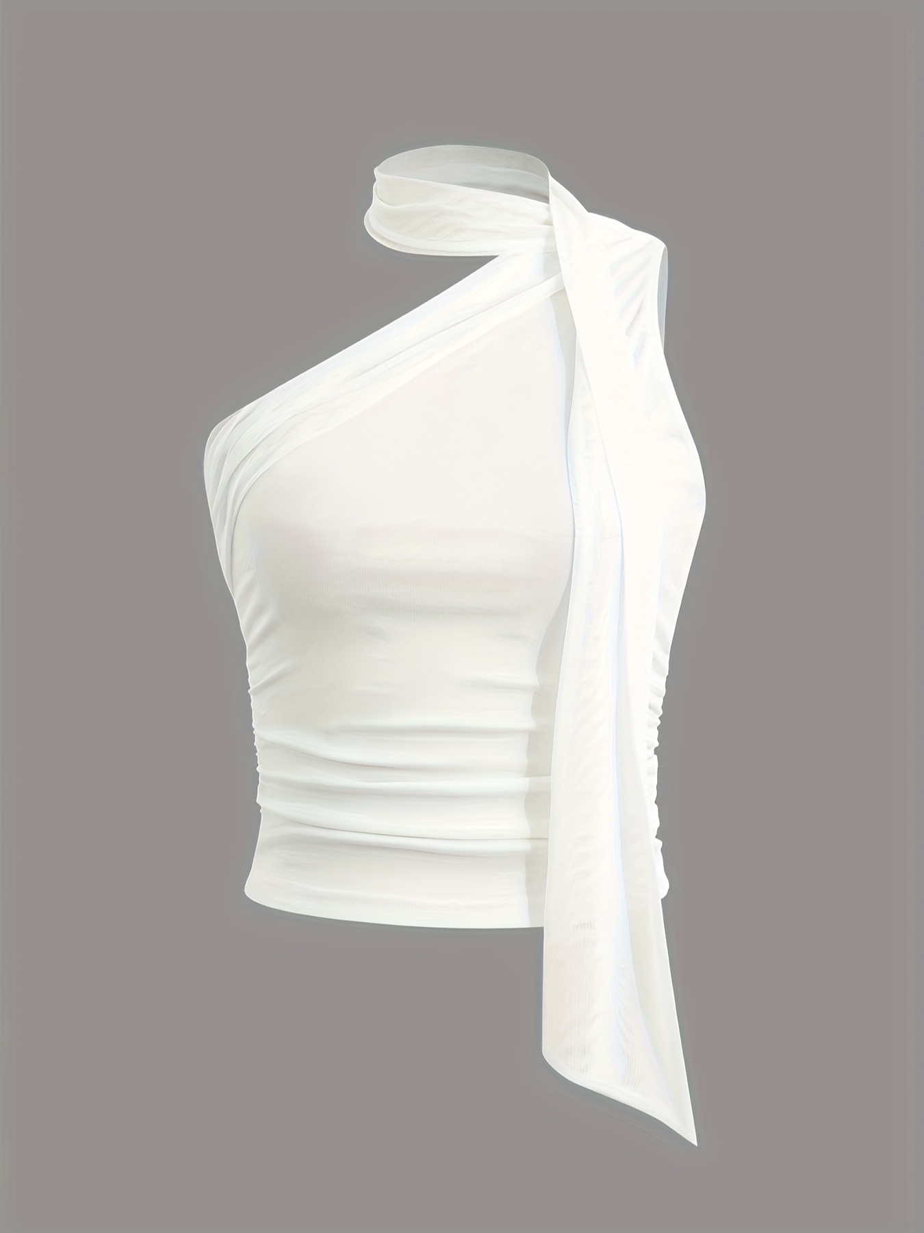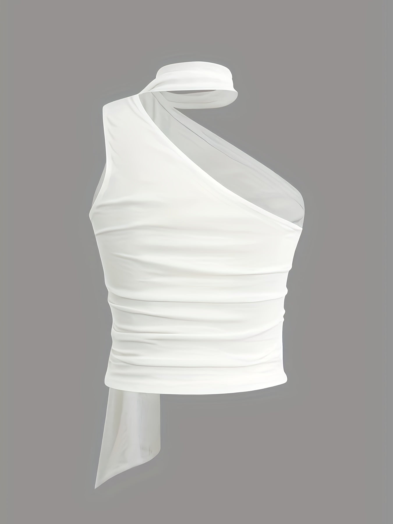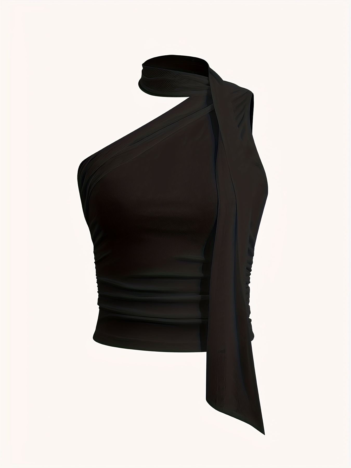 Top femme sexy asymétrique/une épaule – taille réglable à cordon, crop top ajusté, parfait pour fêtes, sorties ou tenue décontractée, non transparent, blouse d’été facile d’entretien, essentiel chic