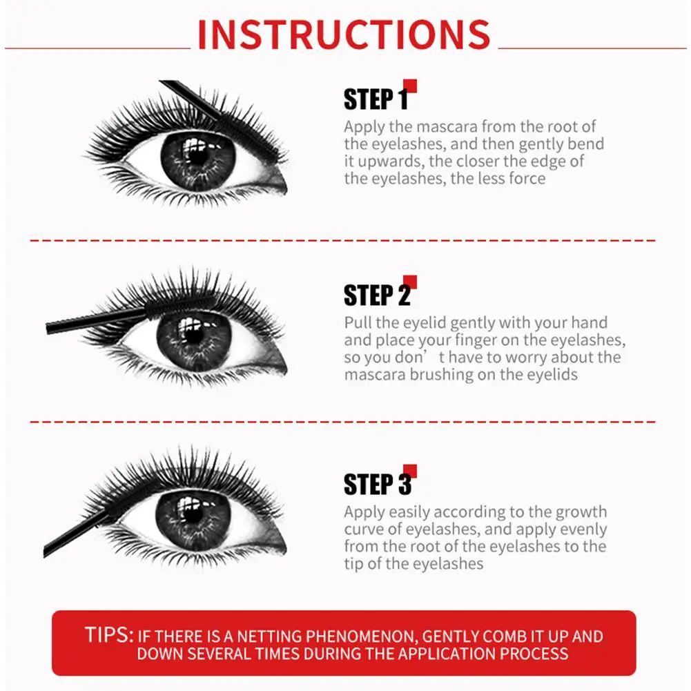 Brush from base to tips of lashes, layering until the desired look is achieved. Washes off easily with warm water.
