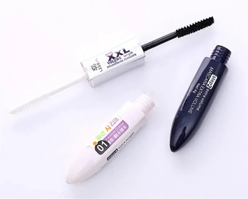 Mascara 2 en 1 4D fibres de soie noir waterproof volume et recourbant double allongeant cils yeux