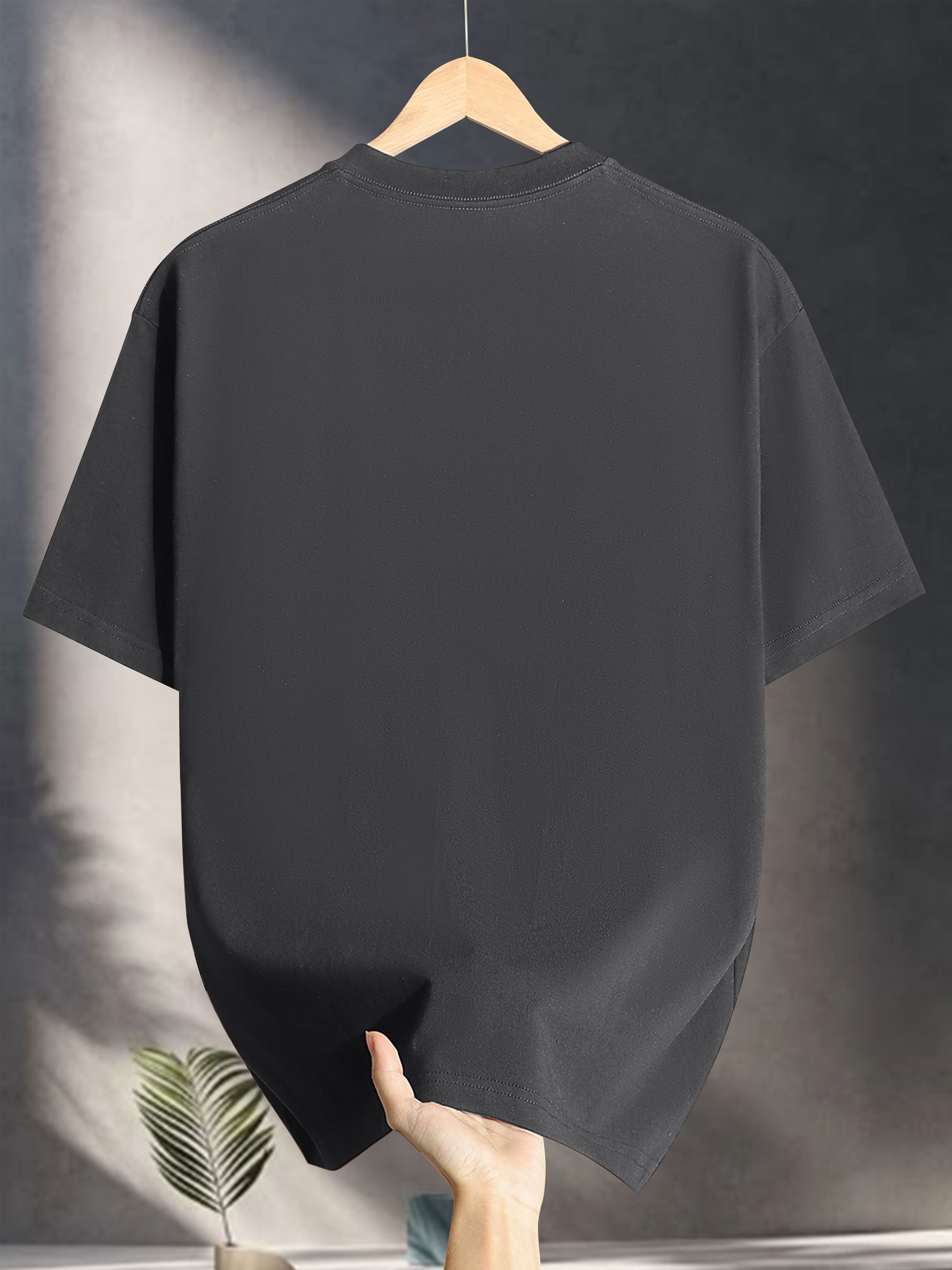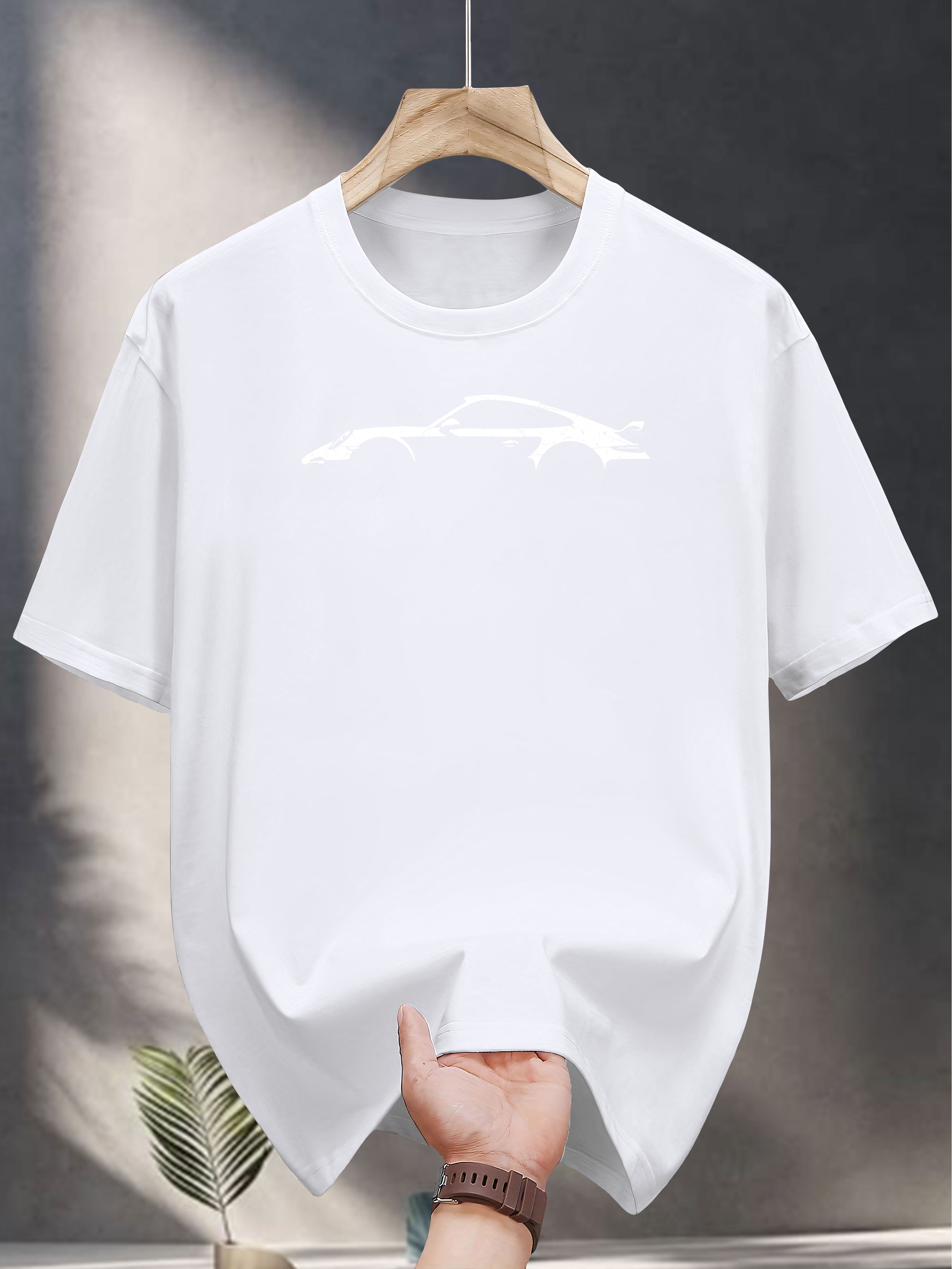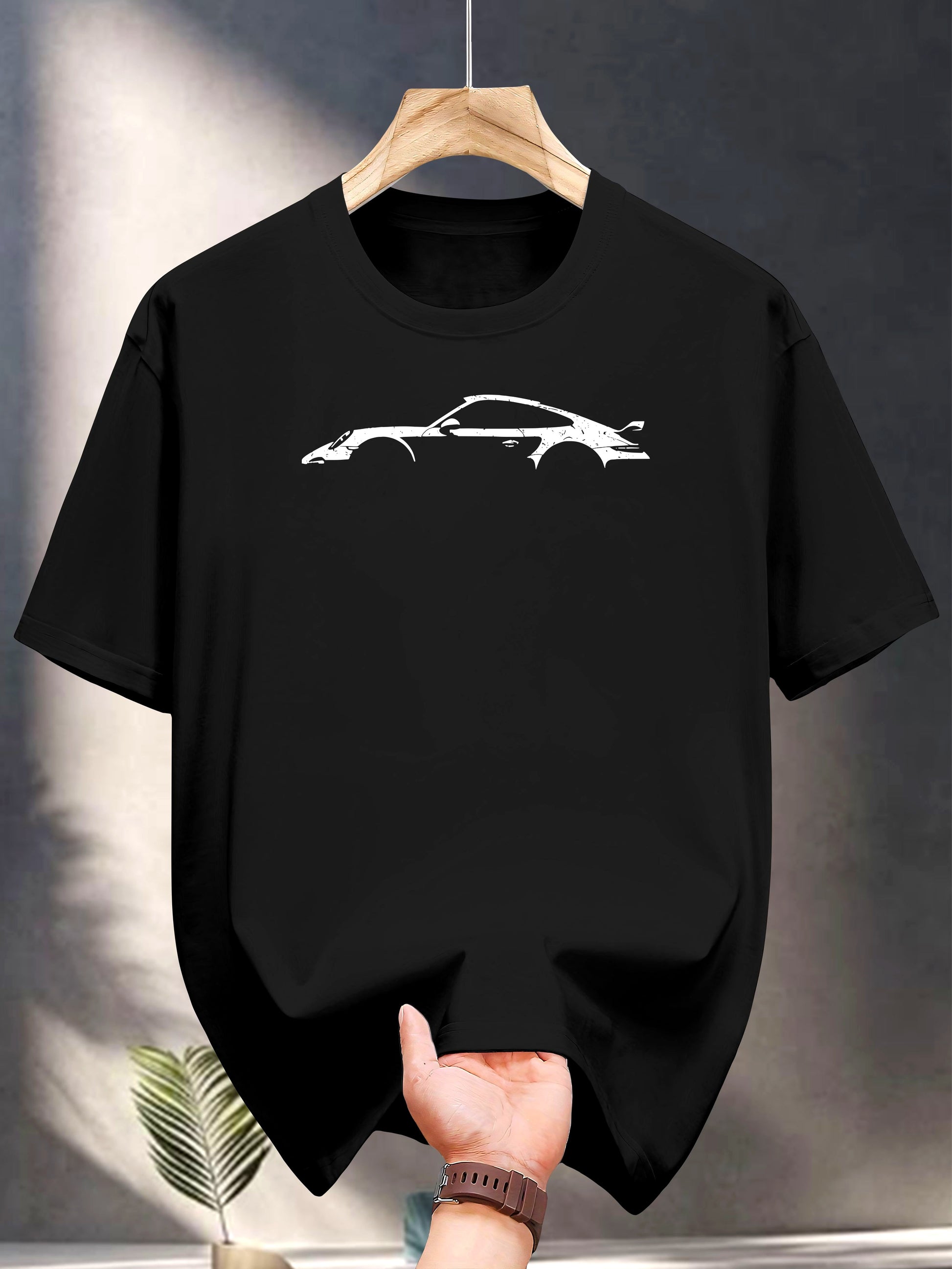 200g 100% Cotton Casual Short Sleeve T-Shirt with Car Graphic Print - Black Round Neck Summer Tee for Adults, Machine Washable