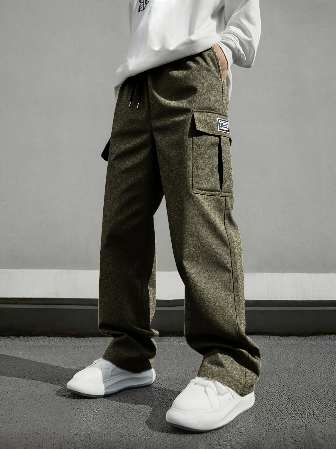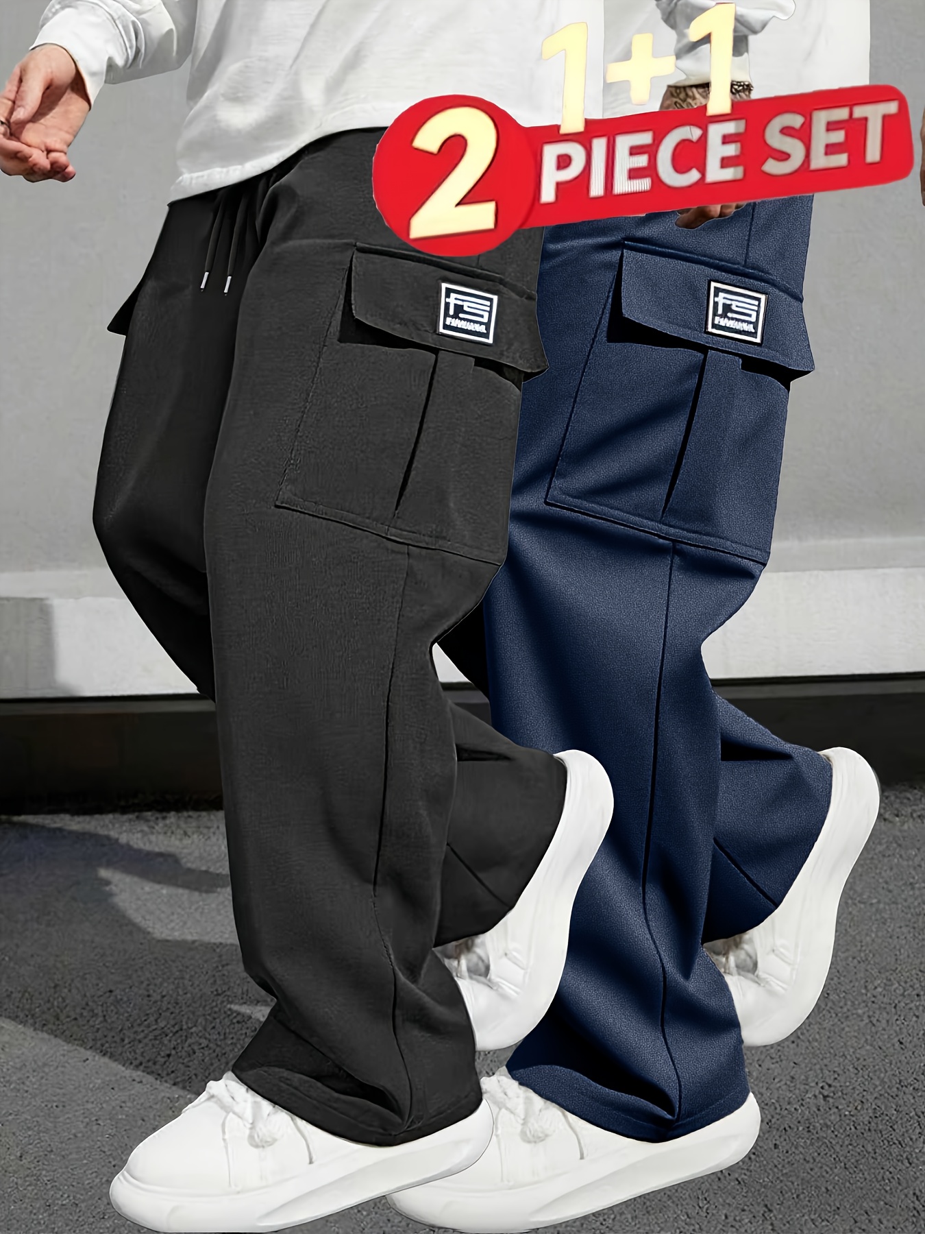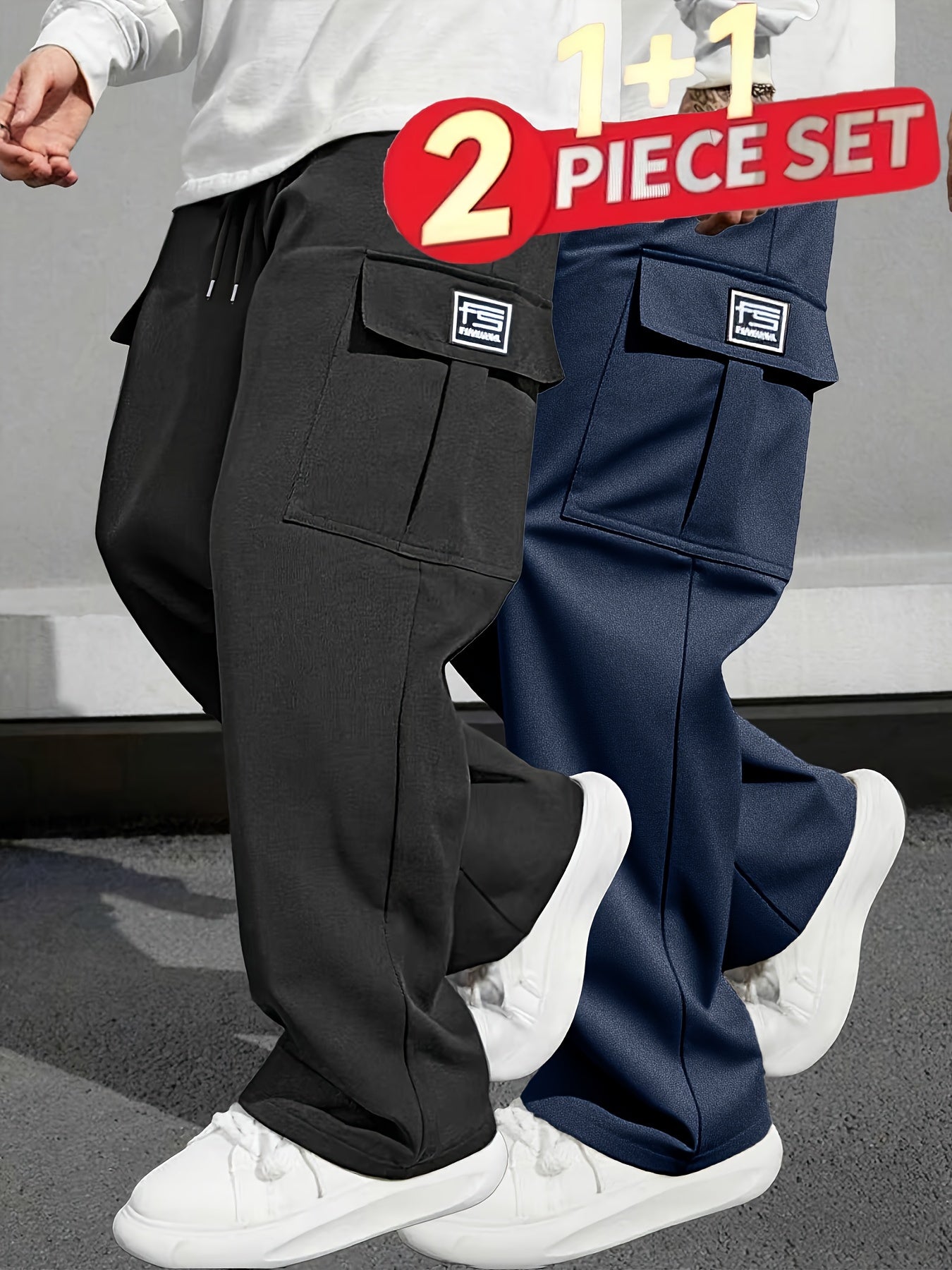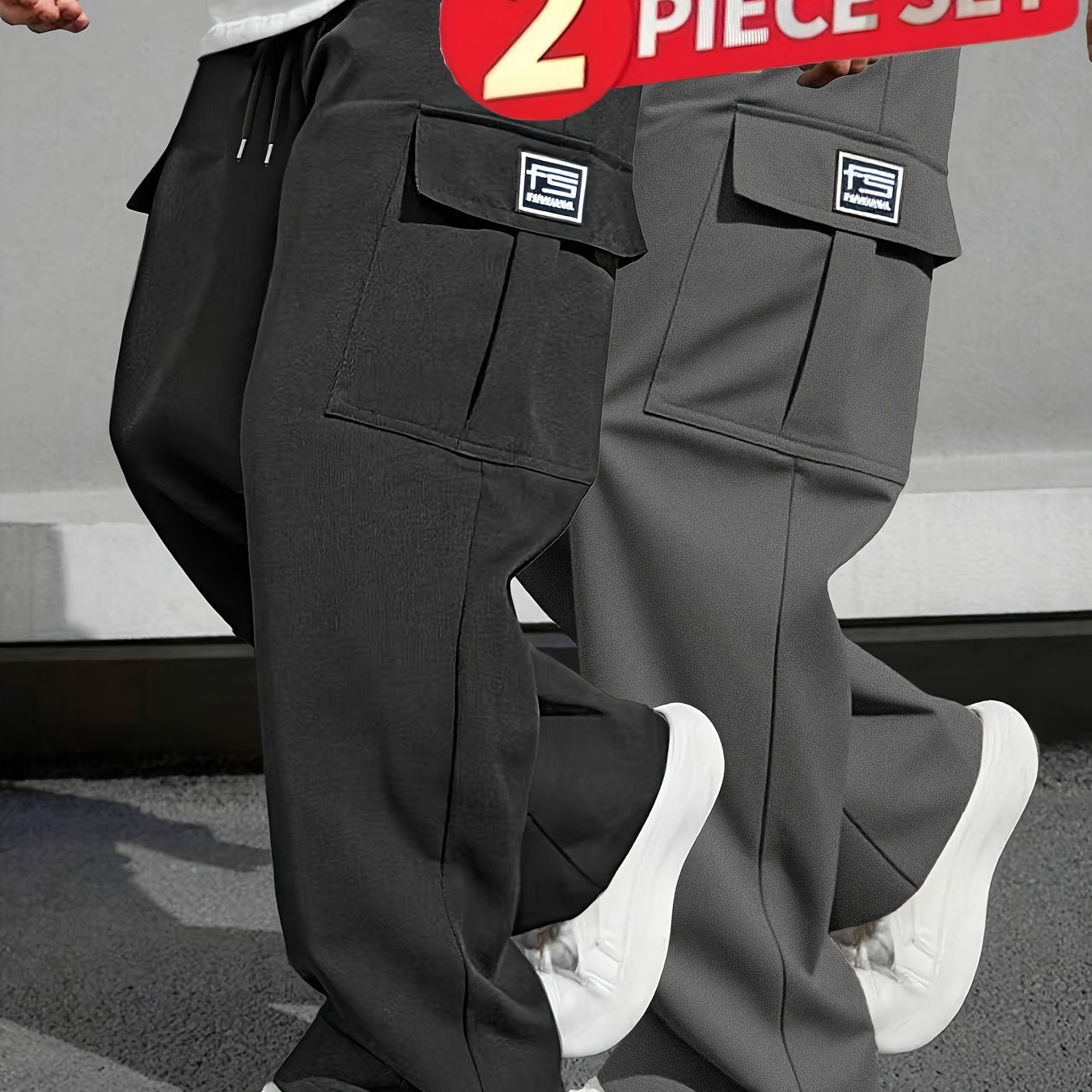 Pantalons de travail robustes pour homme (2 pièces) – cargo multi-poches, coupe ample, taille sans ceinture, poches zippées, jambe droite, idéals construction, sport et tenue décontractée, printemps