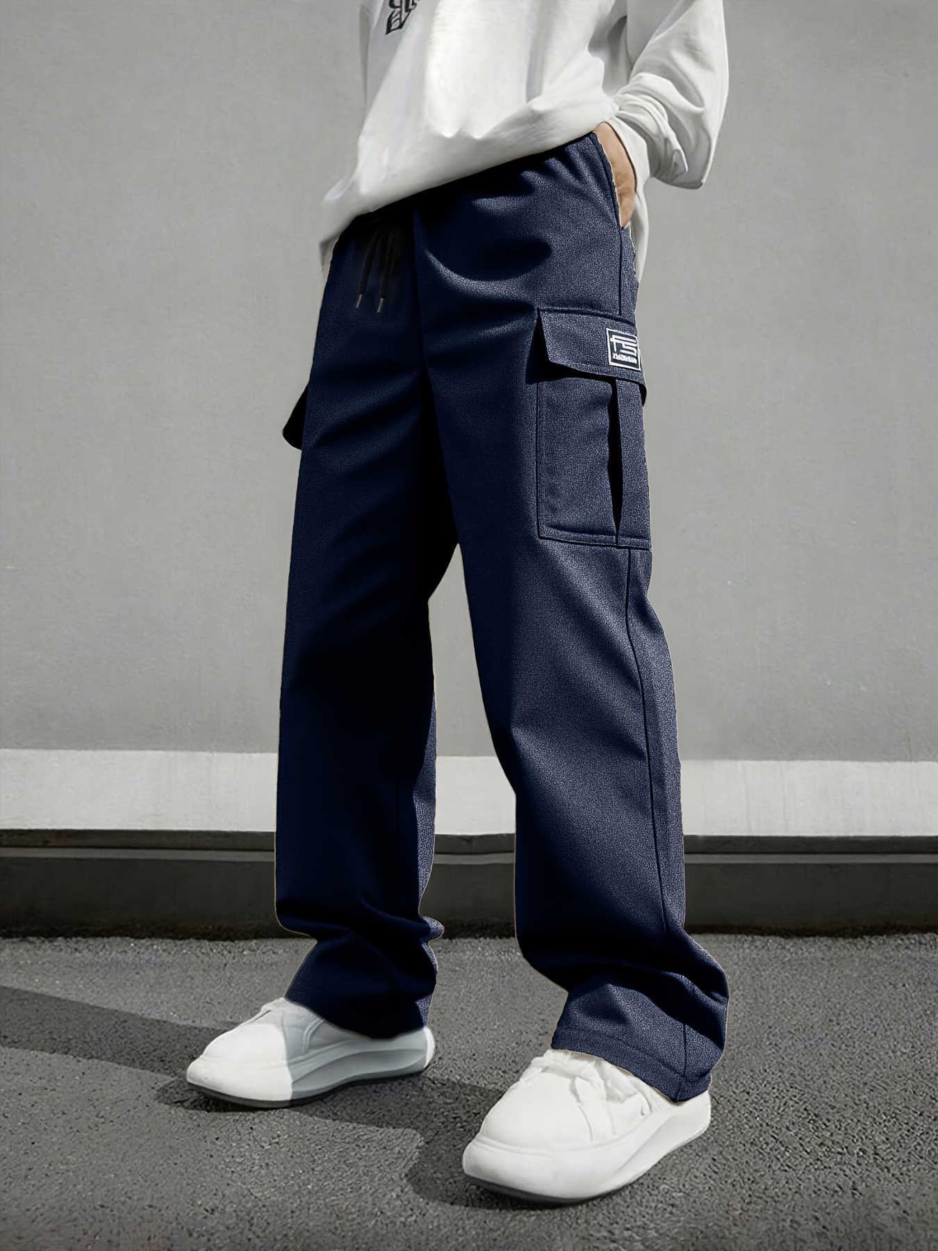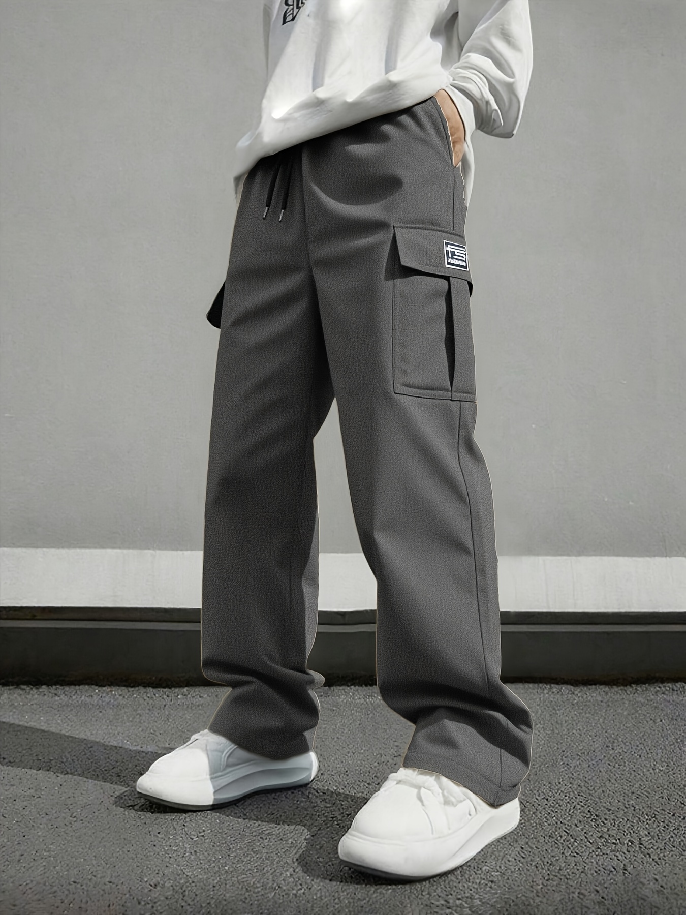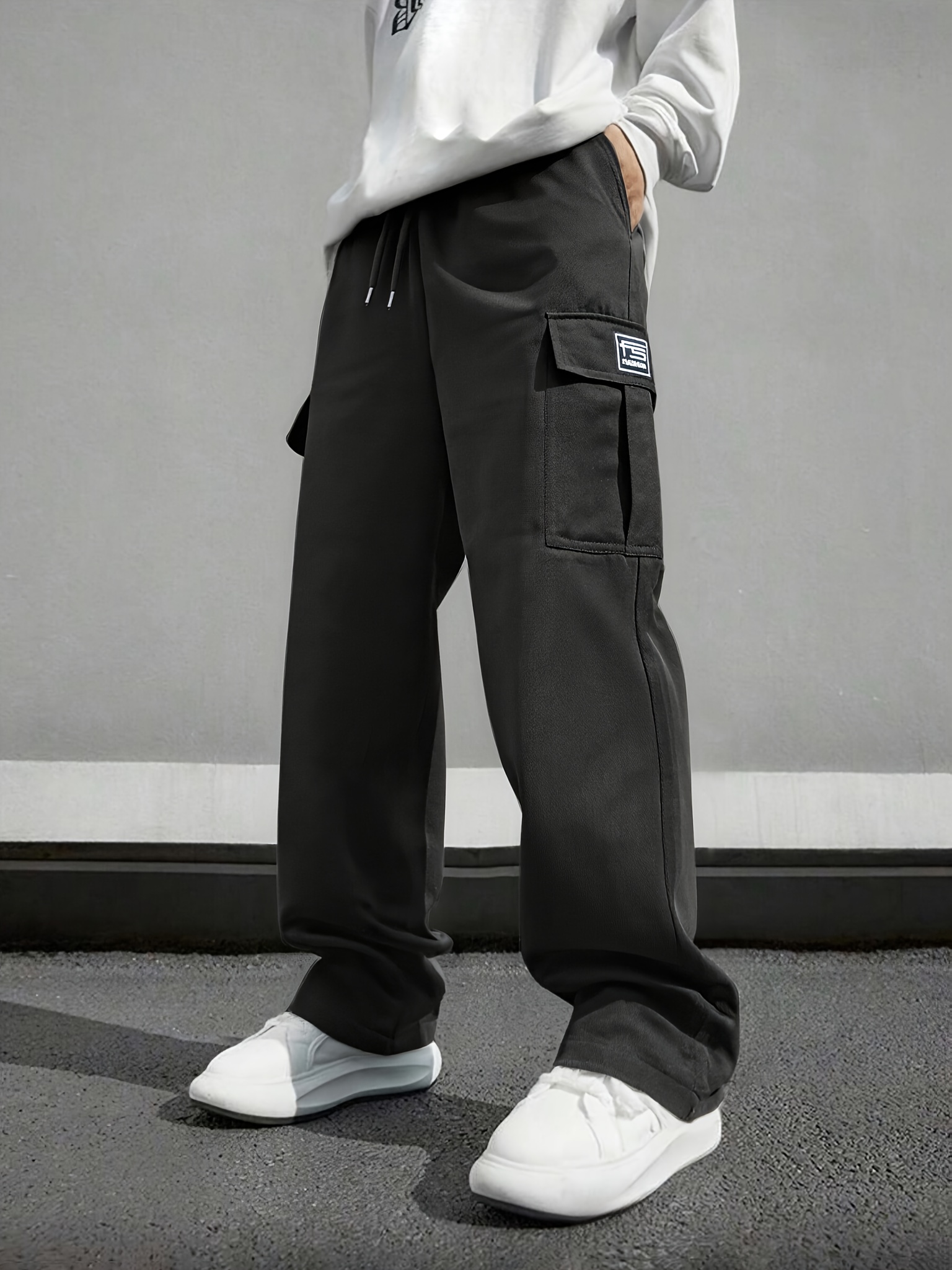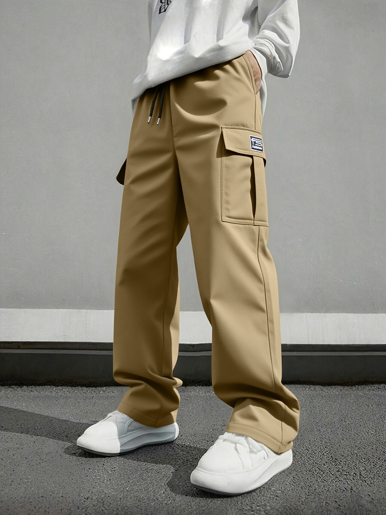 Pantalons de travail robustes pour homme (2 pièces) – cargo multi-poches, coupe ample, taille sans ceinture, poches zippées, jambe droite, idéals construction, sport et tenue décontractée, printemps