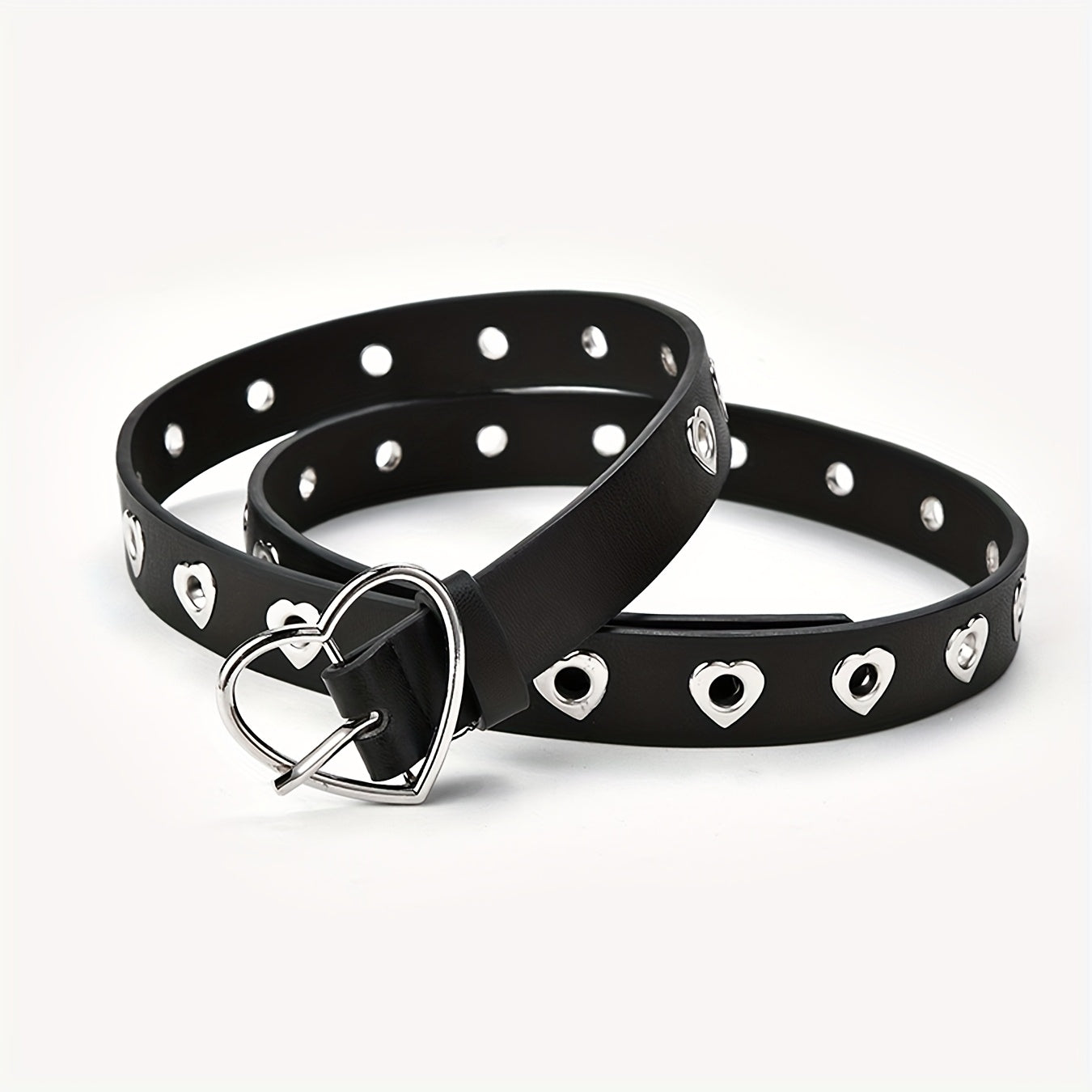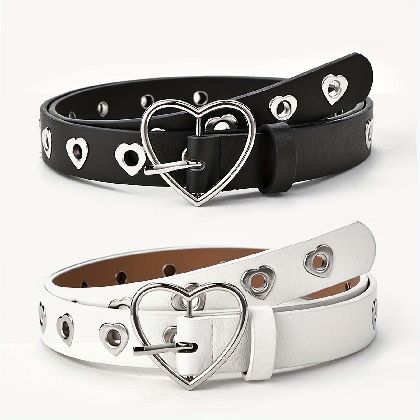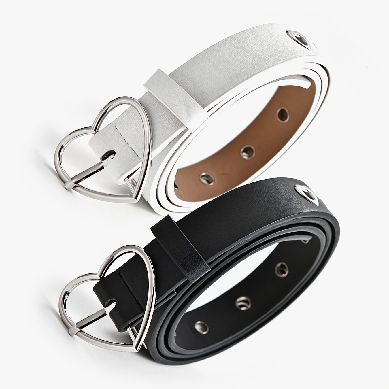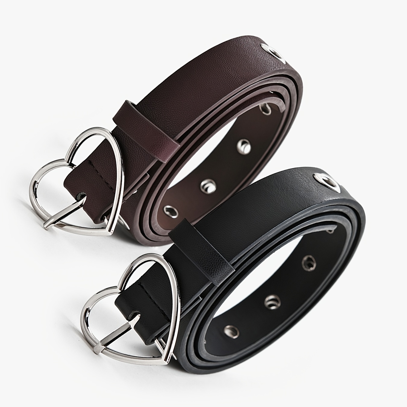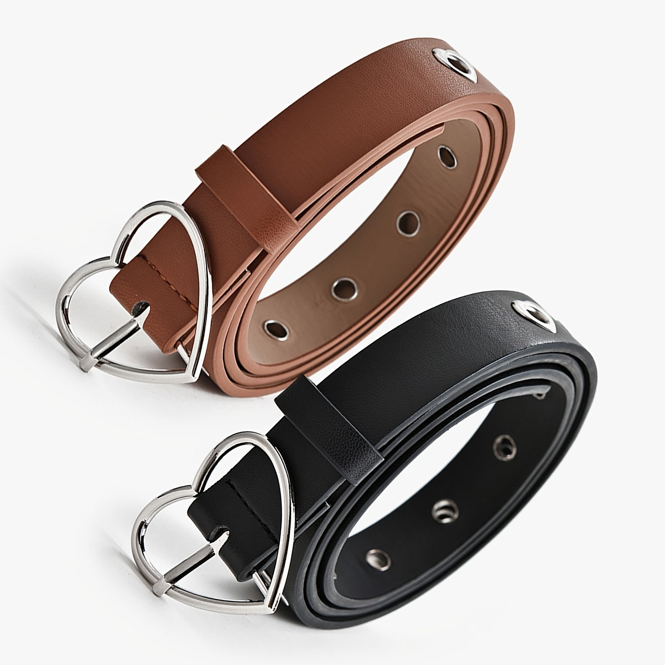 Ensemble de 2 ceintures décoratives créatives en PU pour femme avec boucle en forme de cœur, ceinture polyvalente et tendance avec boucle en forme de cœur couleur pêche et trou complet