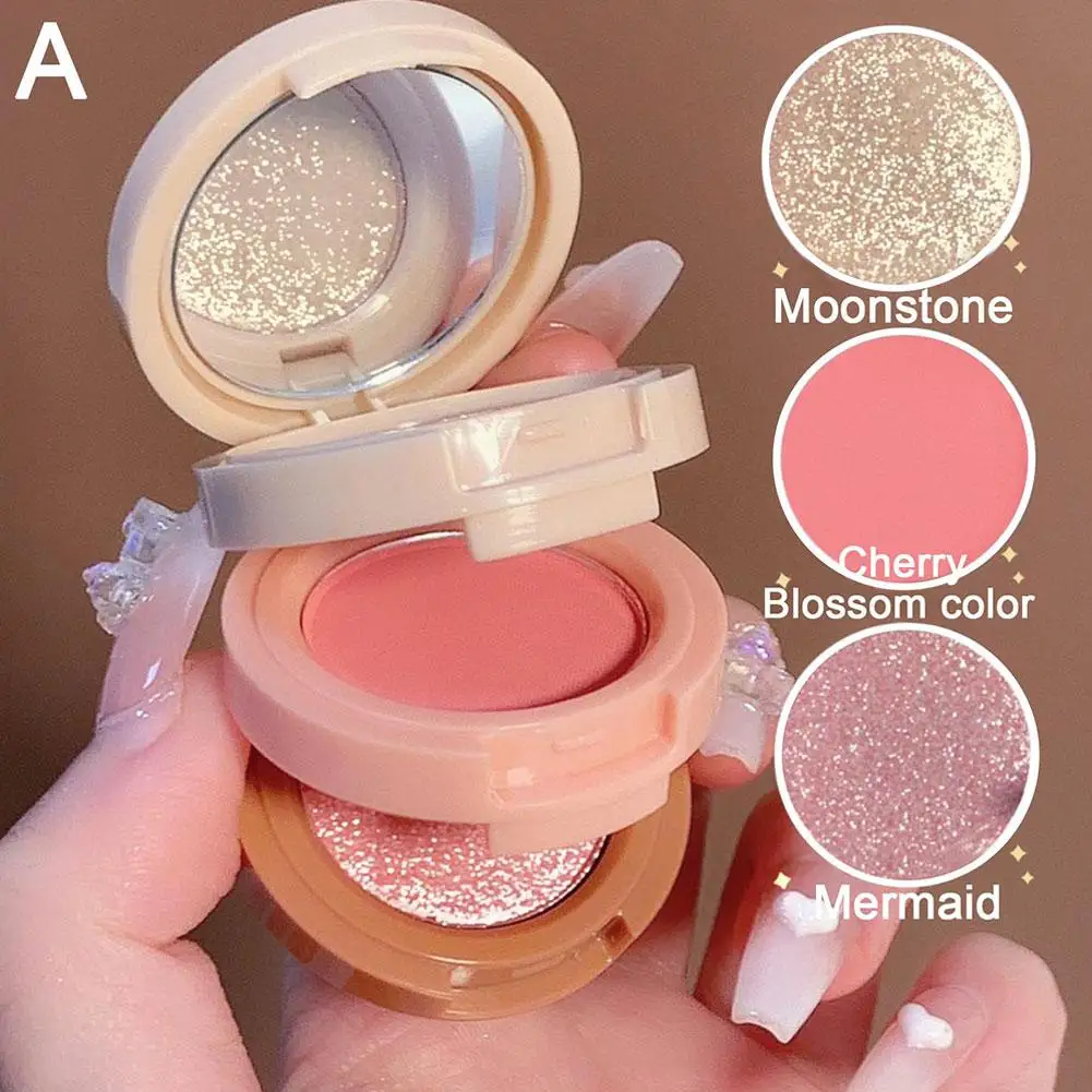 Palette de Blush 3 Couleurs Pressées — Inclut Highlighter, Longue Tenue, Waterproof, Fini Mat et Scintillant, Maquillage Visage