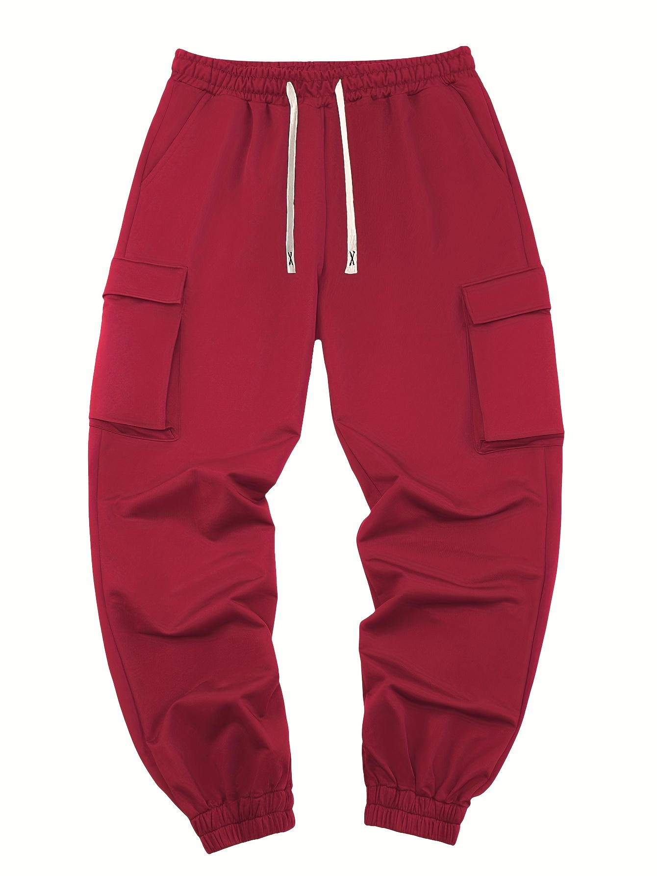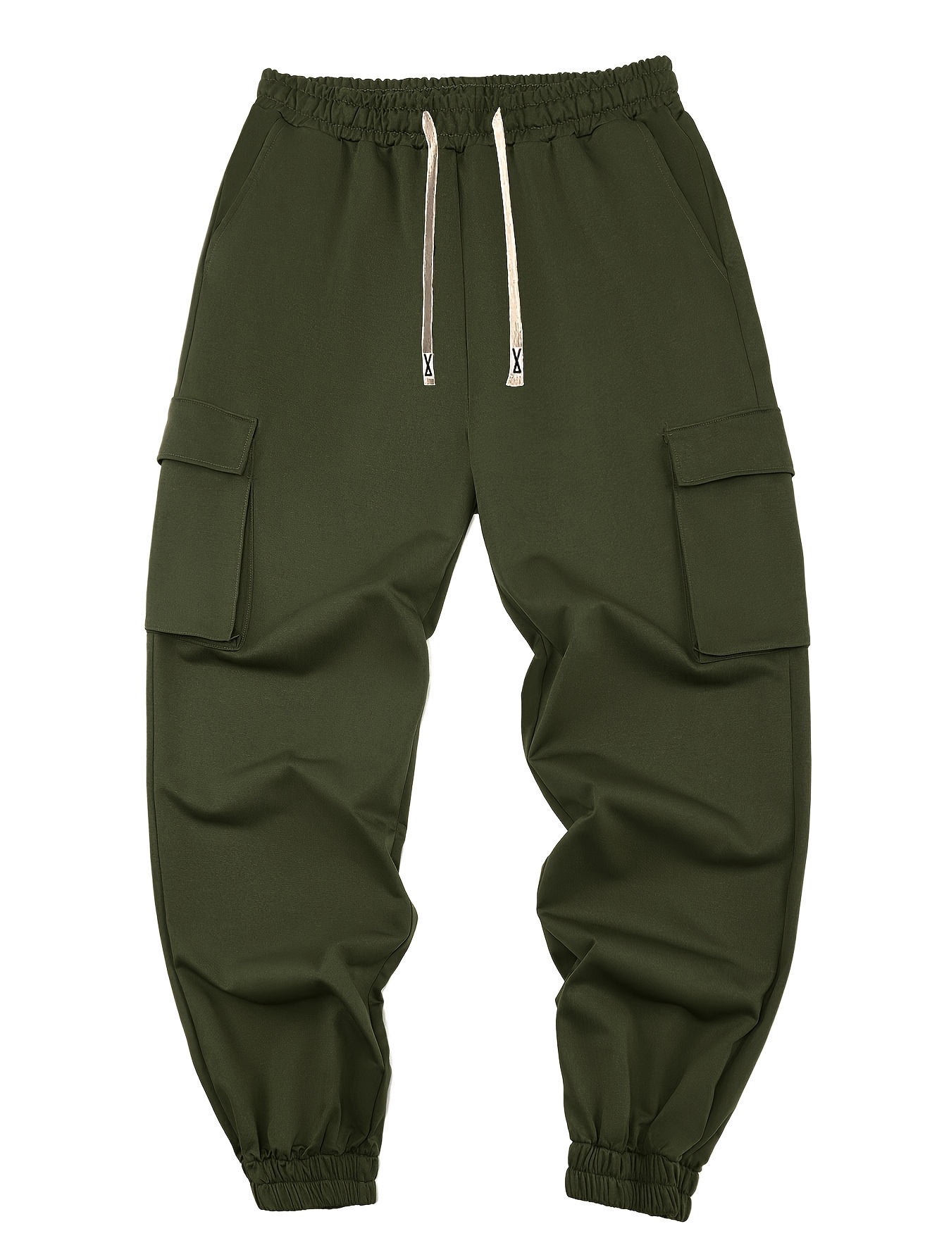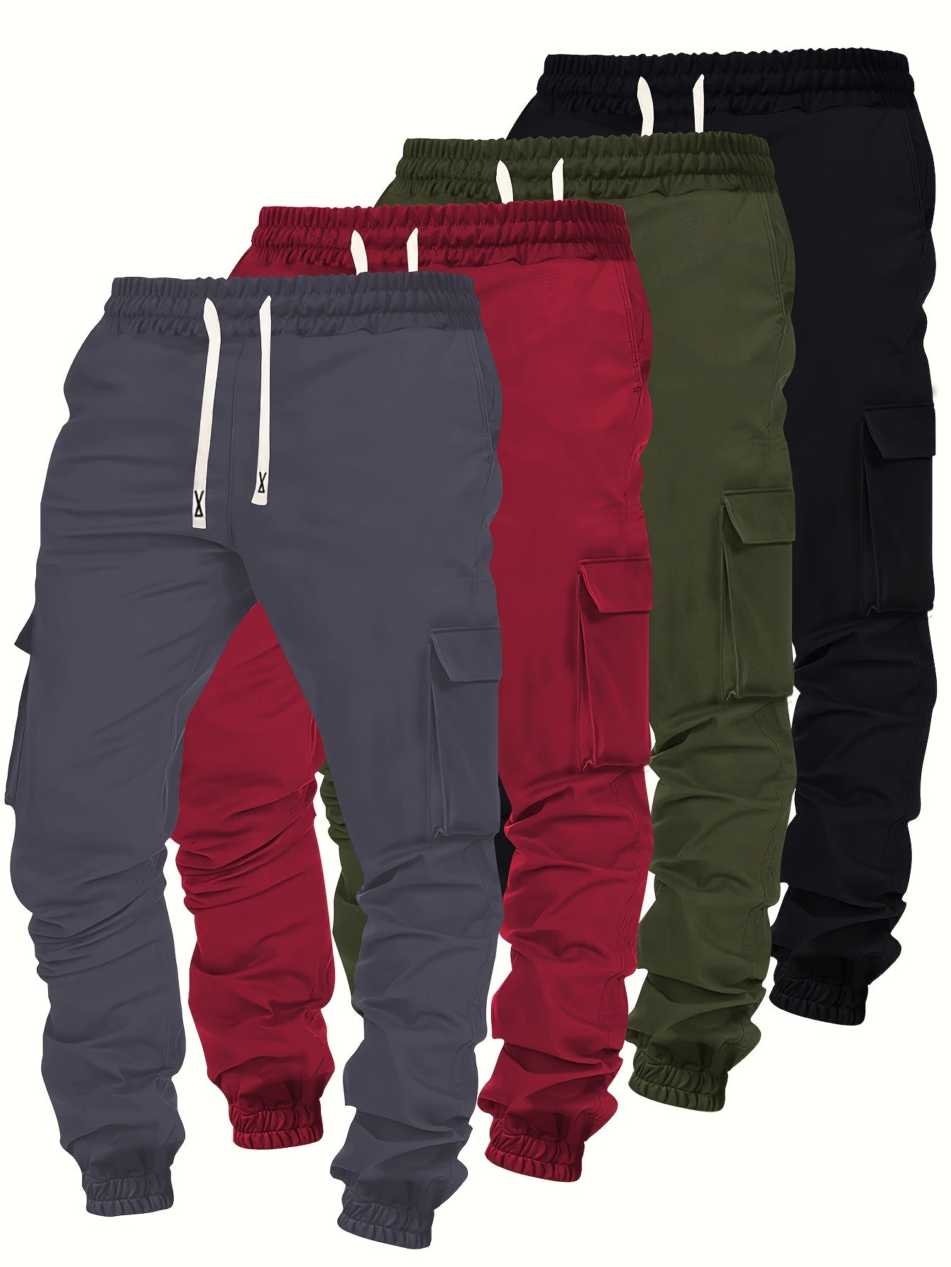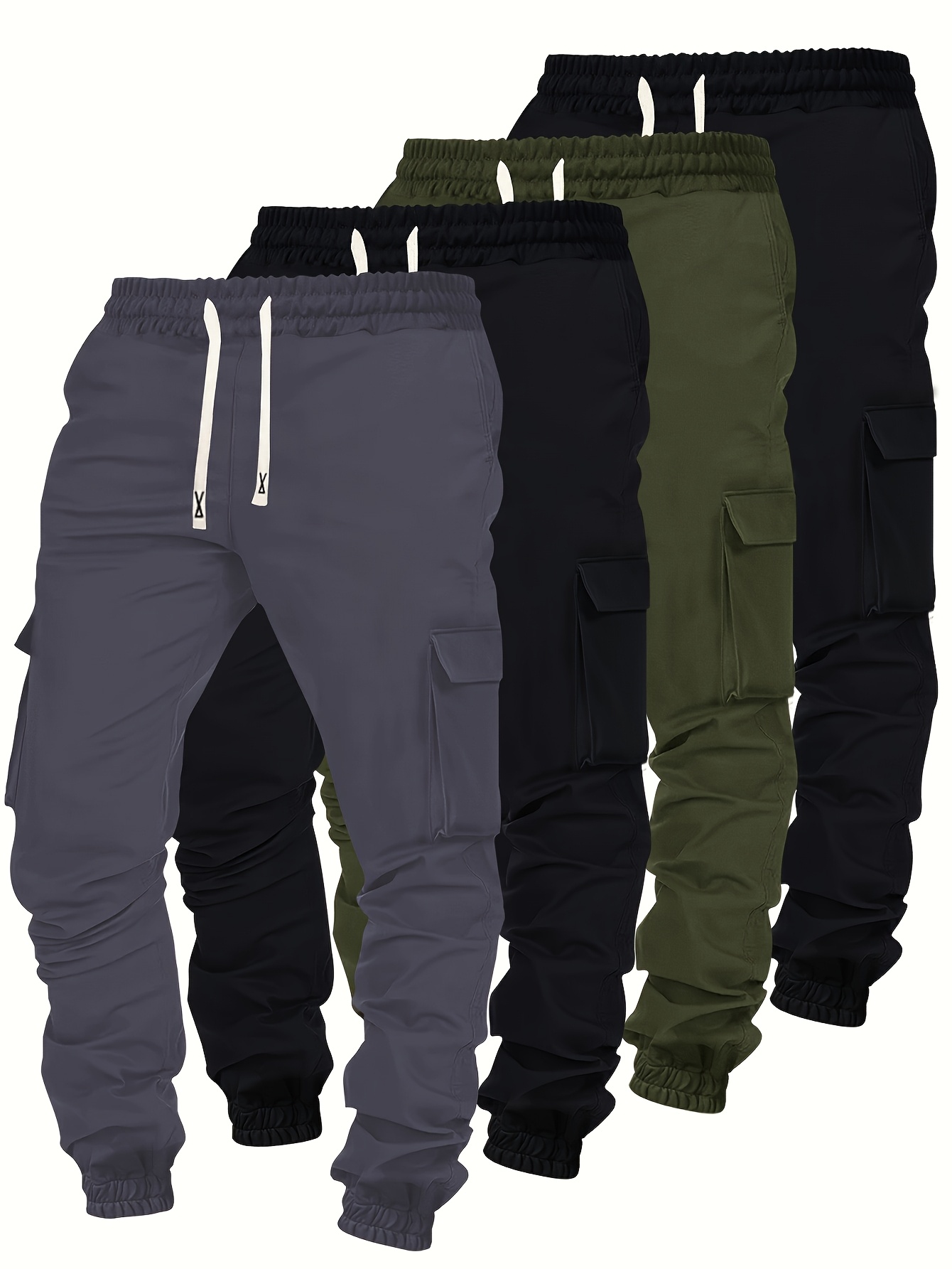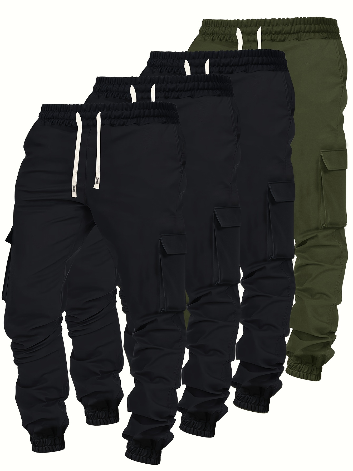 Lot de 4 pantalons cargo homme robustes – Pantalons toutes saisons avec multiples poches, taille à cordon élastique et passants de ceinture, idéaux randonnée, jogging, casual – Lavables en machine (noir/olive/beige/bleu marine) – Coupe régulière