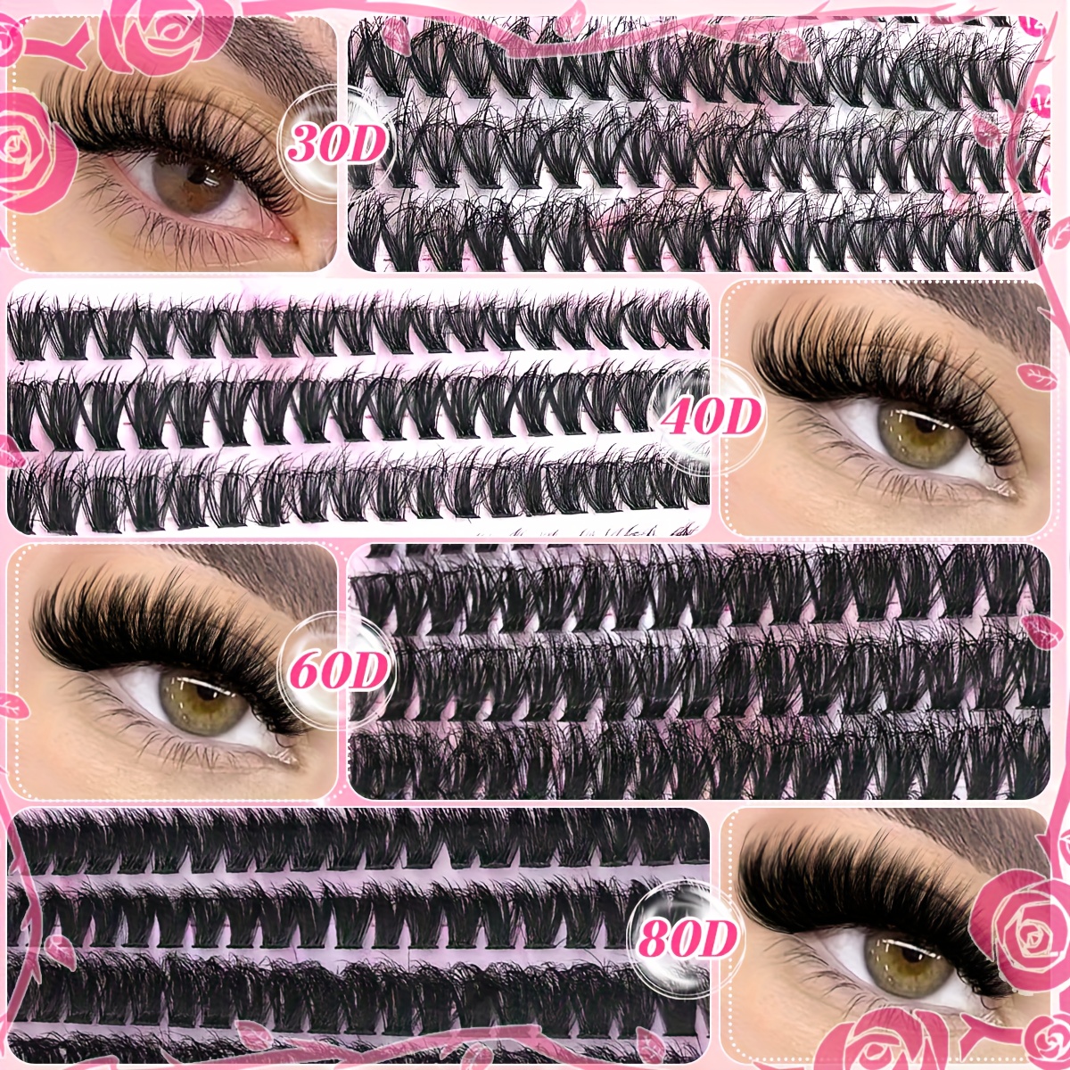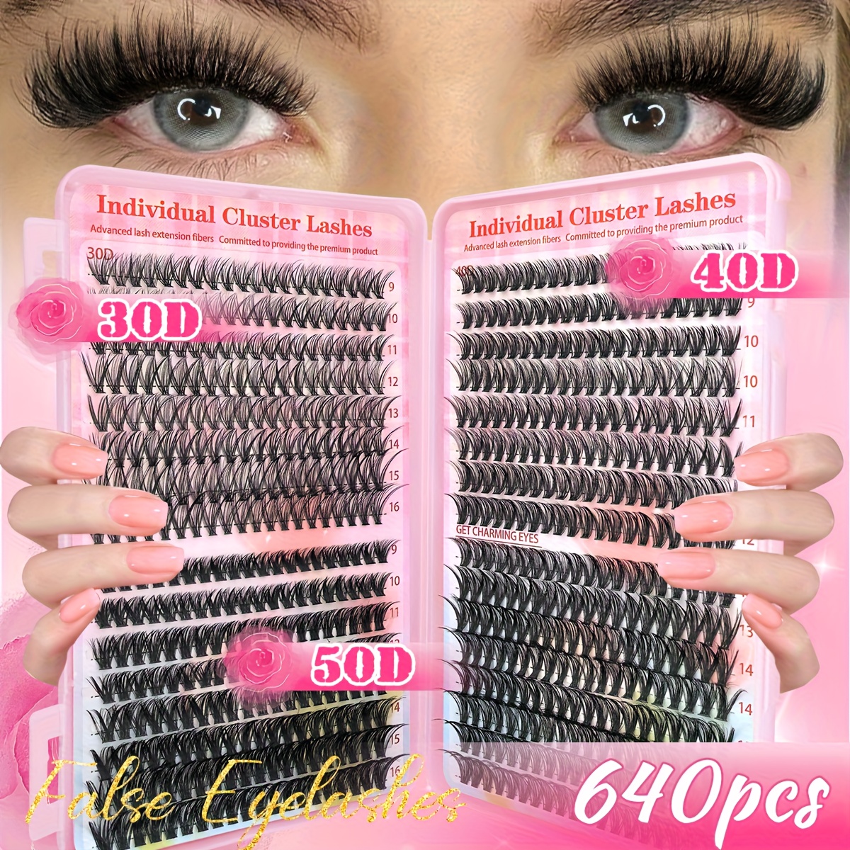 640 pcs de Cils Postiches DIY – D Curl, 9-16 mm Mélangés, Épaisseurs 30D/40D/50D/60D/80D, Parfaits pour Débutants à la Maison, Effet Épais et Fluffy, Idéal Cosplay/Halloween, Volume Intense, Longueurs Mélangées