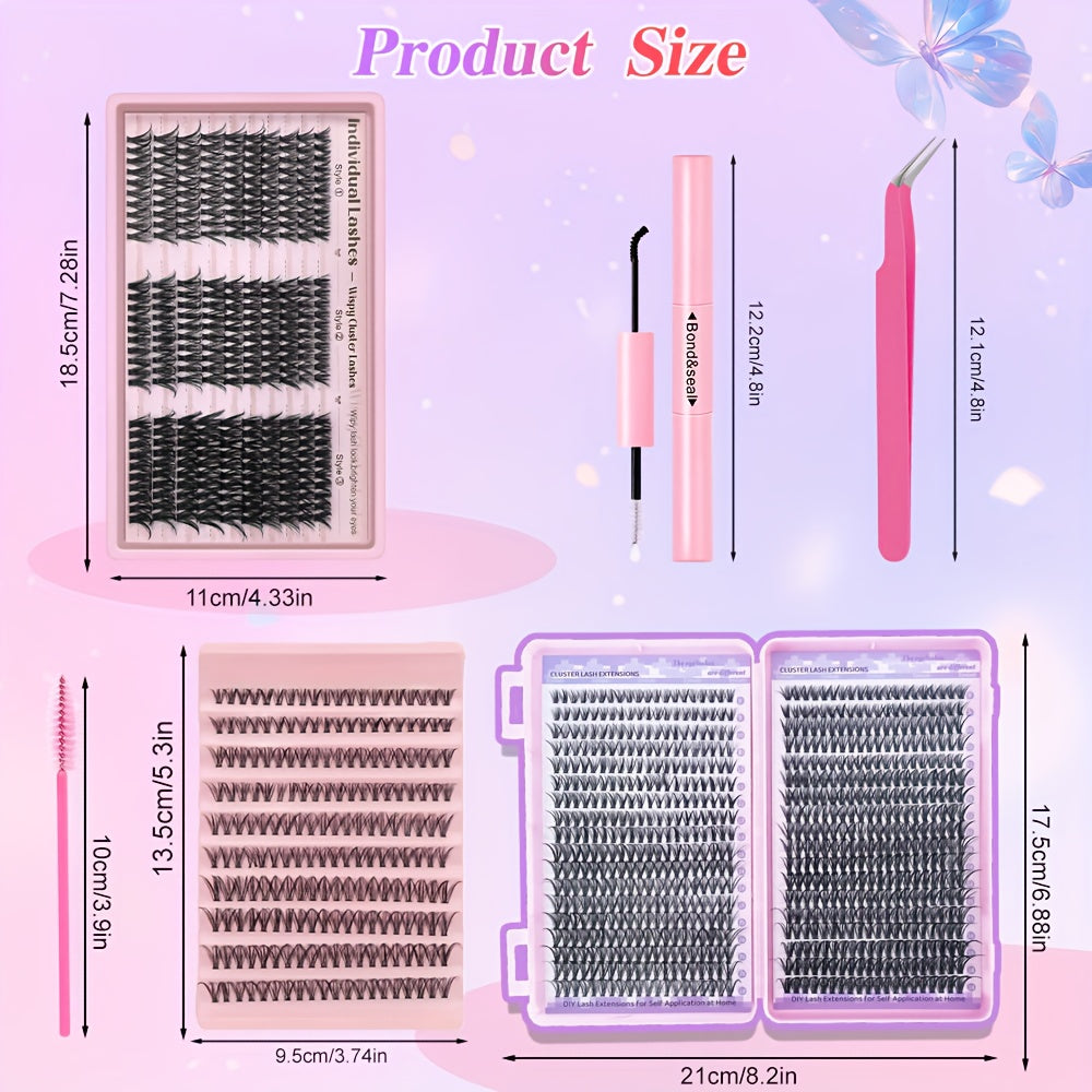 Set DIY d’Extensions de Cils – 720/300/200 pcs, Cils Individuels 9-18 mm Mélangés, Épaisseurs 30D/40D/50D/80D, Inclus Colle et Pince, Parfait pour Débutants, Idéal Cadeau Raffiné pour Nouvel An, Saint-Valentin et Autres Occasions