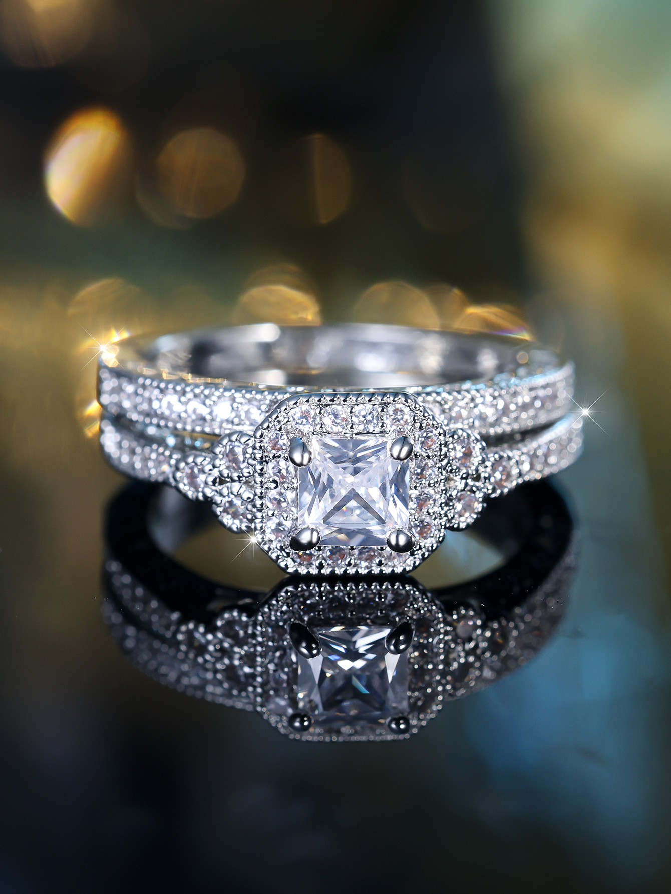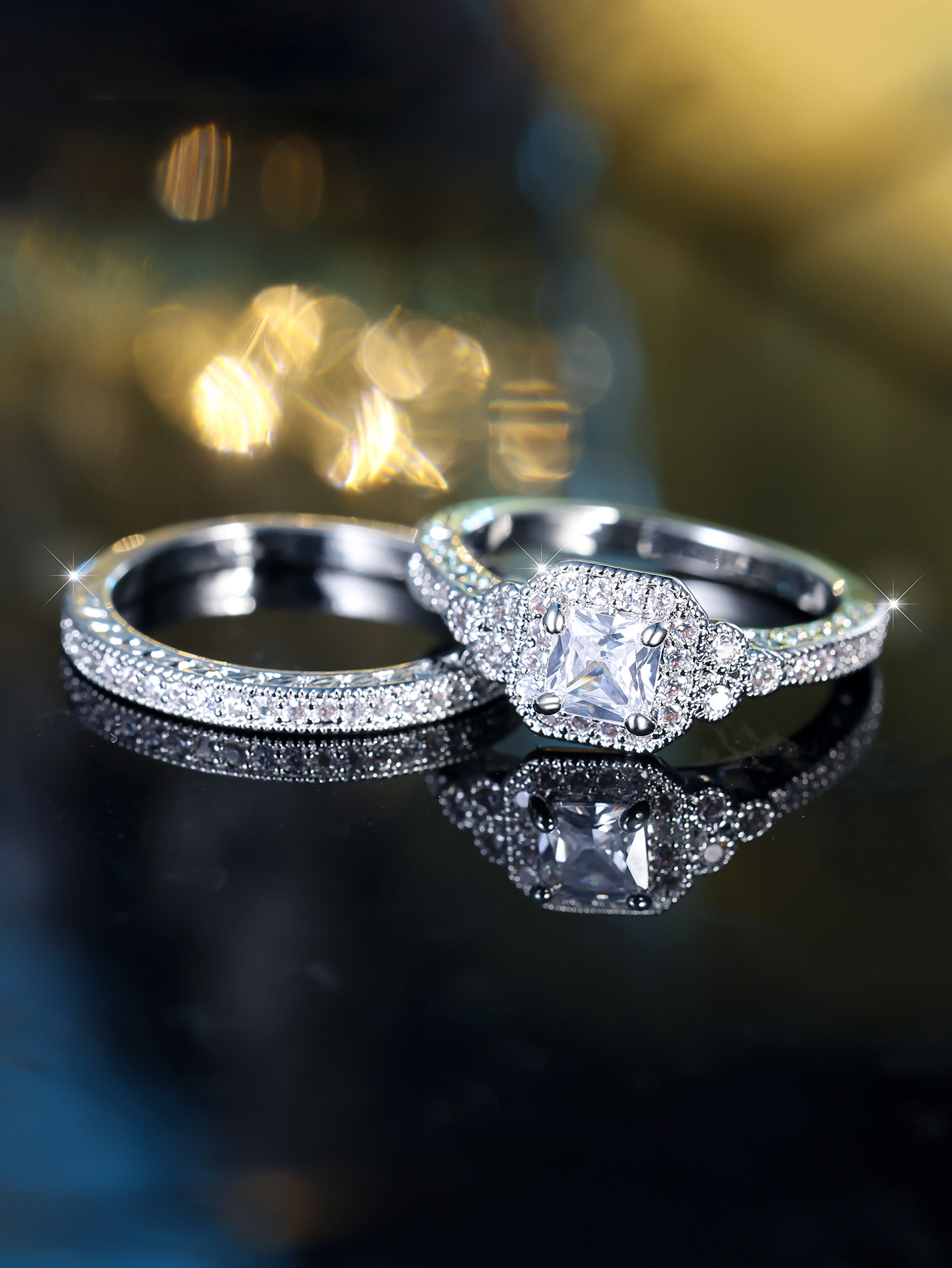A Sparkling 2pcs Set of Micro-Paved Synthetic Zirconia Wedding And Love Rings, Perfect As Gifts for Bridesmaids Or Couples.