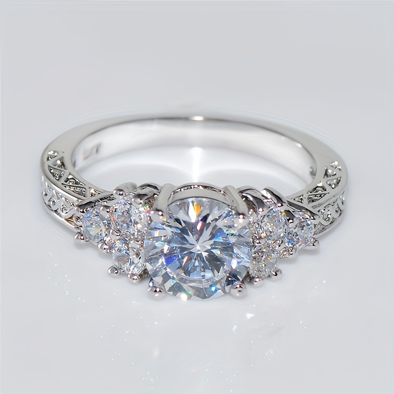 An Elegant And Luxurious Engagement Ring for Women, Featuring a Four-Prong Setting with a Round Synthetic Zirconia, Perfect for Weddings, Parties, And As a Beautiful Accessory for Couples