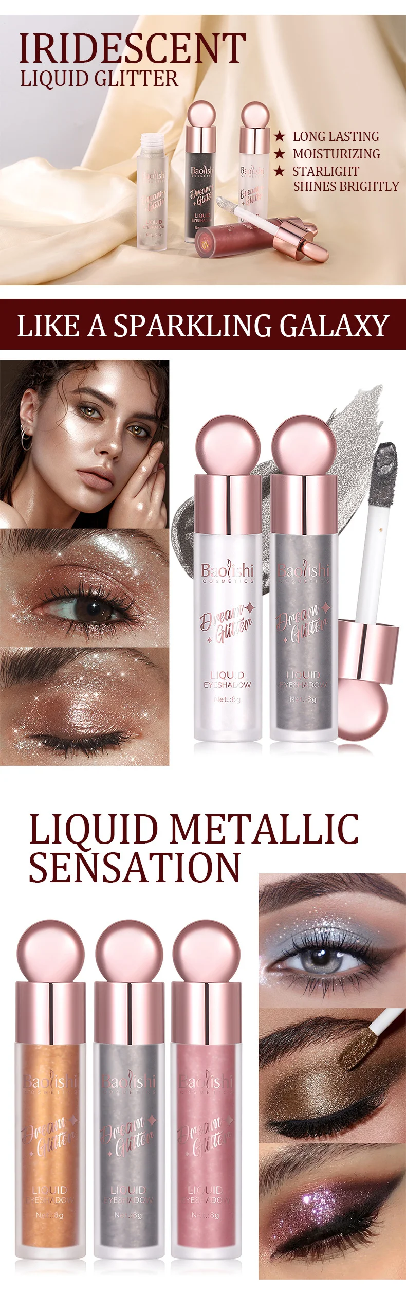 Fard à paupières liquide, cristallin et scintillant, perlé fin, monochrome, illuminateur yeux