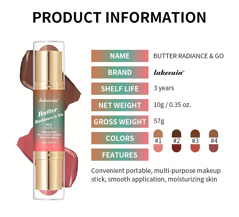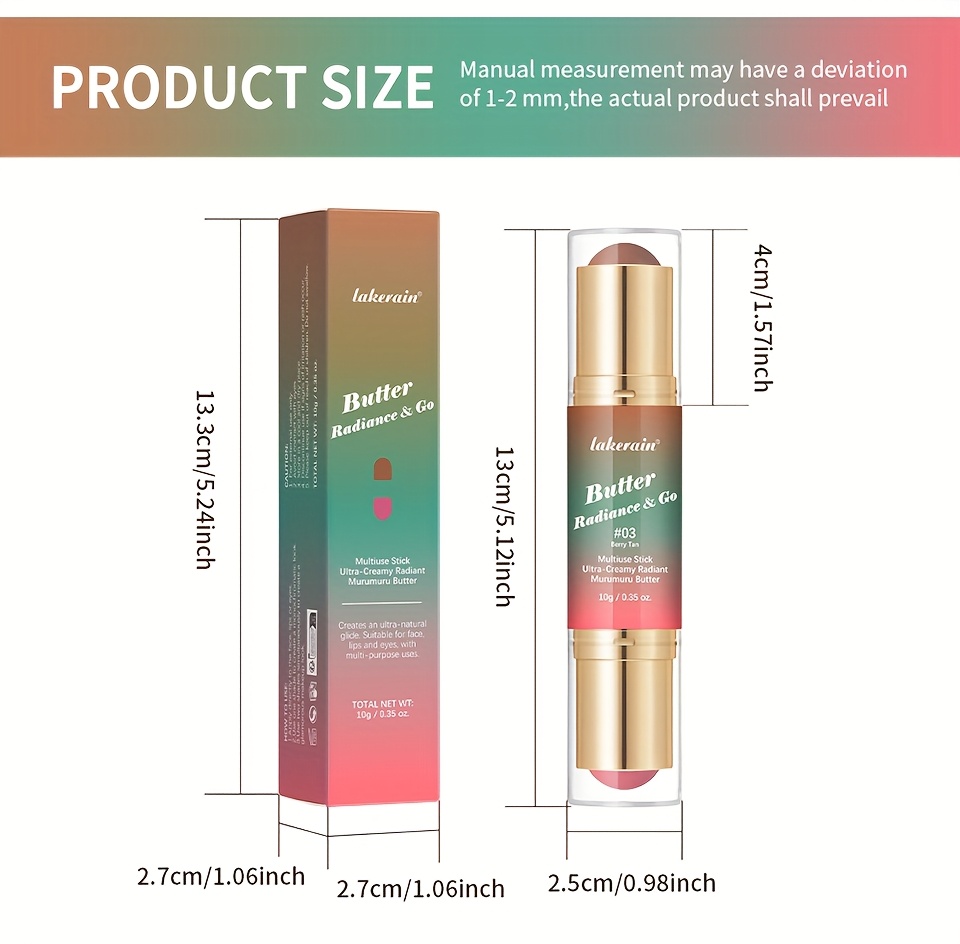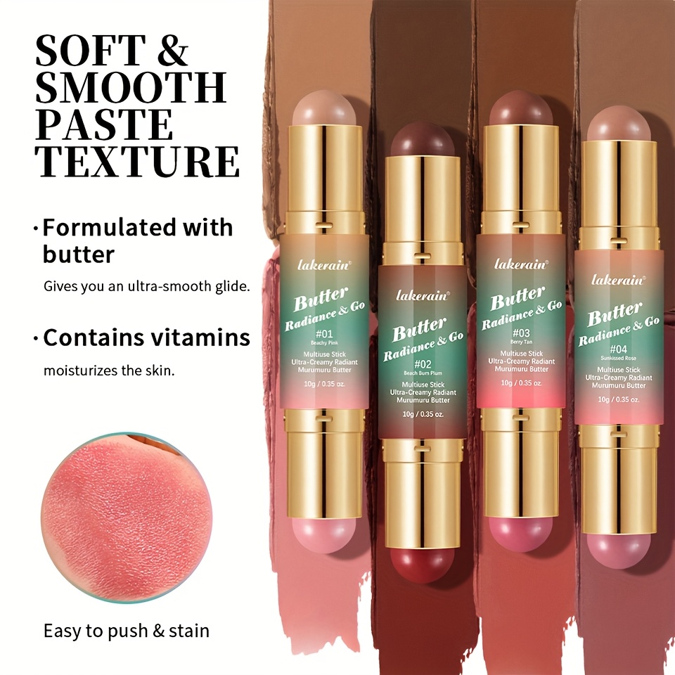 Butter Radiance & Go, Multiuse Stick, Double-ended Blush & Contour, Ultra-Creamy Radiant Finish Formula with Butter, Hydrating Texture, Multi-Use Contour Stick, Multi-purpose Makeup Stick - Blush, Contour, Lipstick, Eyeshadow