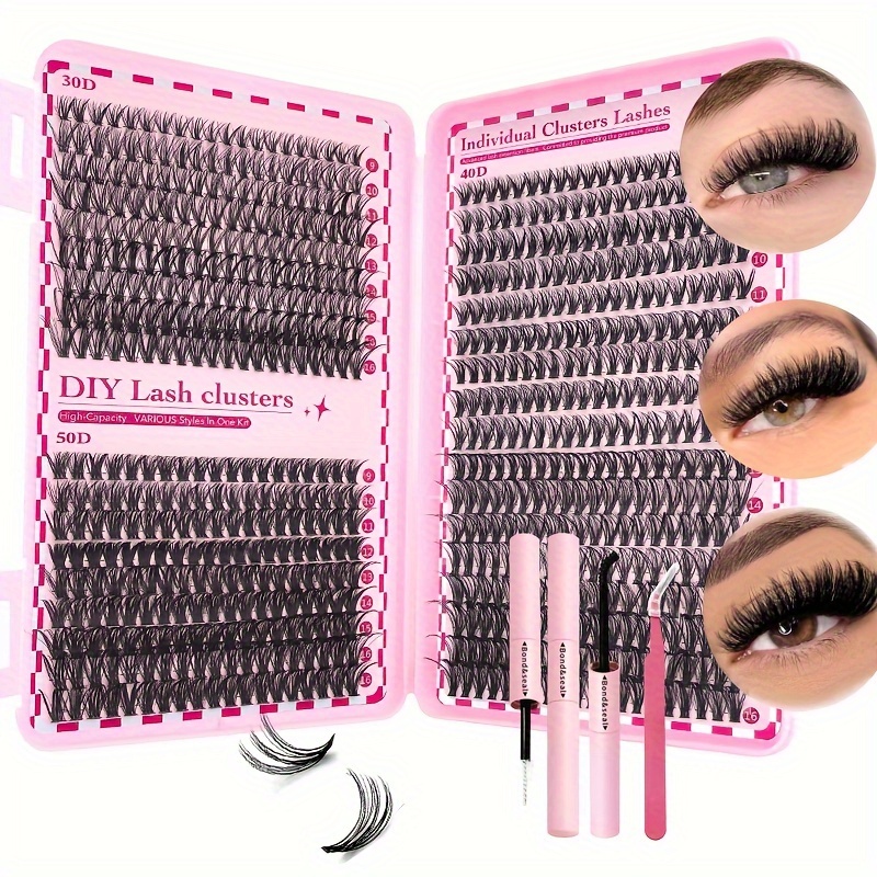 Kit d’Extensions de Cils en Paquets – C Curl, Cils Naturels Épais et Fluffy, Kit Complet avec Brosse à Cils, Colle et Scellant, Pince et Liquide, Longueurs 9-16 mm, Épaisseurs 30D/40D/50D, Parfait pour Usage Quotidien à la Maison