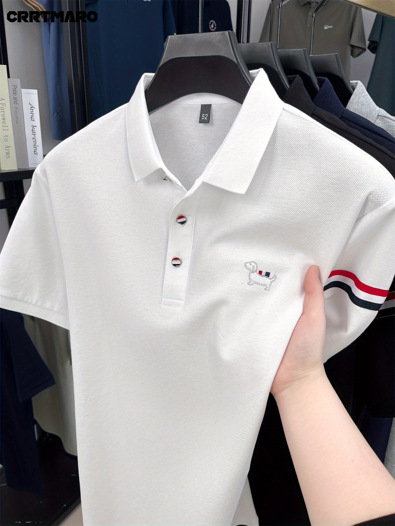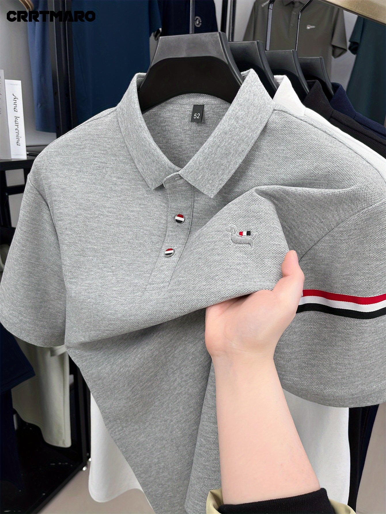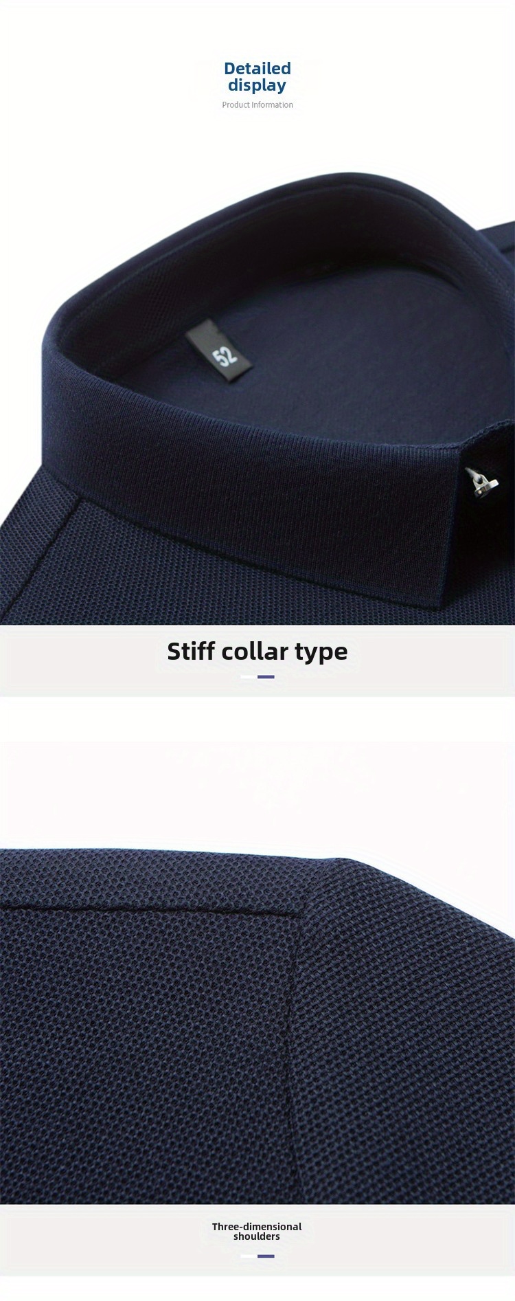 Men's Navy Blue Shirt - Classic Crew Neck Button-Front, Soft Everyday Shirt for Office, Golf, Casual Outings - CRRTMARO Brand Button-Up Shirt, Office Attire, Straight Sleeves, Durable Construction, Short Sleeve Top,