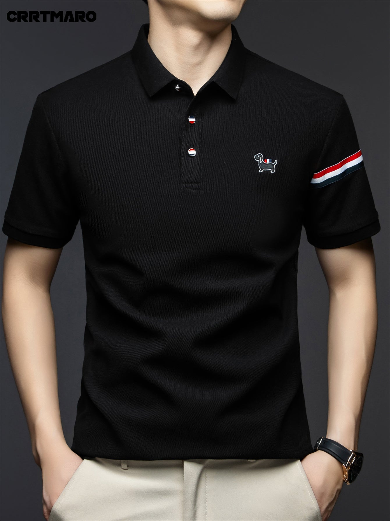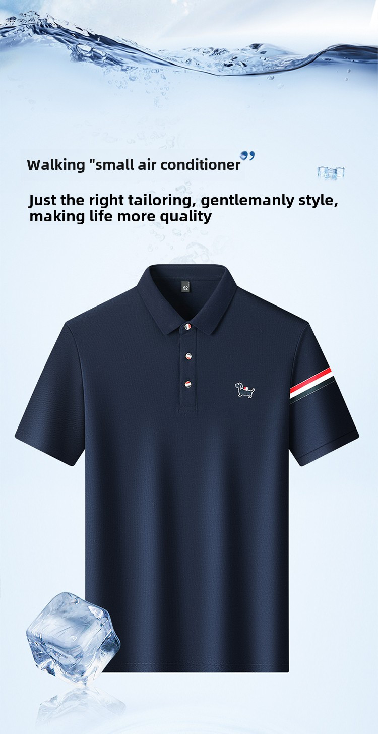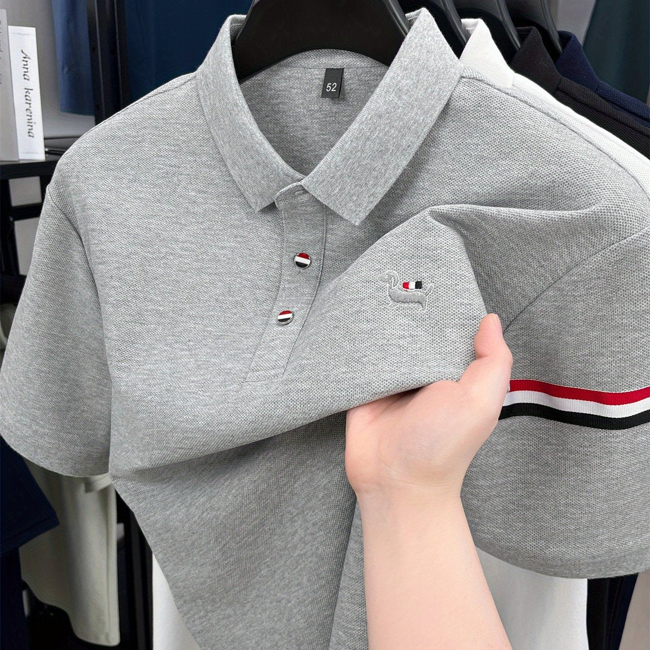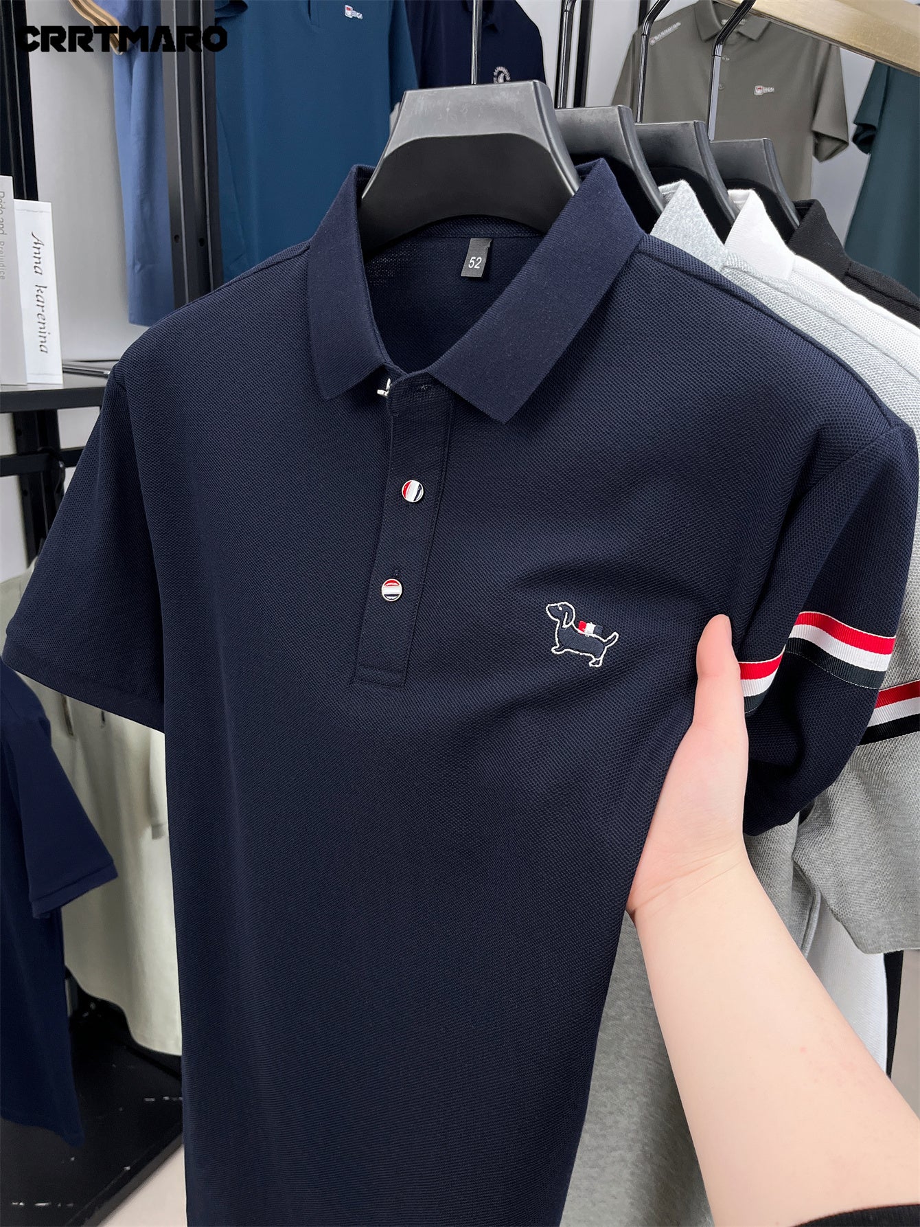 Men's Navy Blue Shirt - Classic Crew Neck Button-Front, Soft Everyday Shirt for Office, Golf, Casual Outings - CRRTMARO Brand Button-Up Shirt, Office Attire, Straight Sleeves, Durable Construction, Short Sleeve Top,