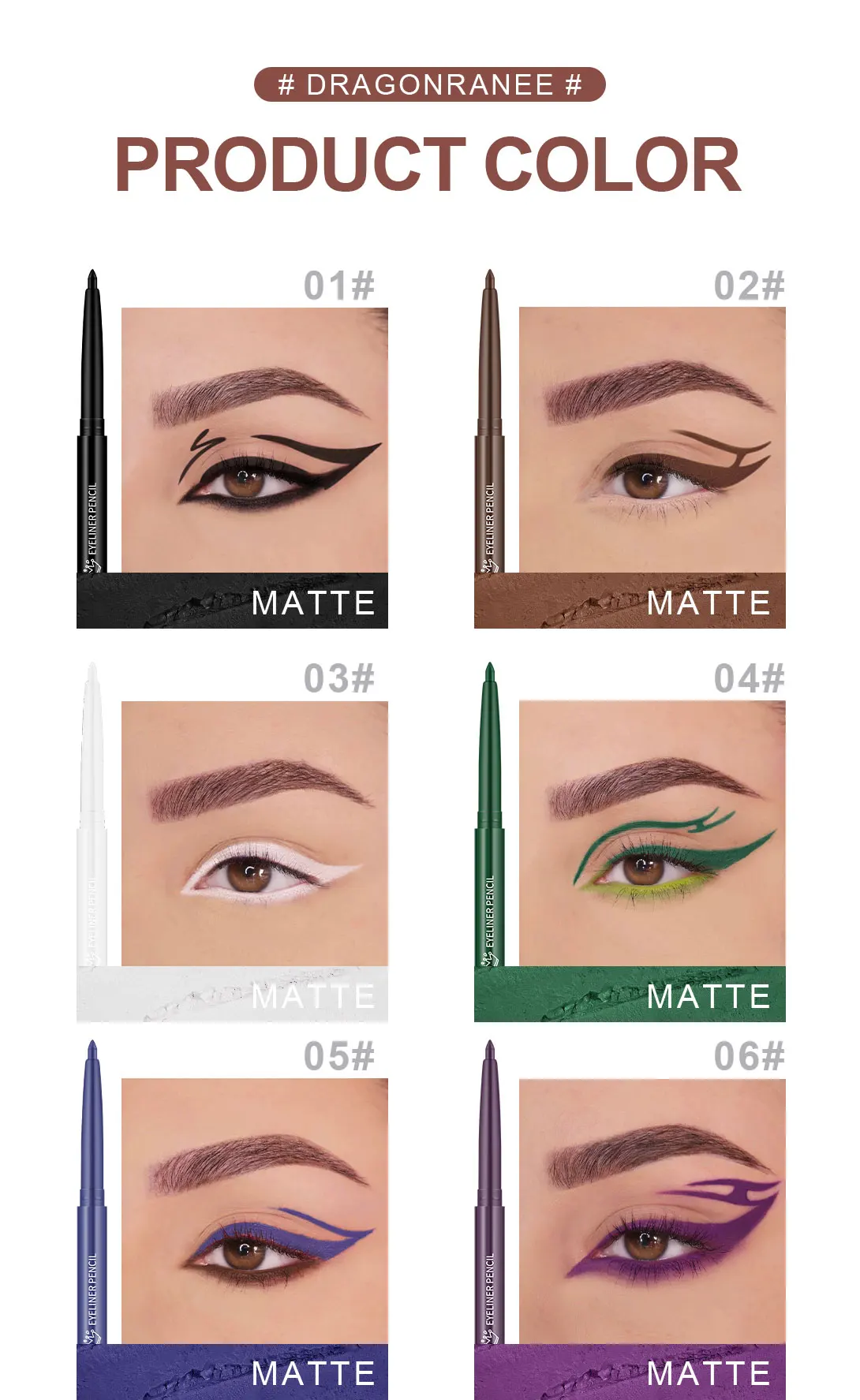 Eyeliner imperméable, résistant à la transpiration, non taché, facile à utiliser pour les débutants, vert, violet, noir, longue durée, non amovible