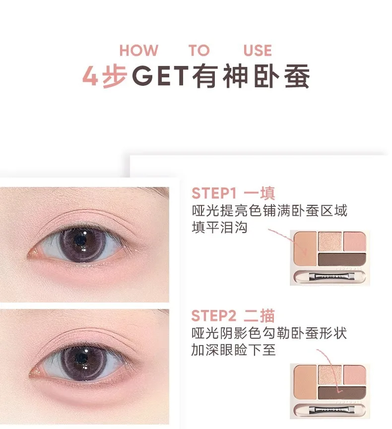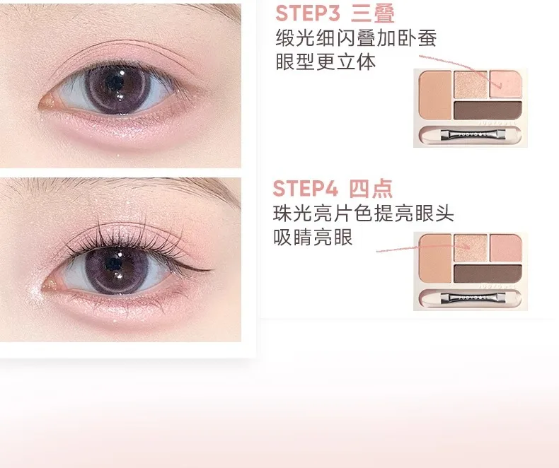 Palette 4 couleurs, fards à paupières, blush, eyeliner, highlighter et contouring, texture soyeuse, illumine le visage