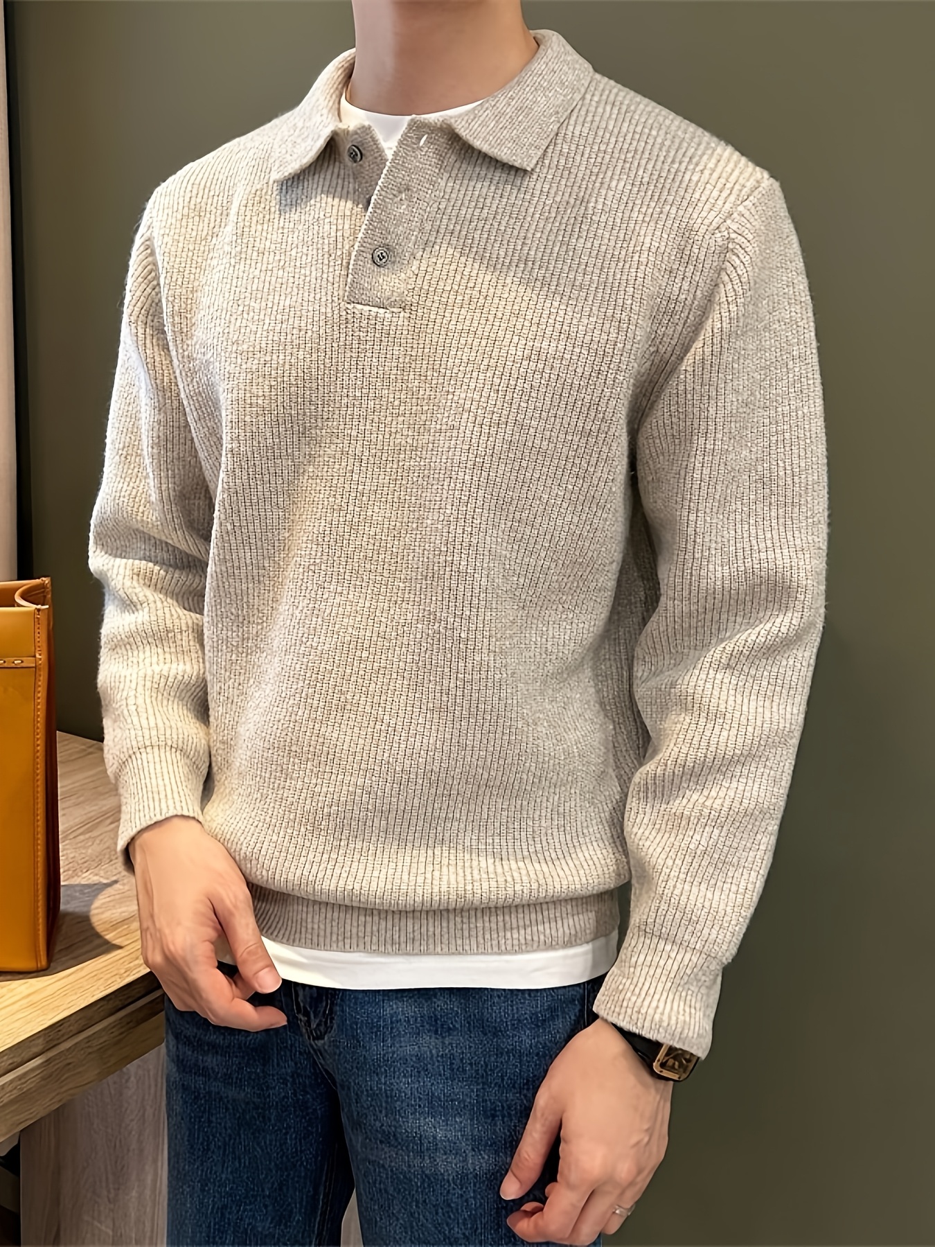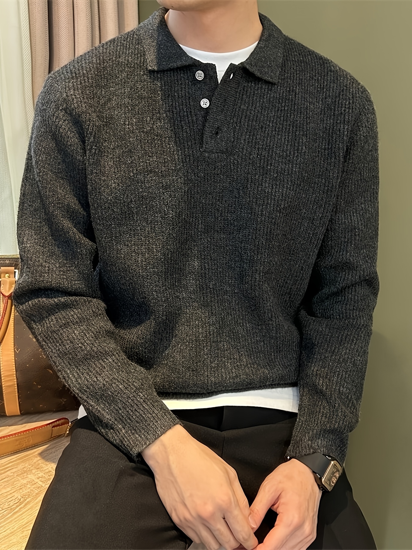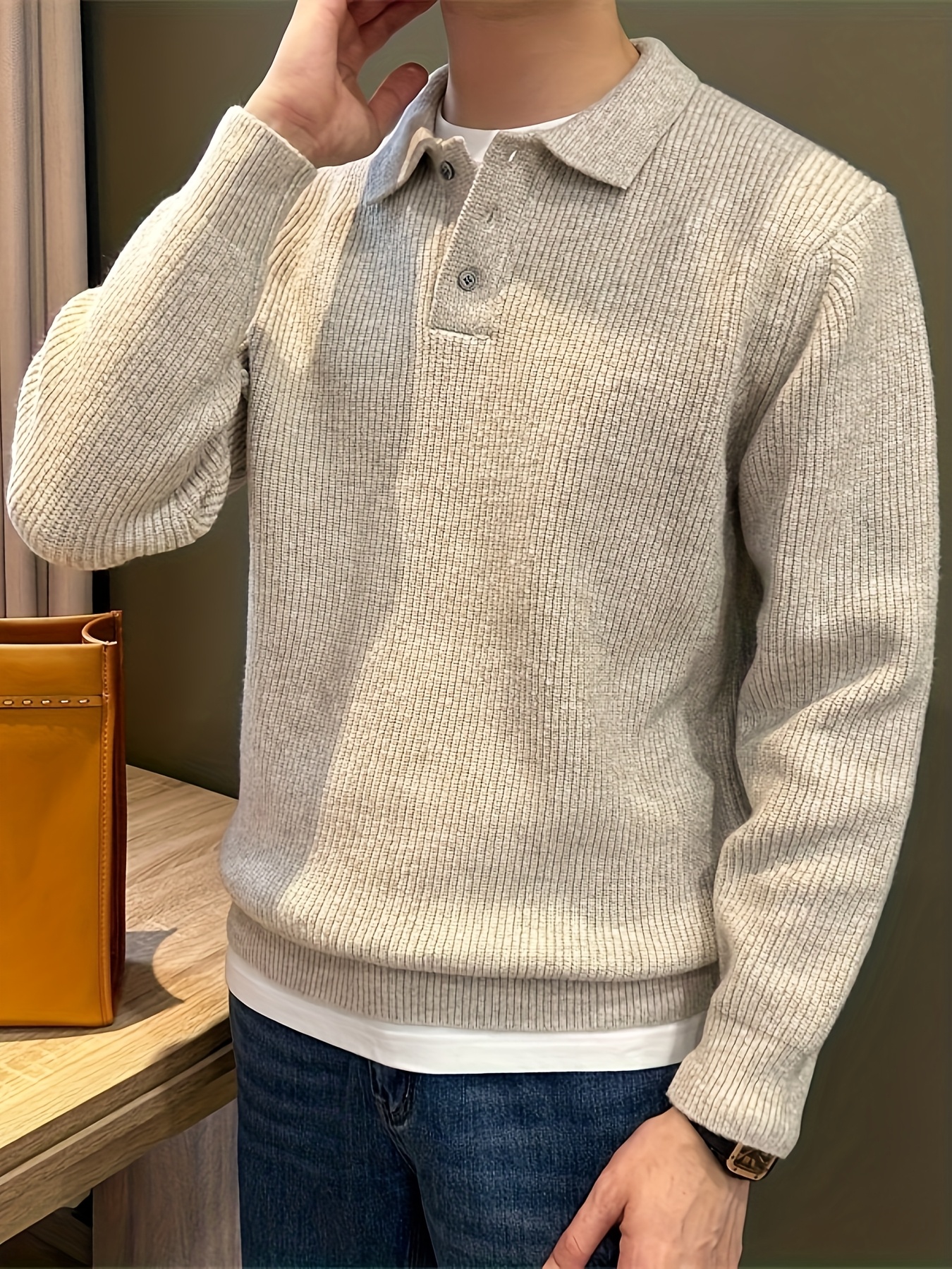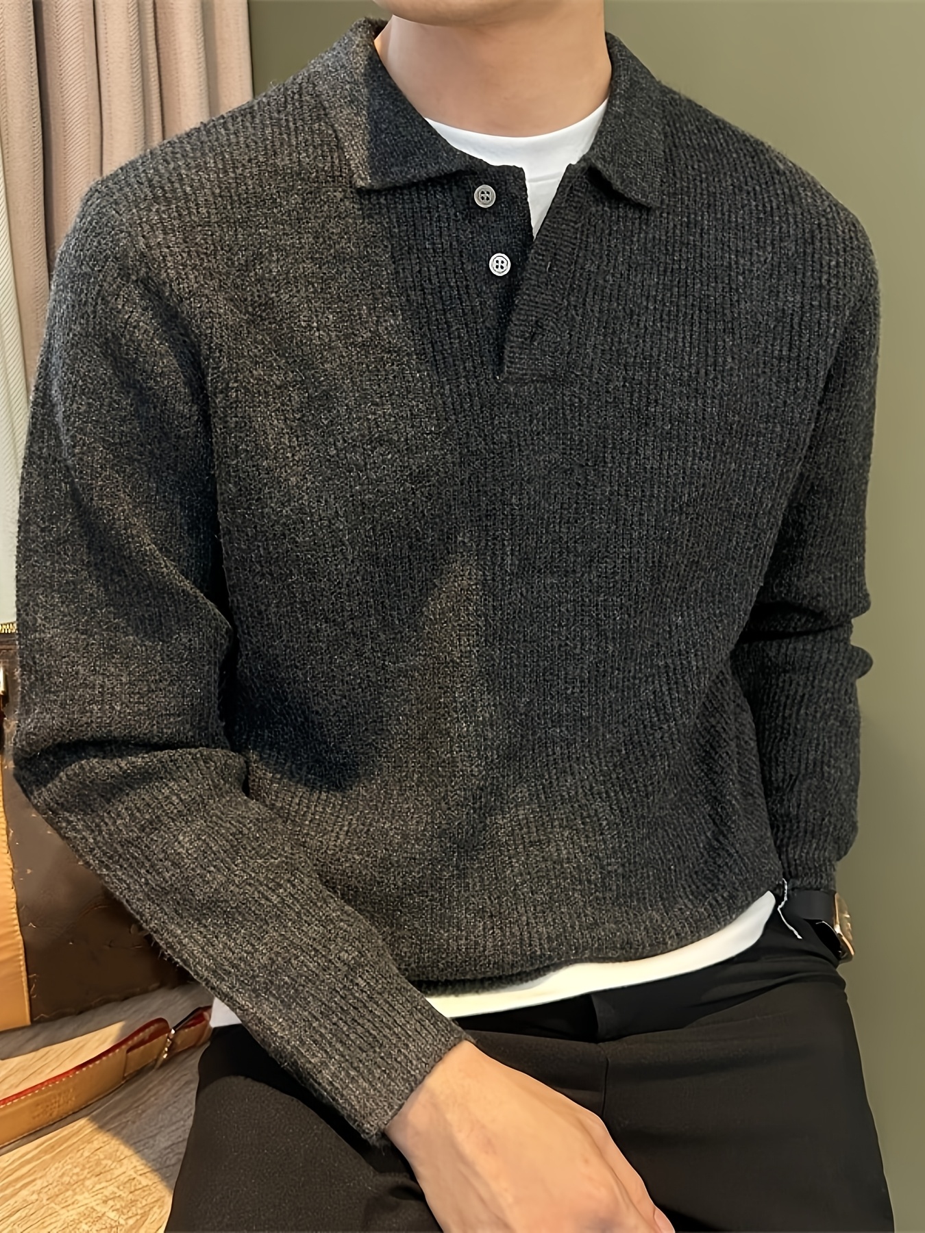 Men'S Casual Light Polo Shirt - Soft Stretch Knit Sweater with Button Front, Long Sleeve, Regular Fit for Fall/Winter, Office & Casual Attire - Everyday Essential, Winter Clothing, Classic Collar, Durable Construction, Stylis