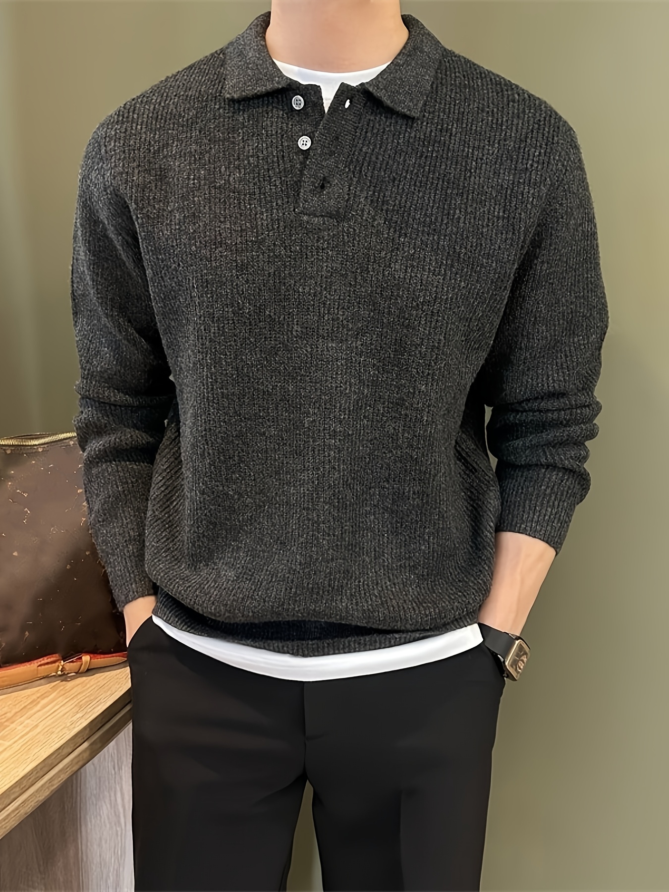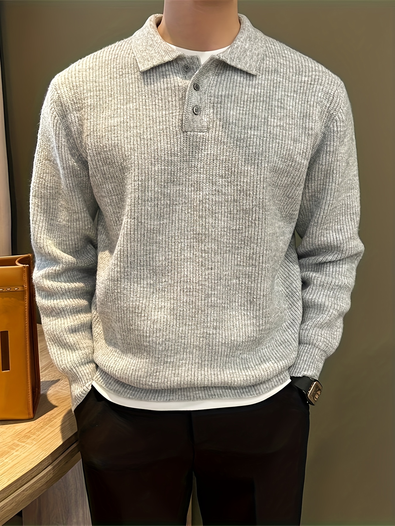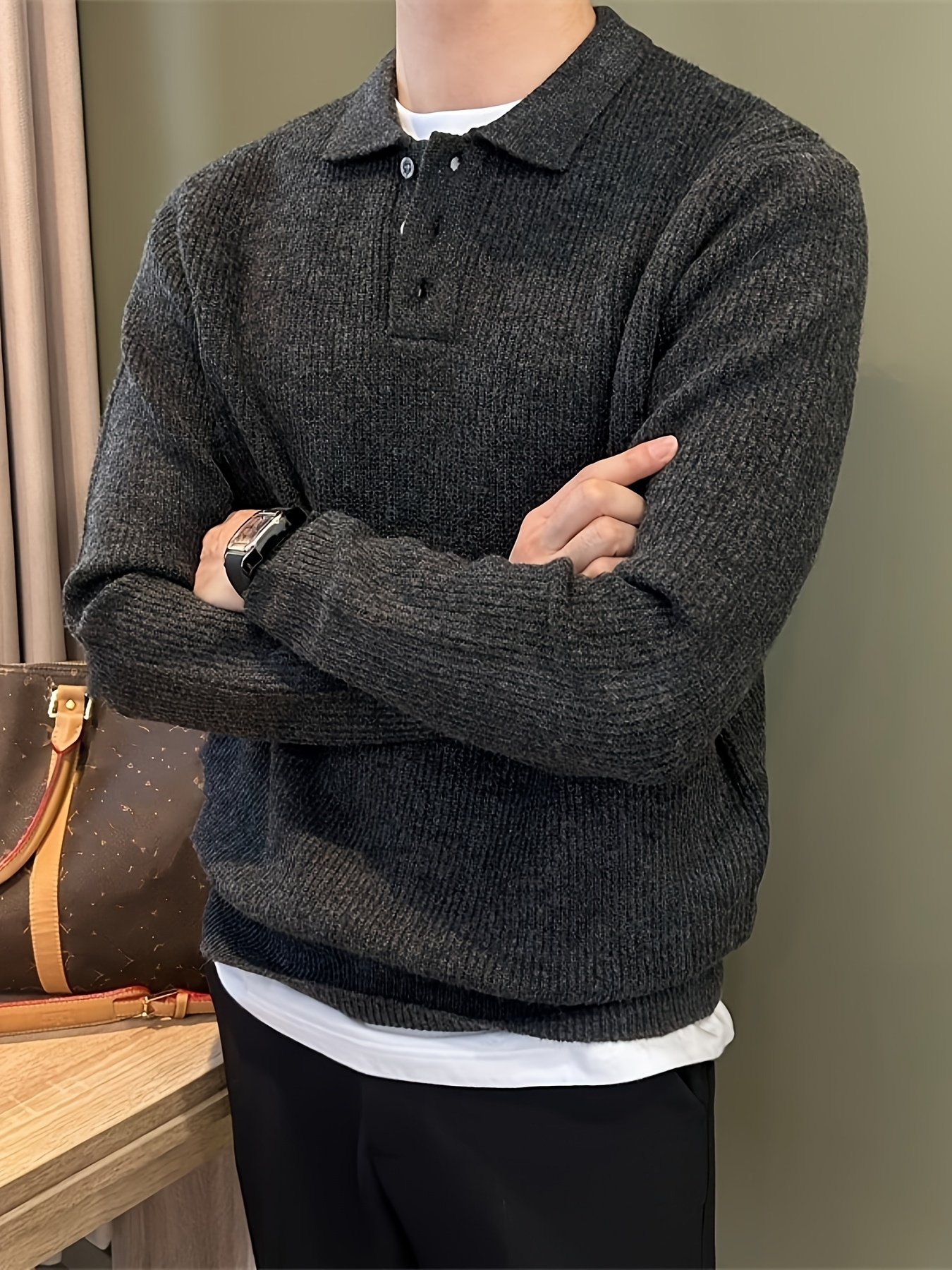 Men'S Casual Light Polo Shirt - Soft Stretch Knit Sweater with Button Front, Long Sleeve, Regular Fit for Fall/Winter, Office & Casual Attire - Everyday Essential, Winter Clothing, Classic Collar, Durable Construction, Stylis