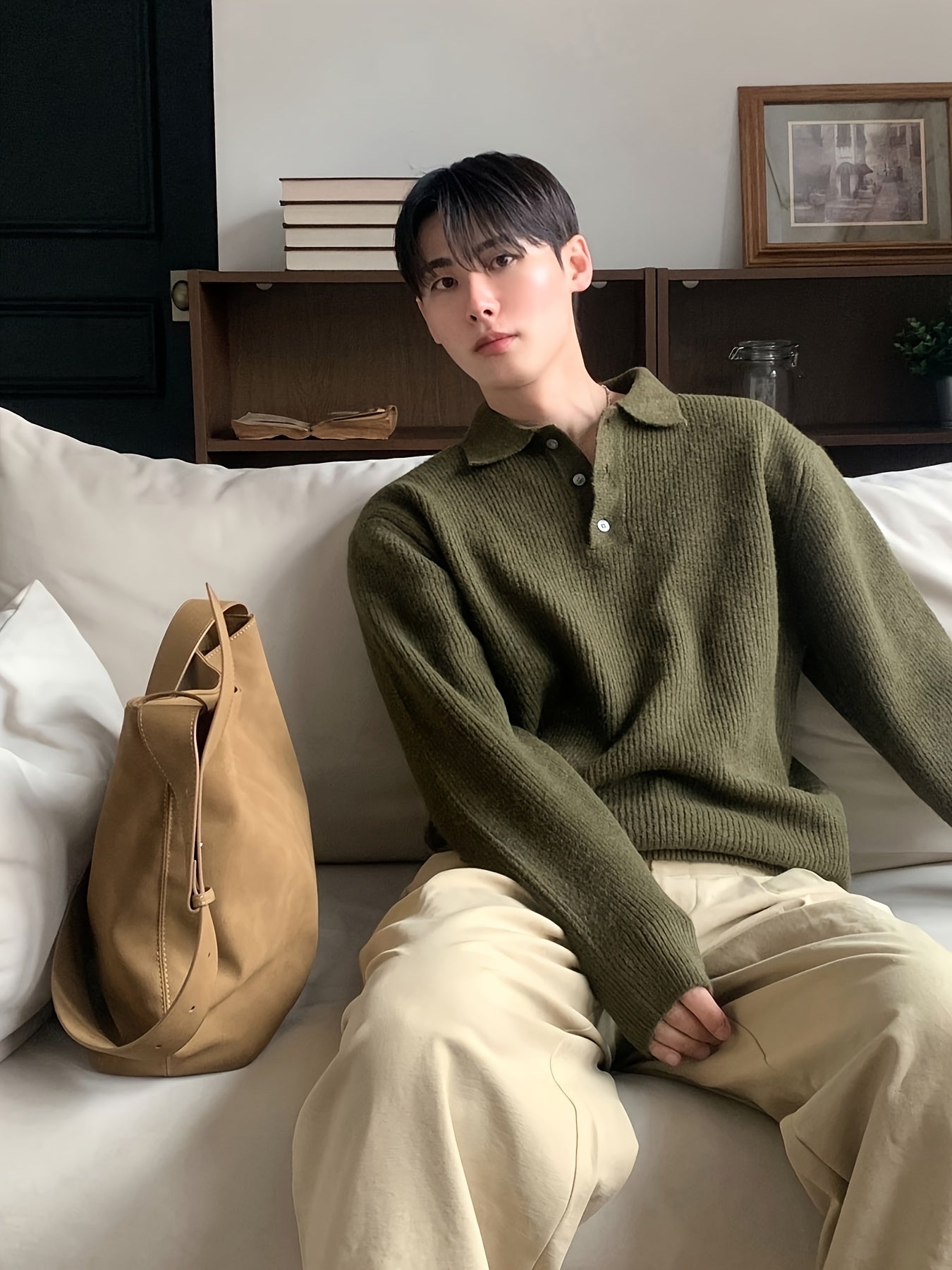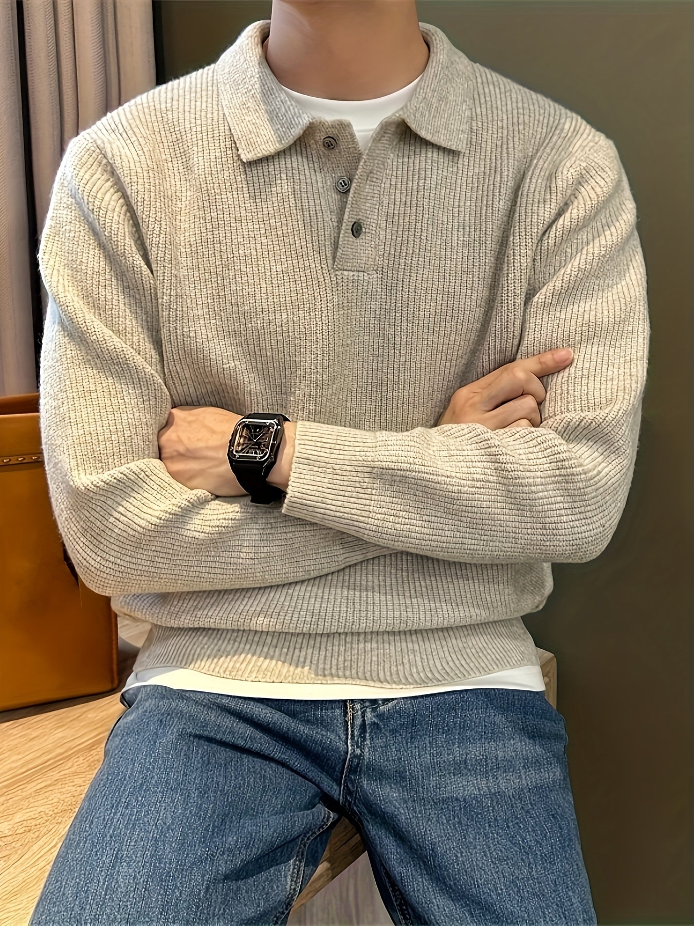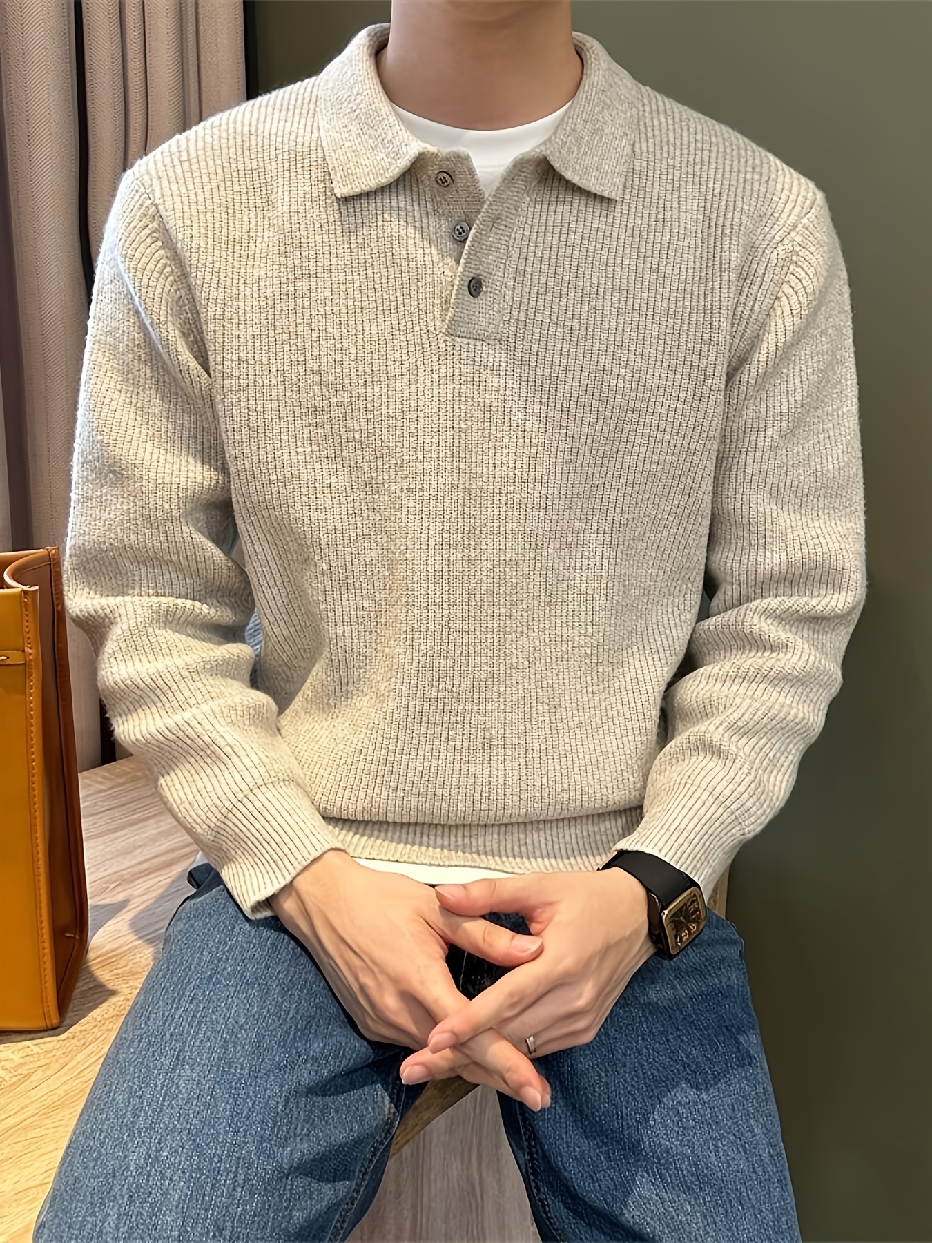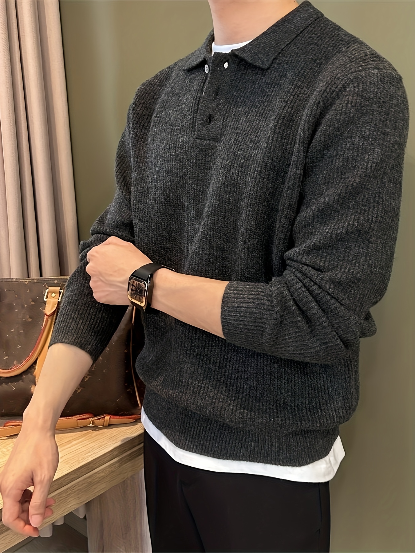 Men'S Casual Light Polo Shirt - Soft Stretch Knit Sweater with Button Front, Long Sleeve, Regular Fit for Fall/Winter, Office & Casual Attire - Everyday Essential, Winter Clothing, Classic Collar, Durable Construction, Stylis