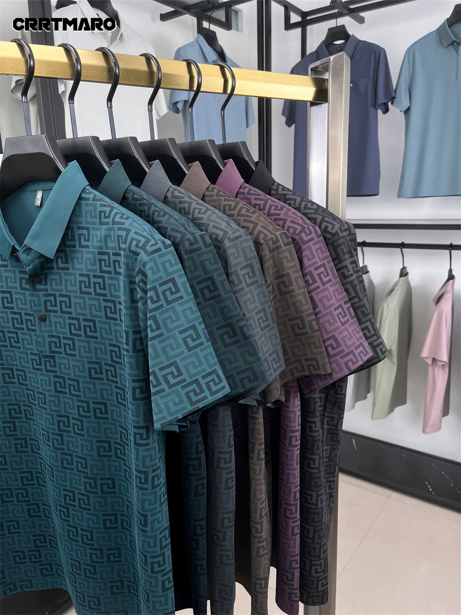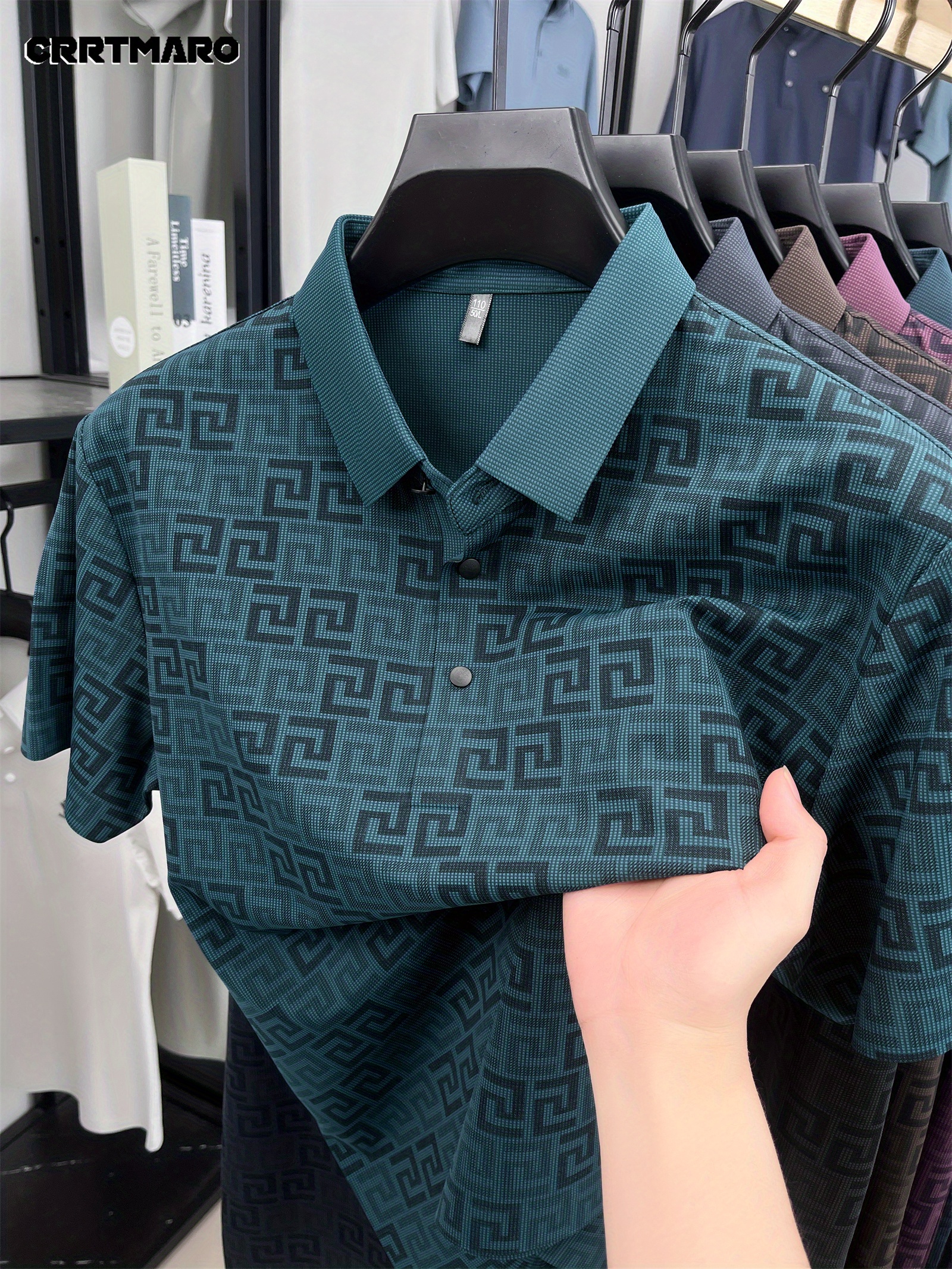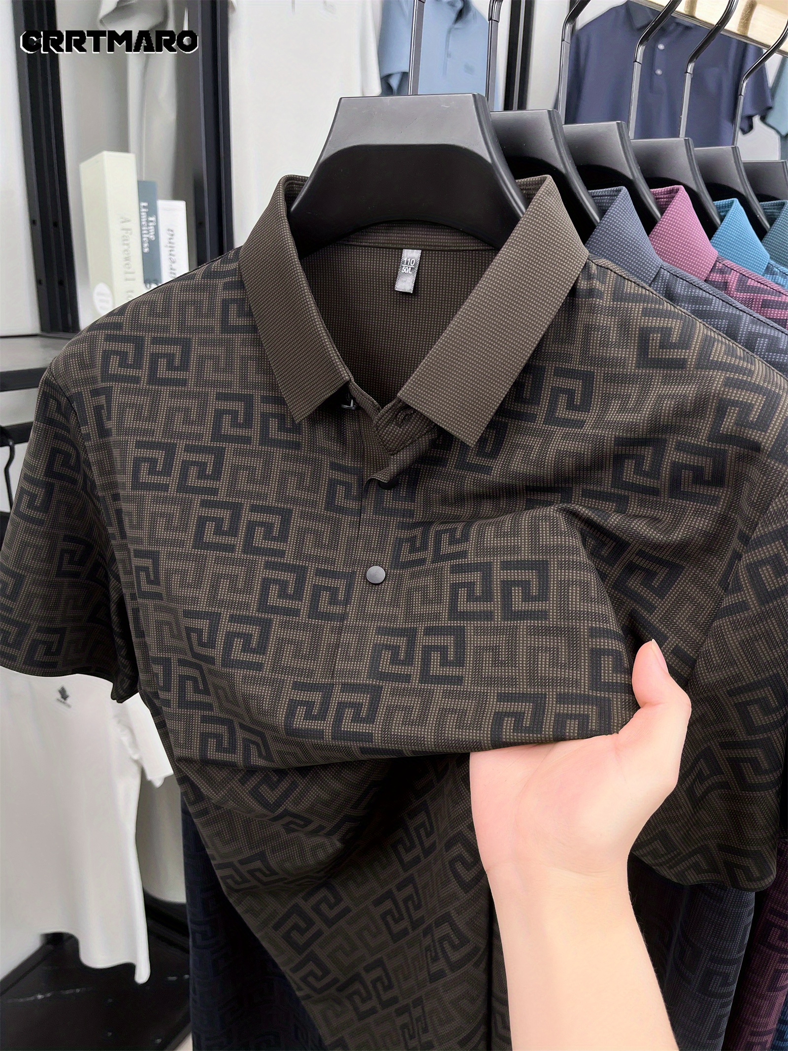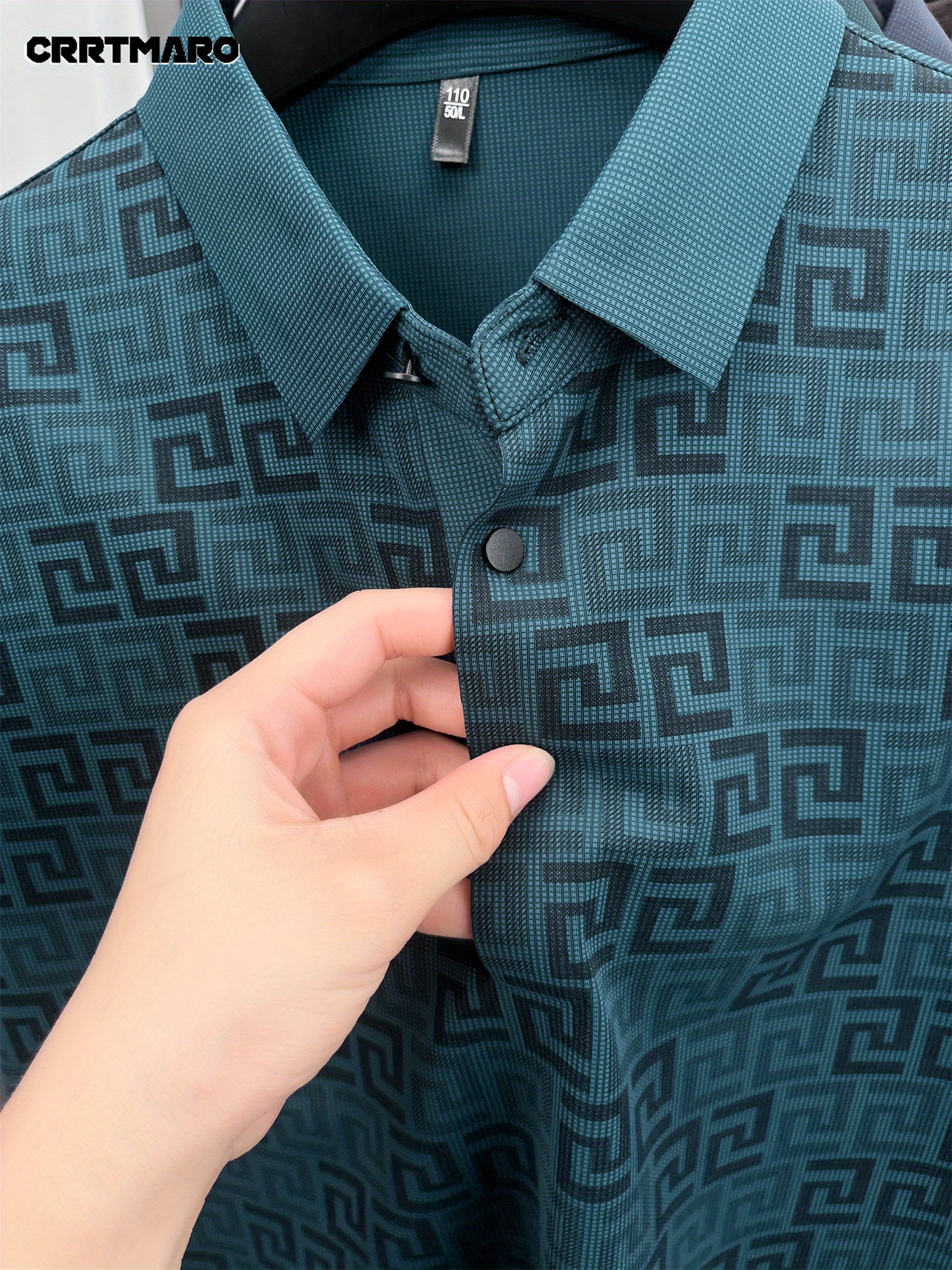 Men'S Casual Summer Polo Shirt - "CRRTMARO" Logo, Lightweight Rayon Fabric, Short Sleeve, Button-Up, Casual Style, Casual Summer Wear | Casual Style Shirt | Glossy Finish