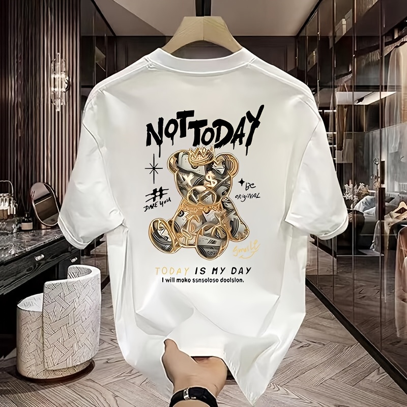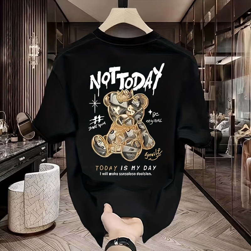 Men'S Heavyweight Cotton Oversized T-Shirt - NOT TODAY Graphic Streetwear Tee, Loose Fit Crewneck Shirt for Everyday & Formal Outfits - Urban Fashion Top for Teens & Adults, Casual Wear, Bold Lettering, Soft Fabric, Short Sle