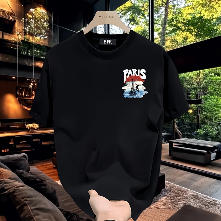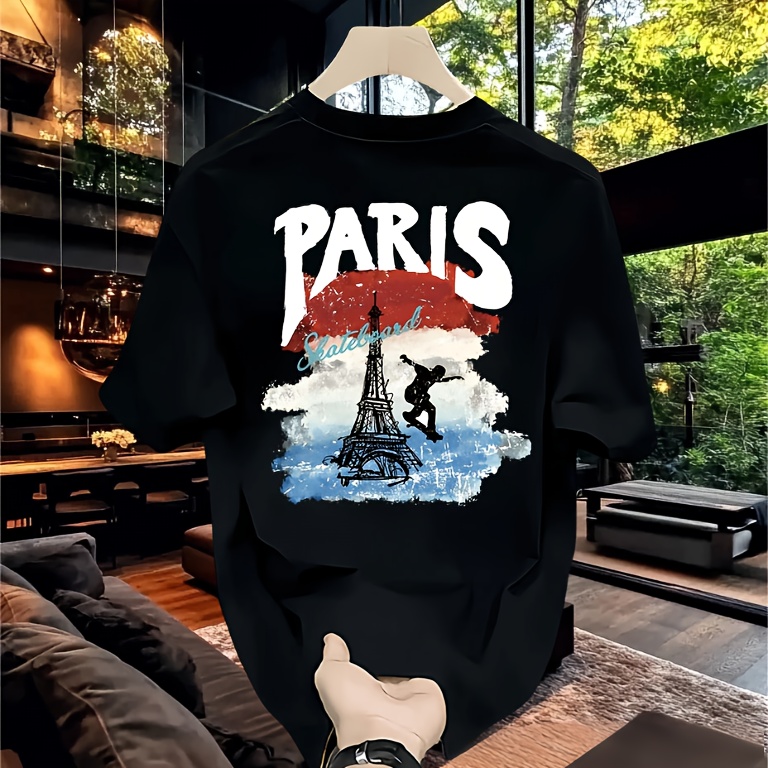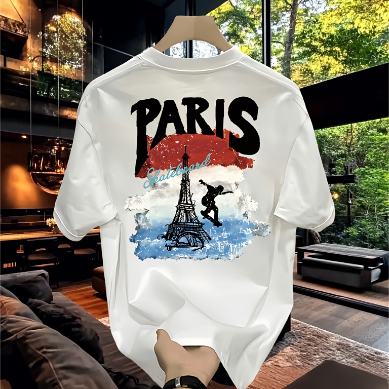 Men'S Heavyweight T-Shirt - Paris Skateboard Graphic, Loose Fit, Short Sleeve, Casual Summer Top with Eiffel Tower Design, Everyday Tshirt | Trendy Casualwear | Durable Fabri