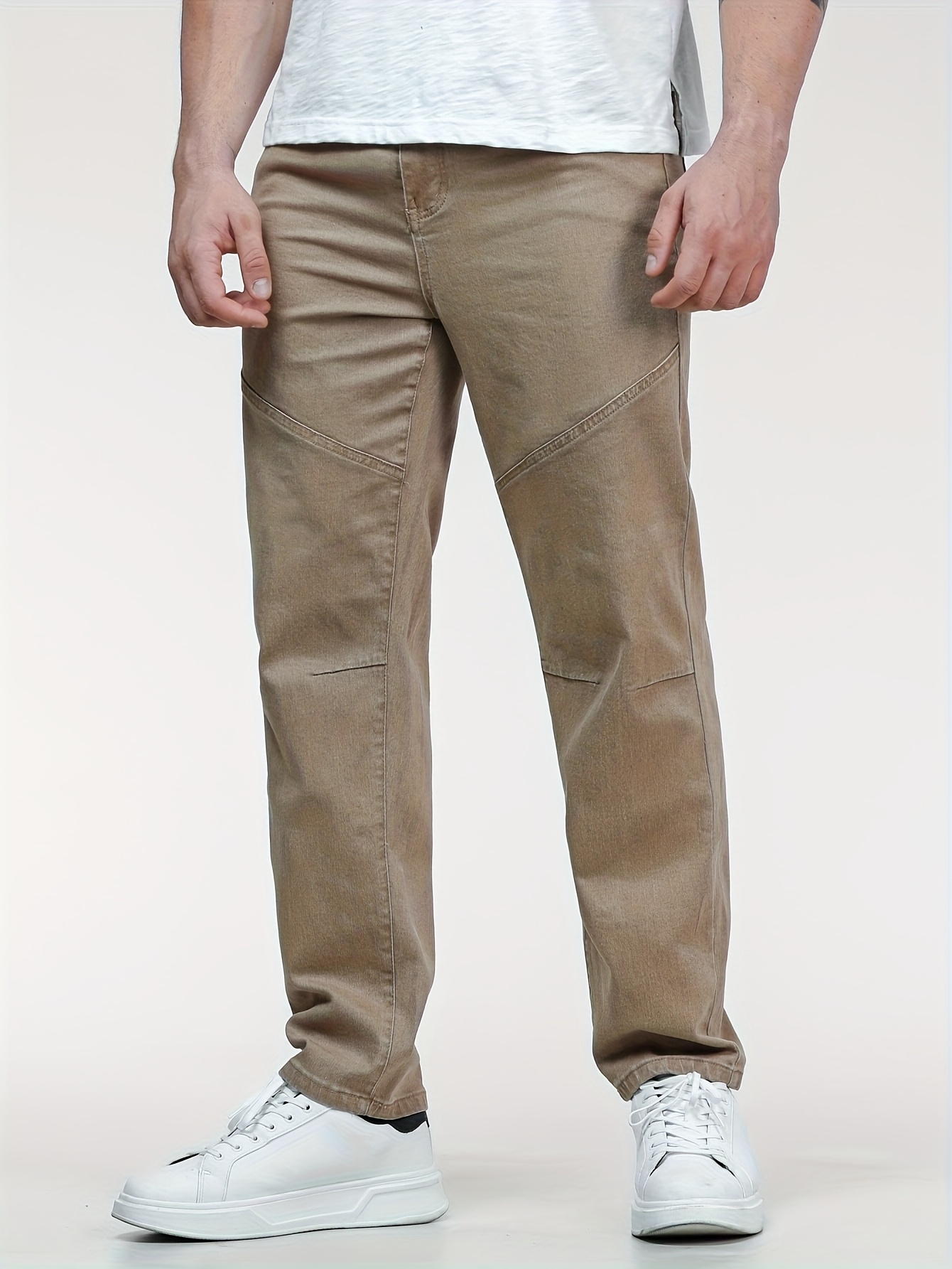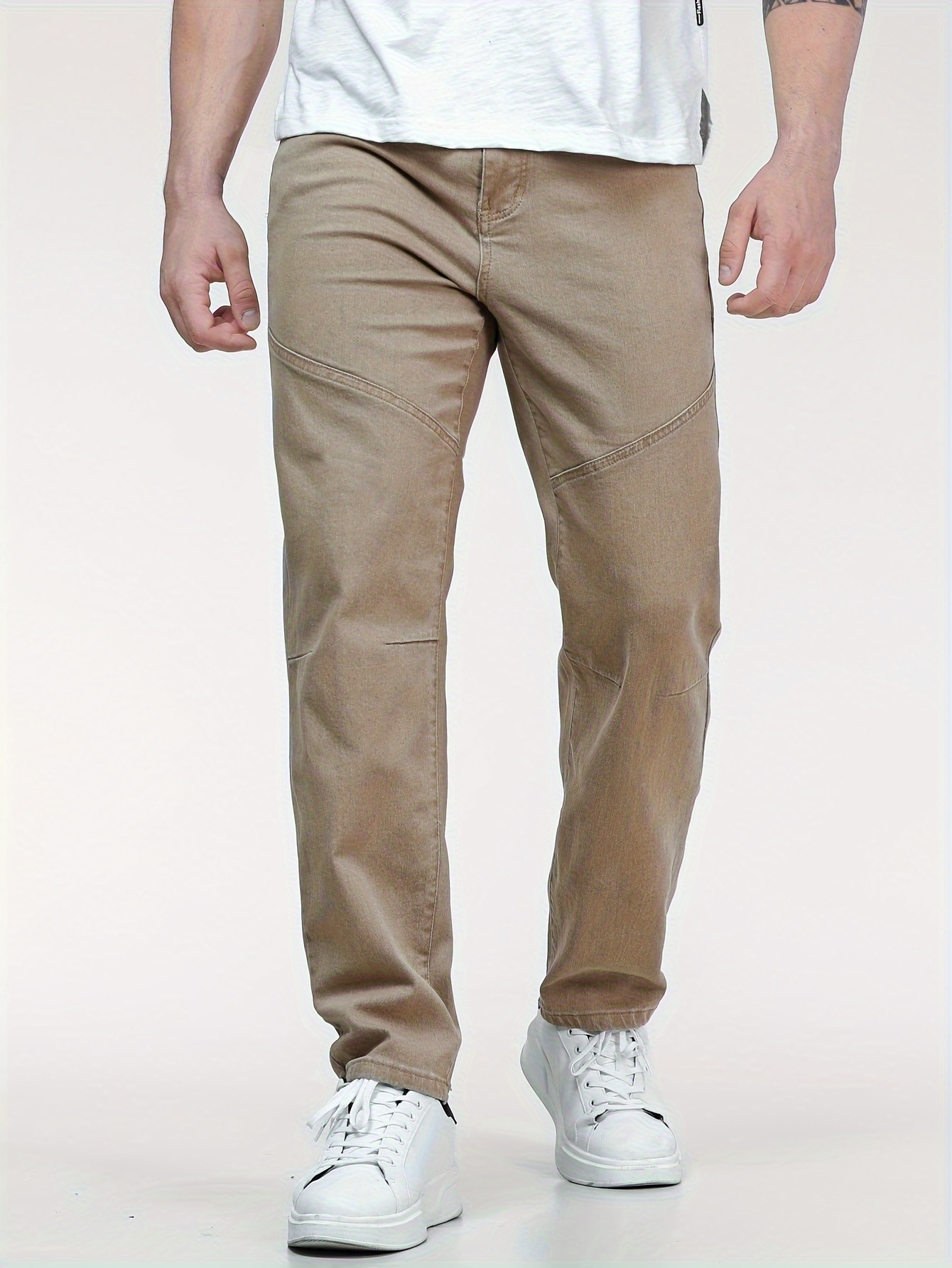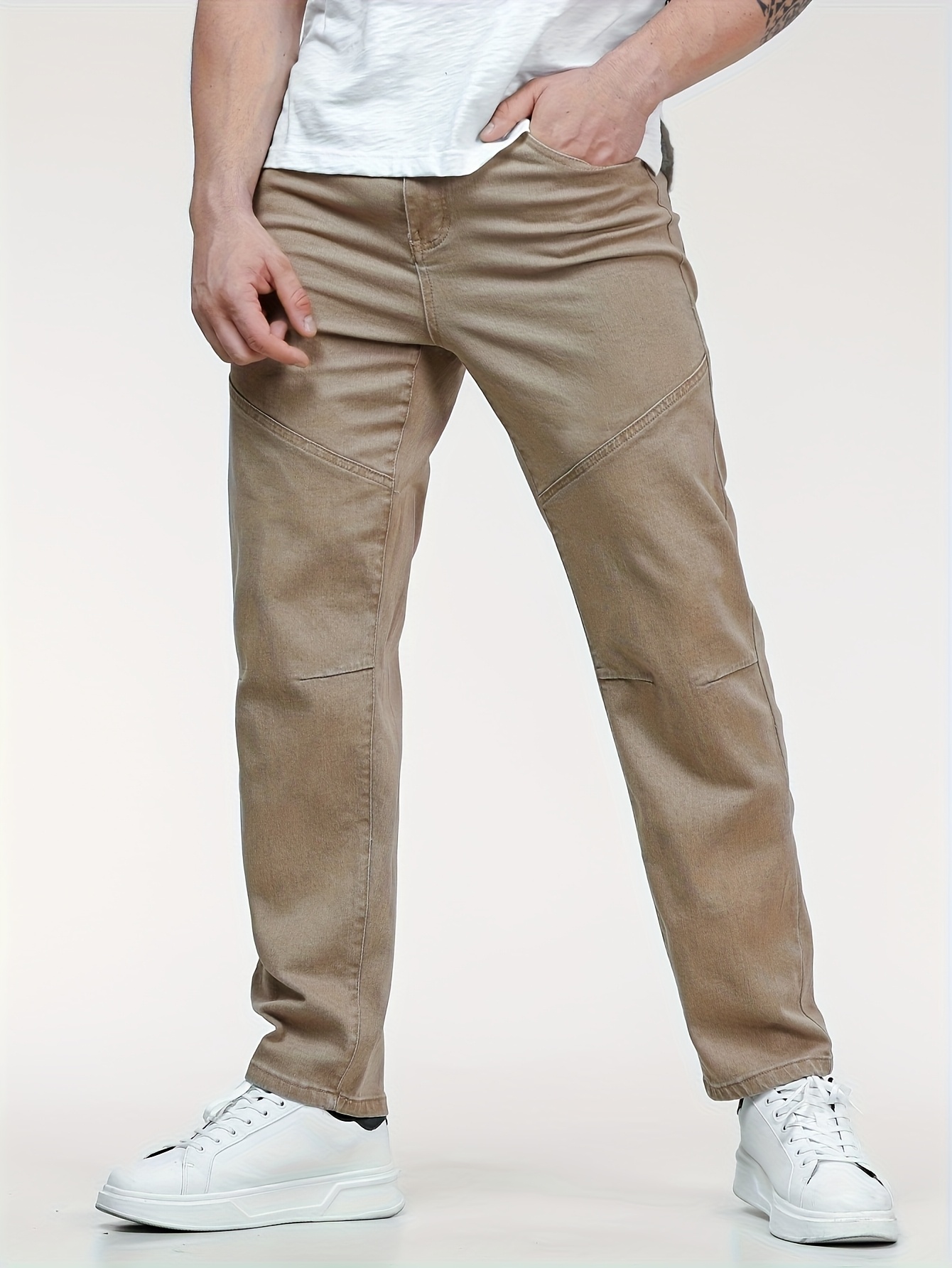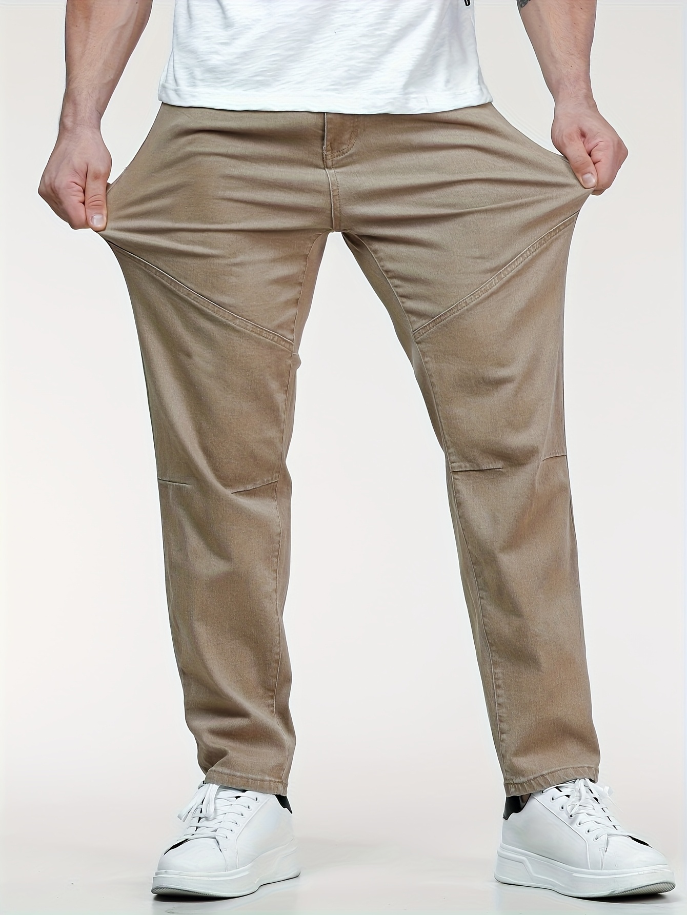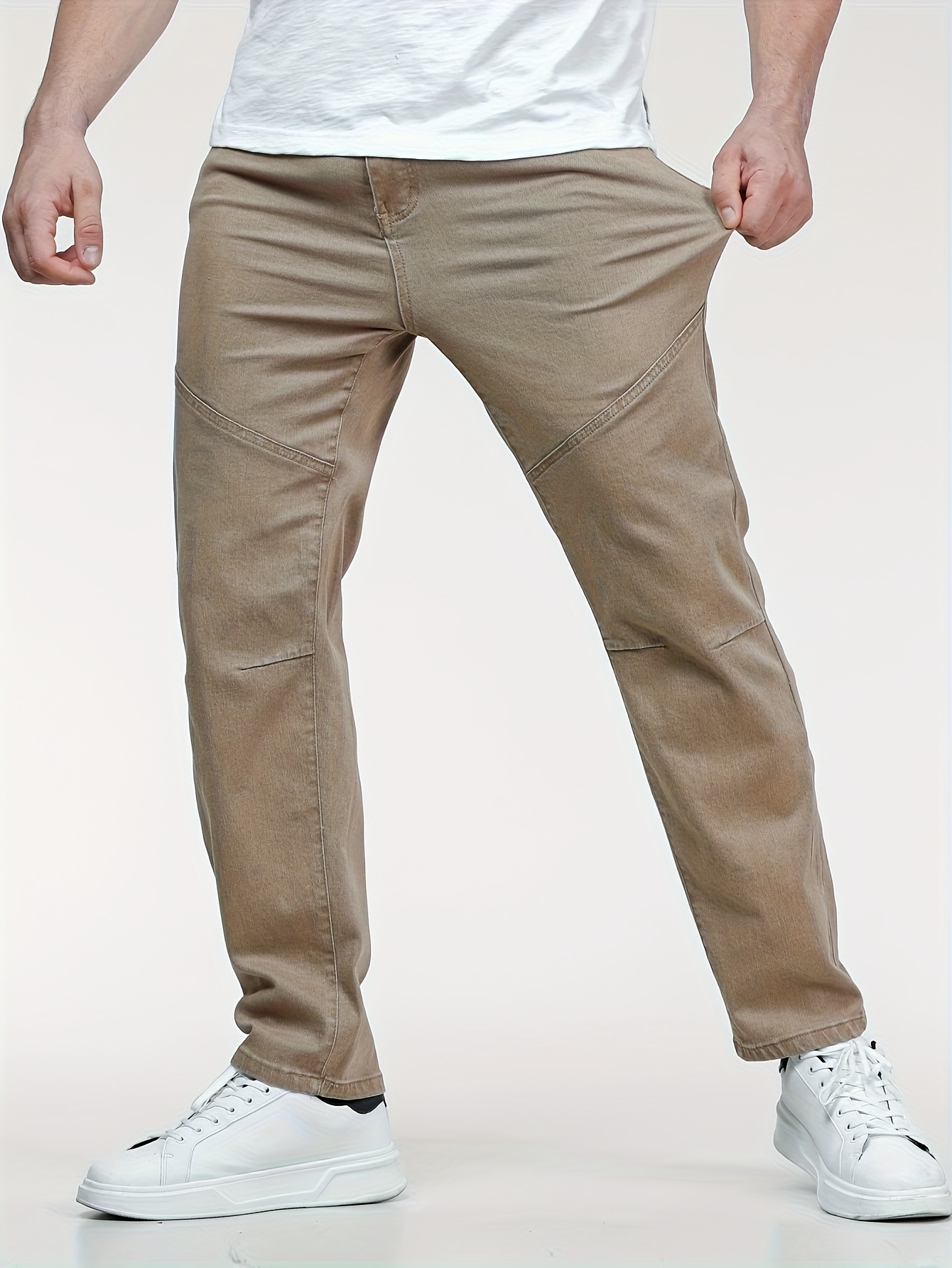 Jean denim homme grande taille extensible – Pantalon casual droit avec poches, marron, coupe confortable toutes saisons, tissu légèrement extensible