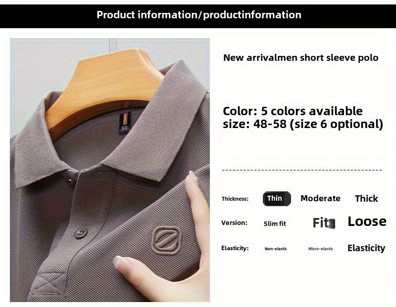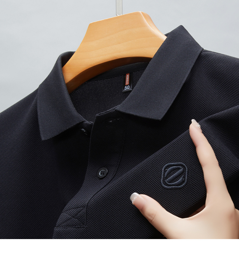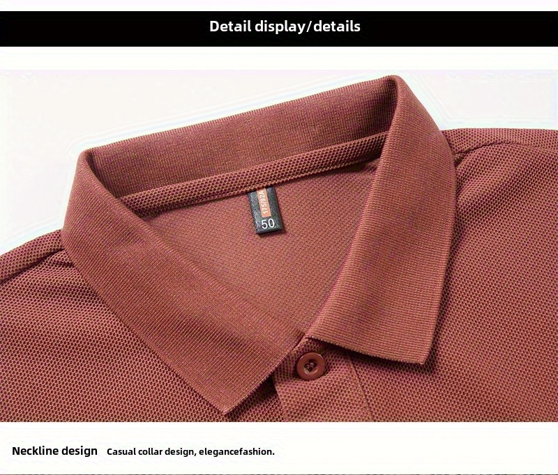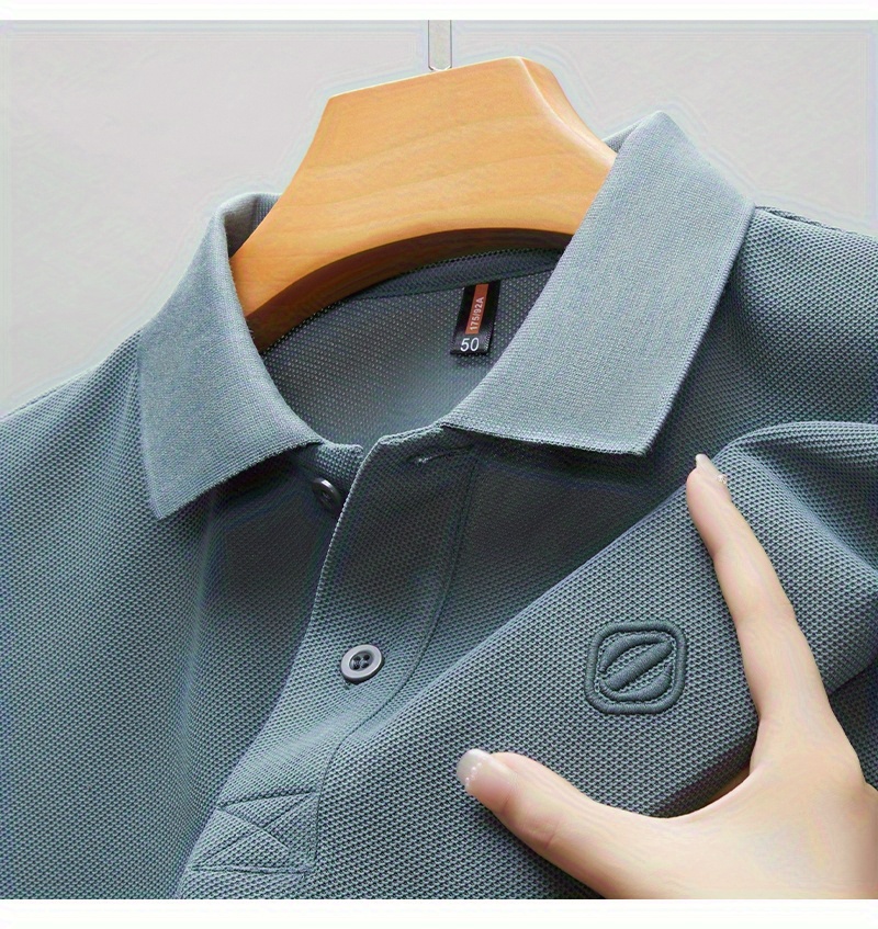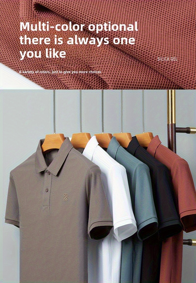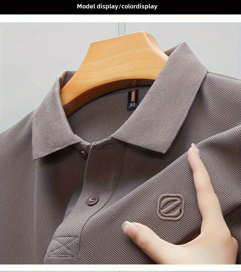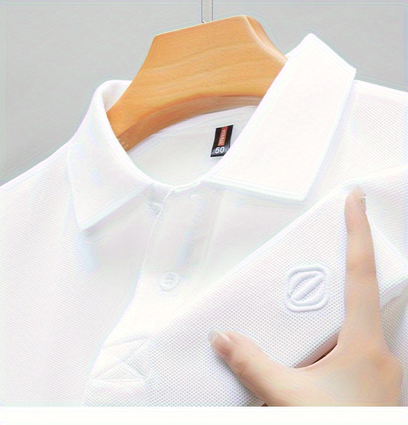 Men's Slim-Fit Short Sleeve Shirt - Breathable Black with White Collar & Logo, Classic Lapel Neck, Wrinkle-Resistant Fabric for Spring/Autumn, Versatile Casual & Semi-Formal Wear - Easy Care (Hand Wash/Dry Clean) - ZBZP25 Col