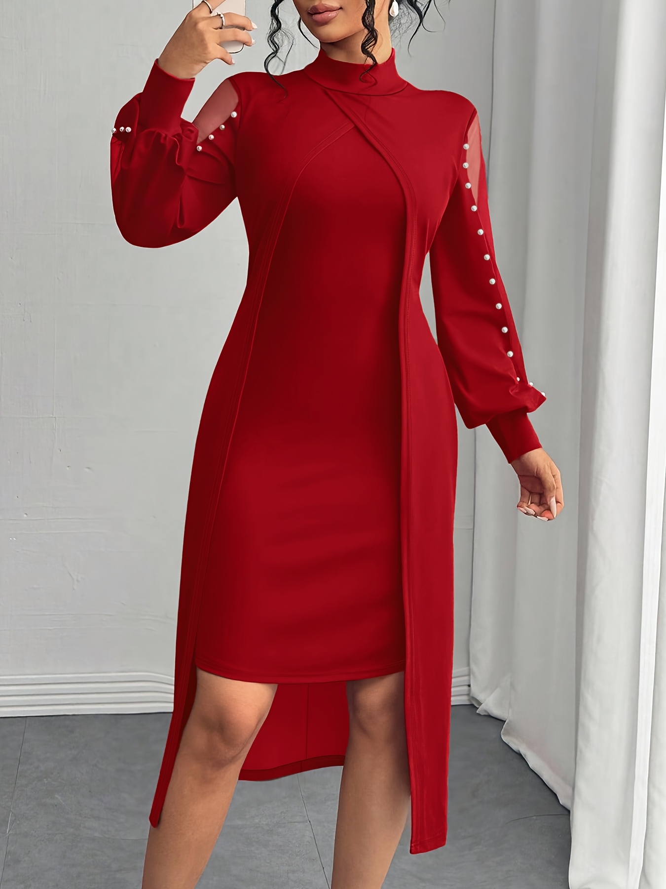 Robe Longue Grande Taille Élégante – Marron/Rouge, Coupe Flatteuse, Idéale Soirées, Bureau et Tenues Automne/Hiver