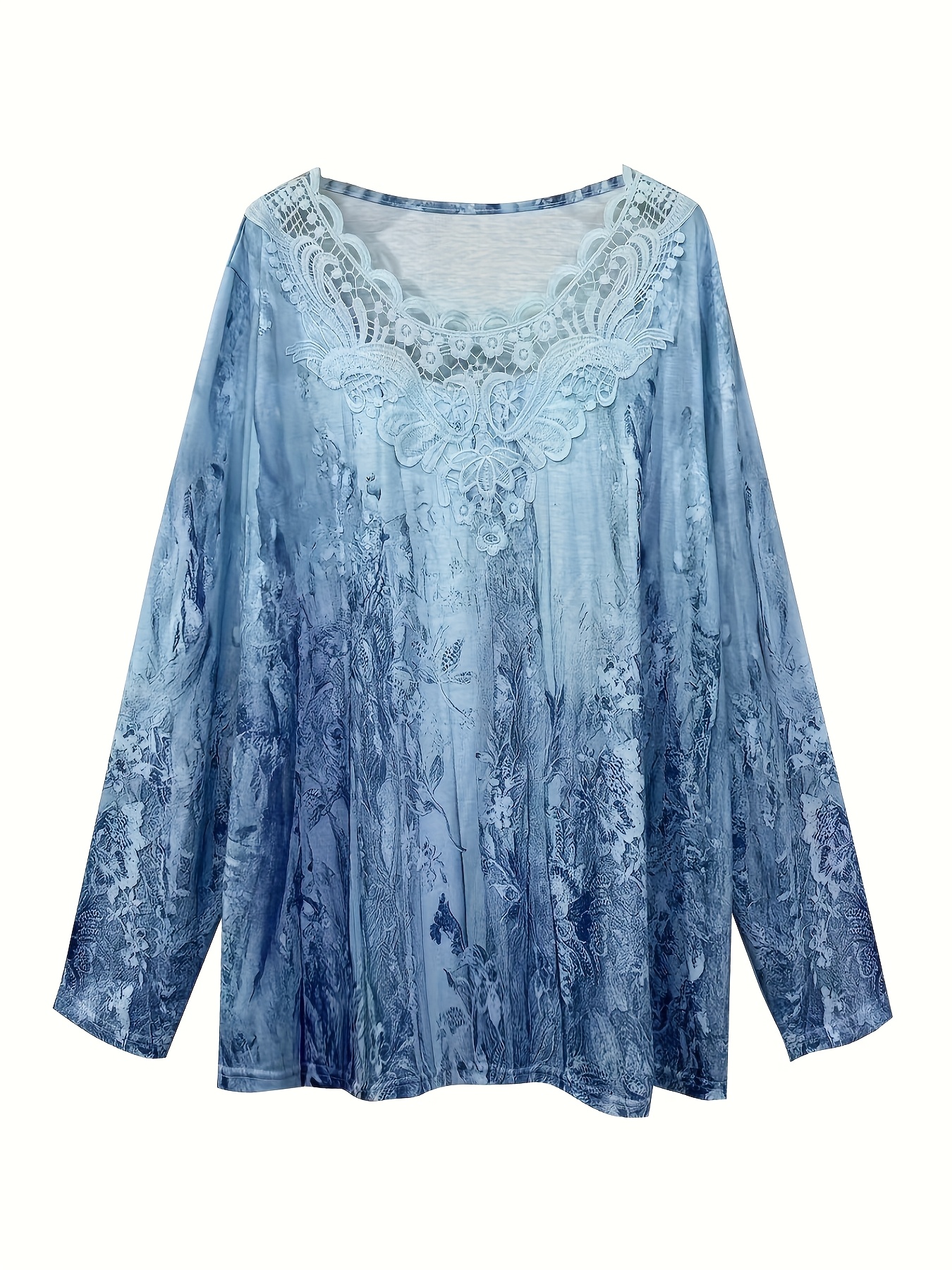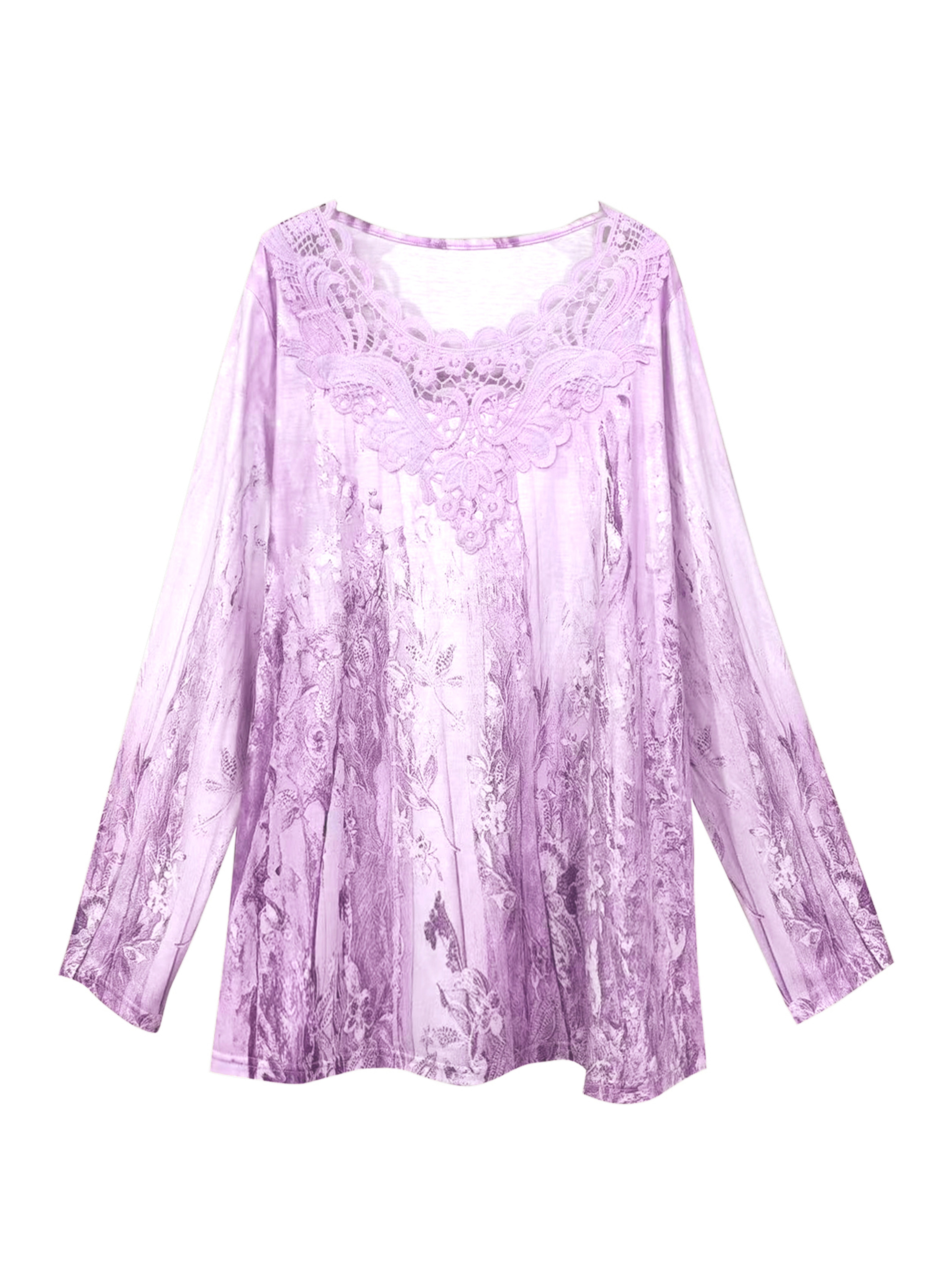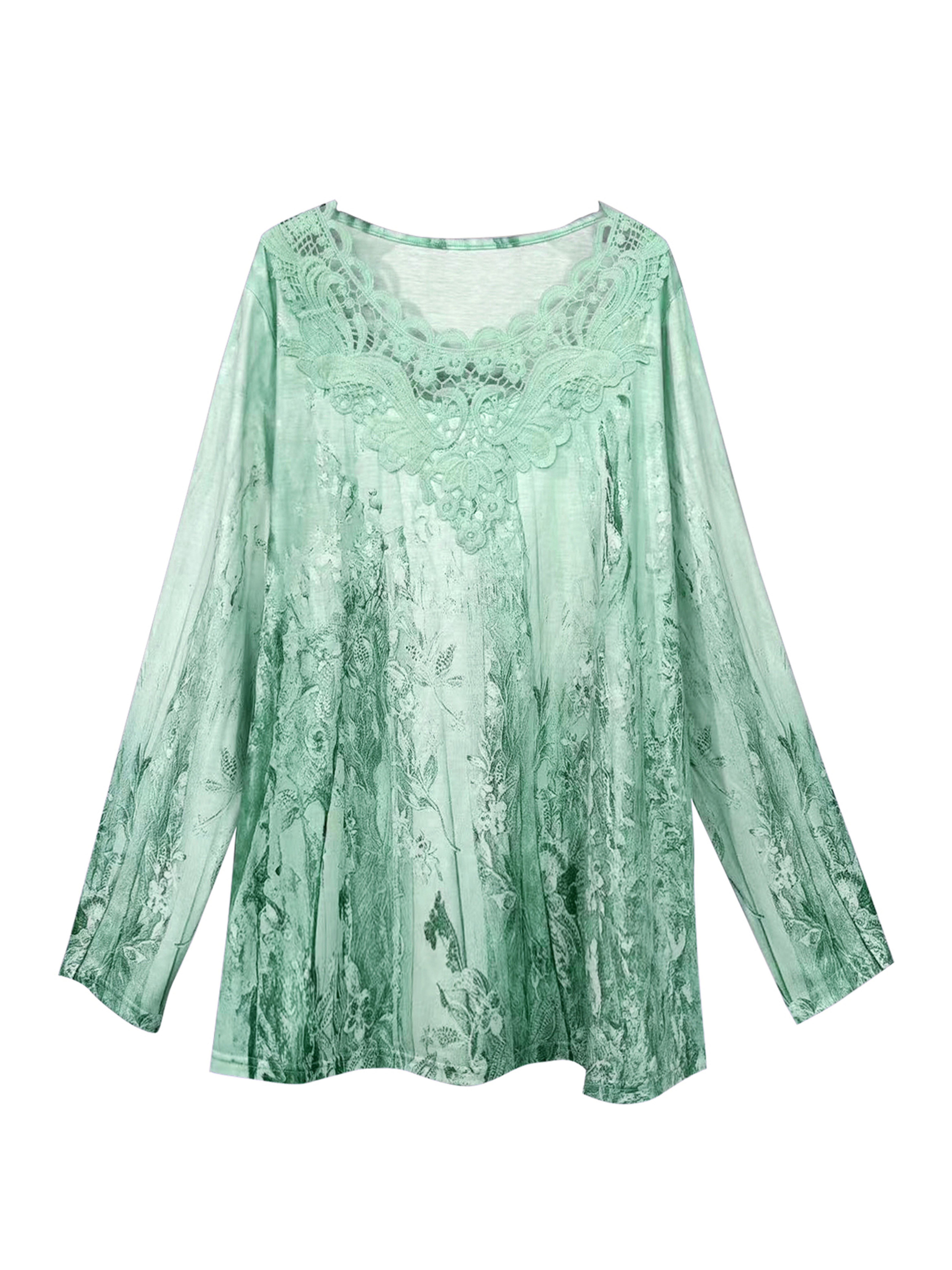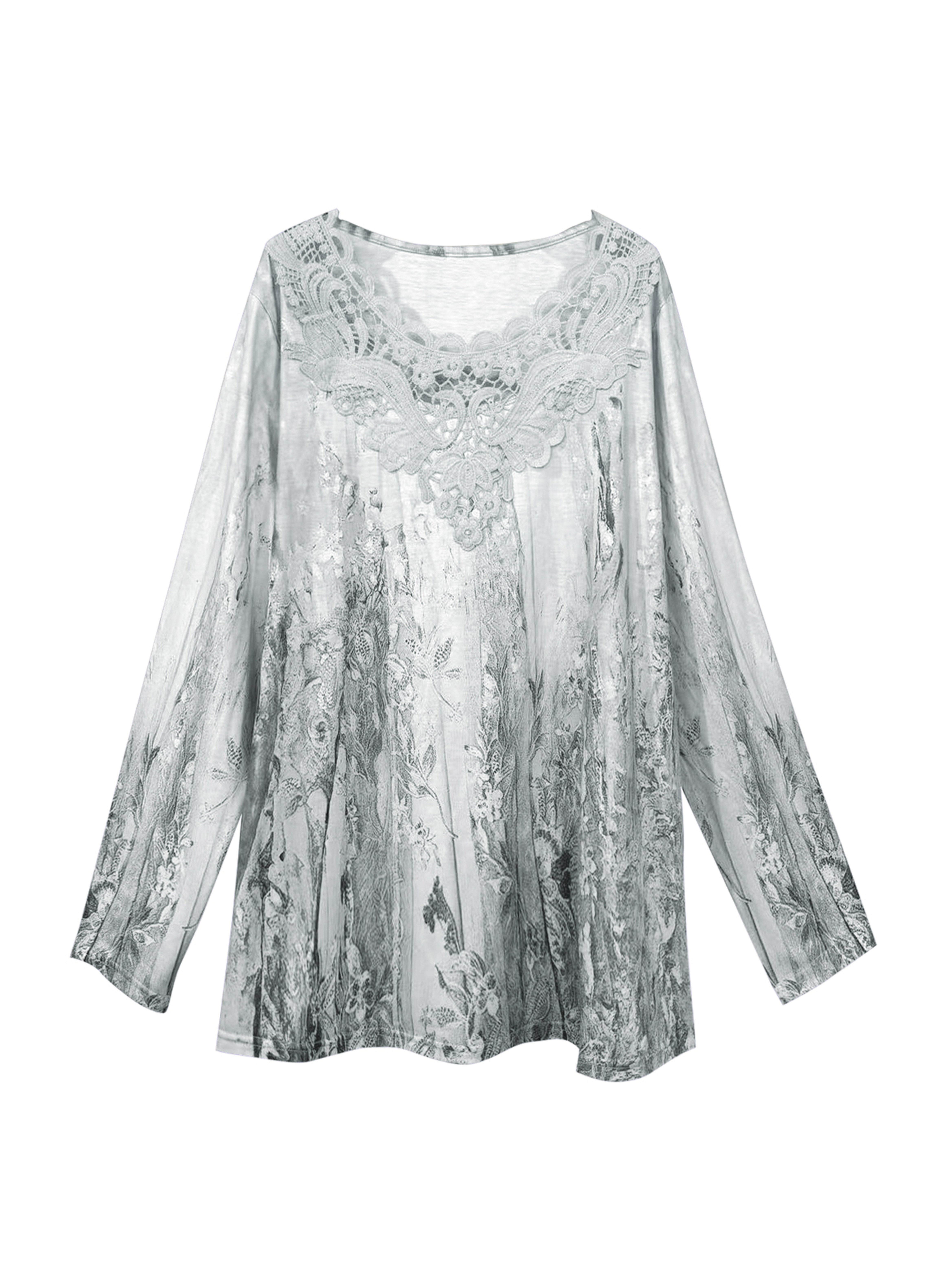 T-shirt grande taille manches longues col dentelle