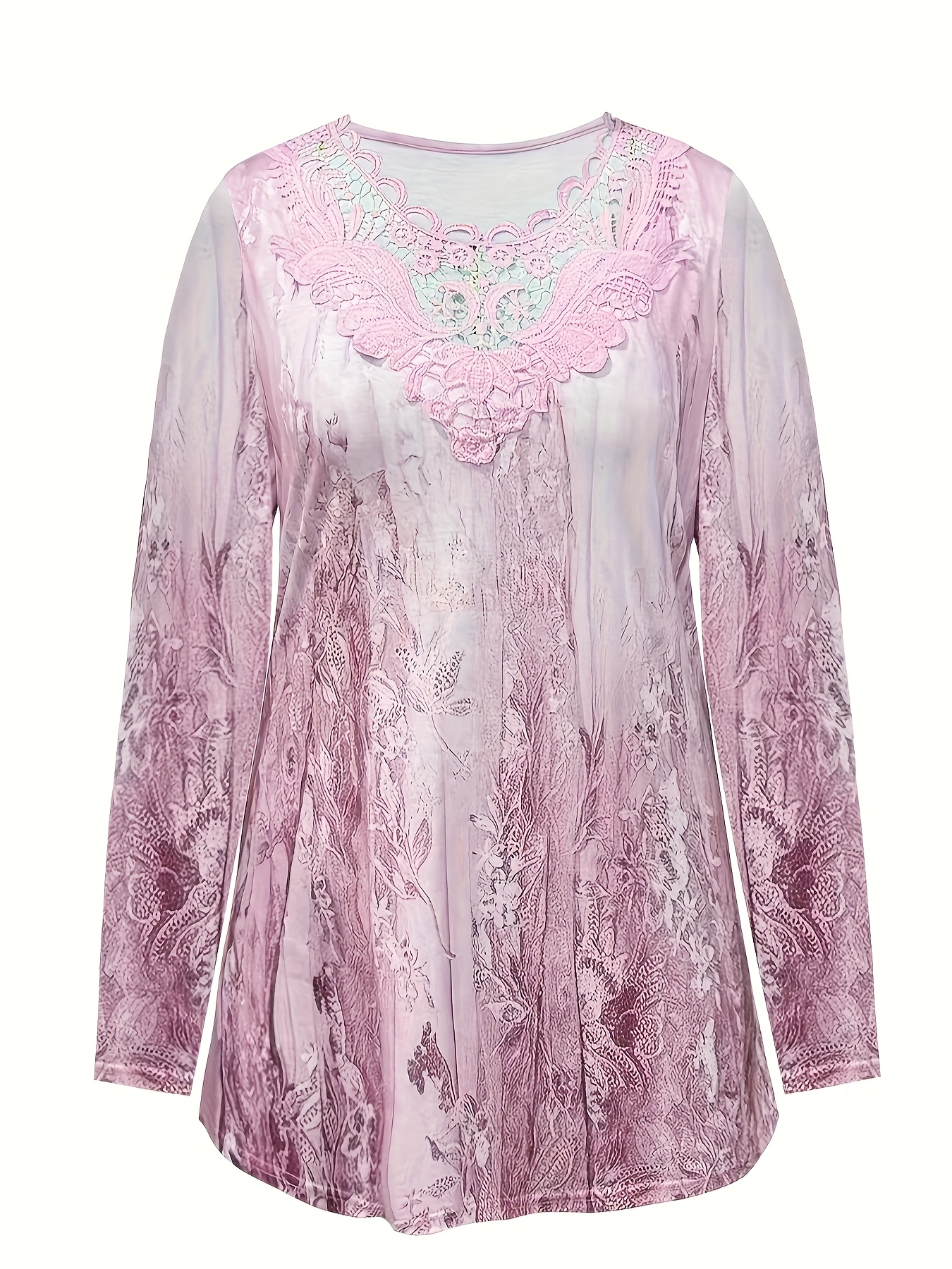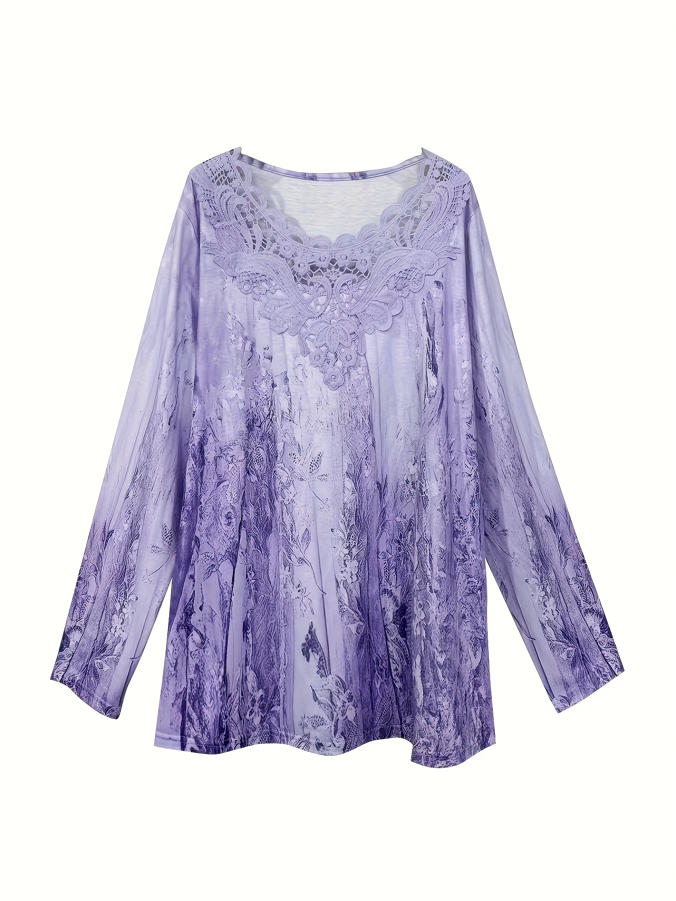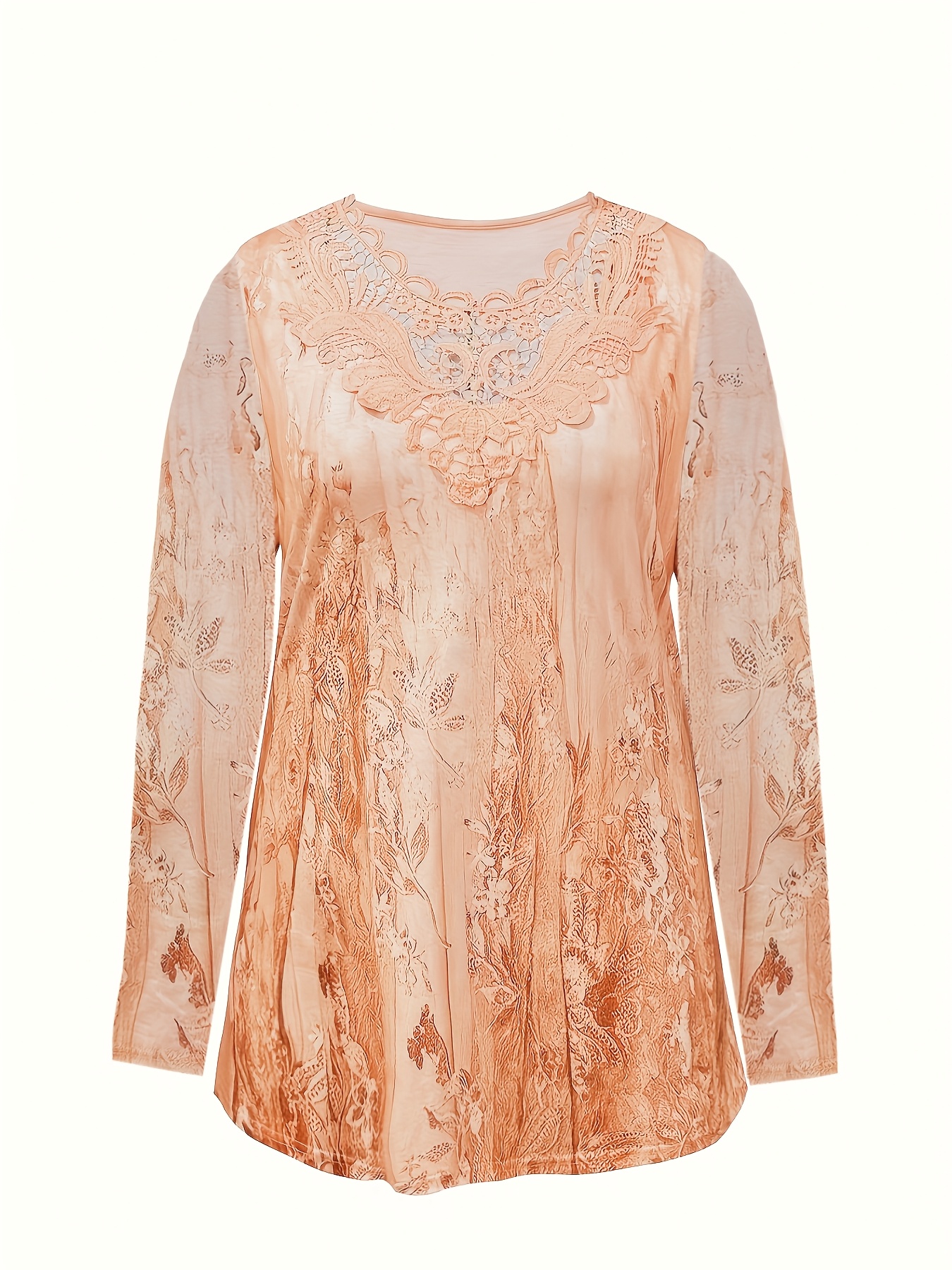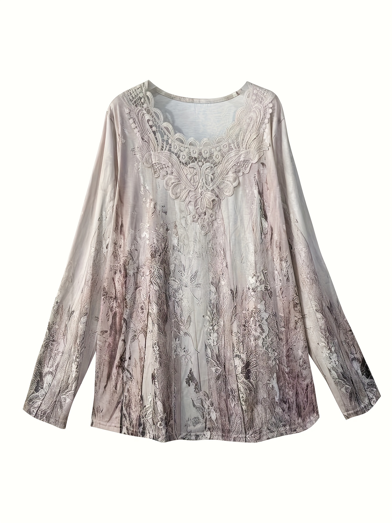 T-shirt grande taille manches longues col dentelle