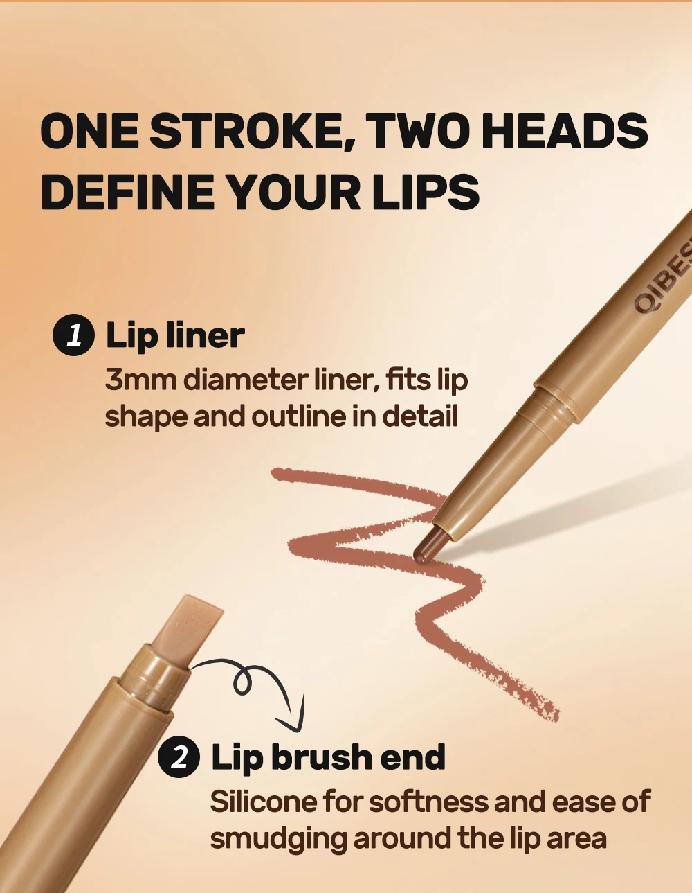 Double headed design: Lipstick Lip Liner at one end and lip brush at the other end
