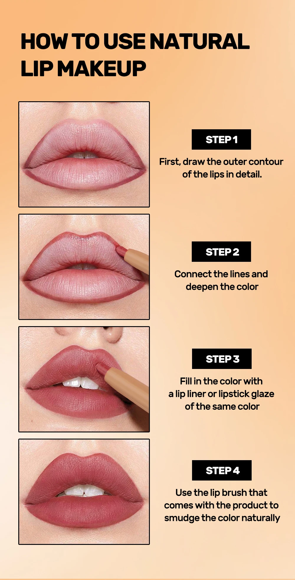 Seamless Blending: Crafted with ultra-soft synthetic bristles, the brush tip allows for effortless diffusion of lip liner into lipstick or lip gloss, creating a natural, airbrushed gradient.