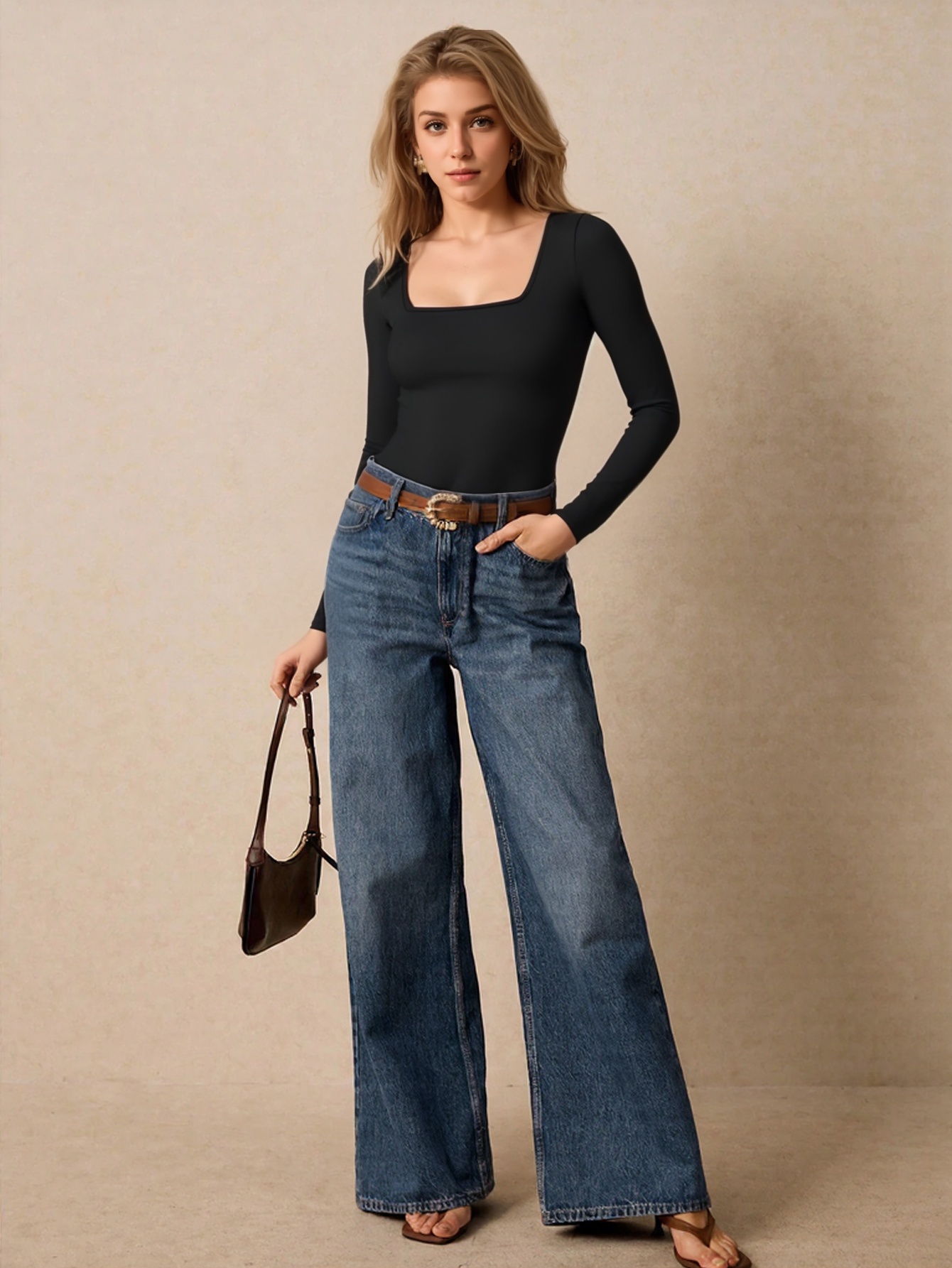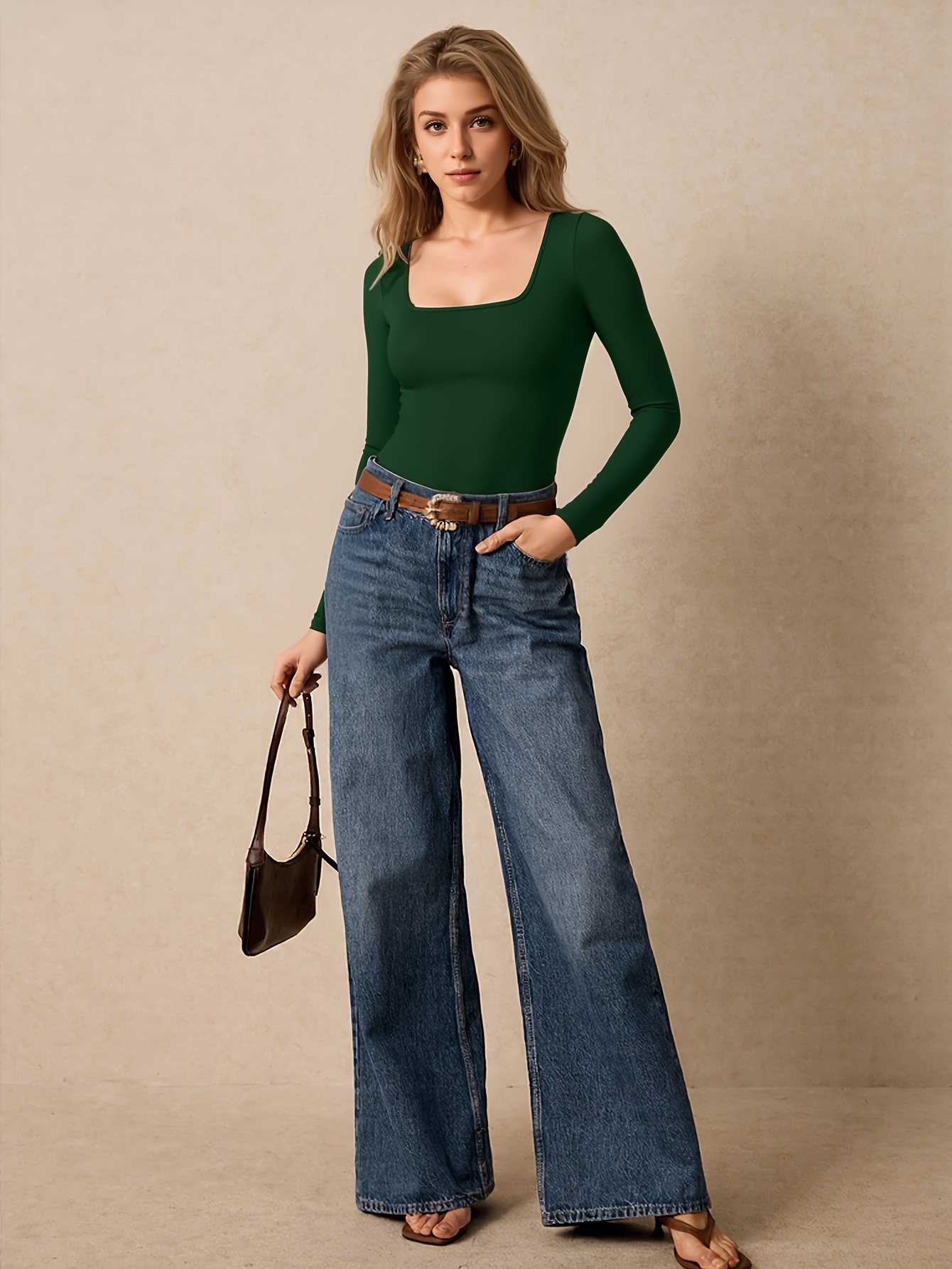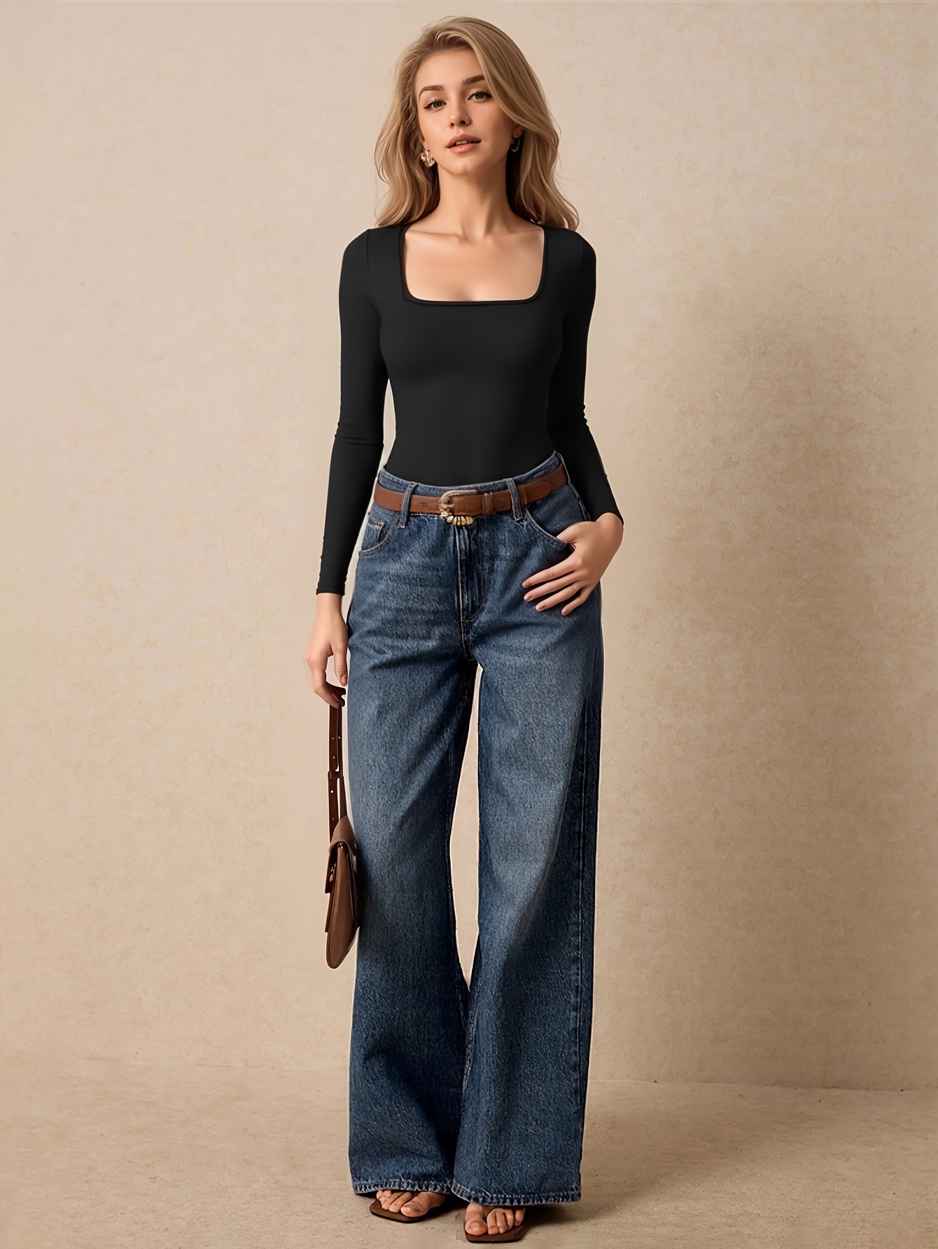 Body femme à col carré, couleur unie, manches longues. Coupe sexy et élégante, pièce unique idéale pour toutes les occasions