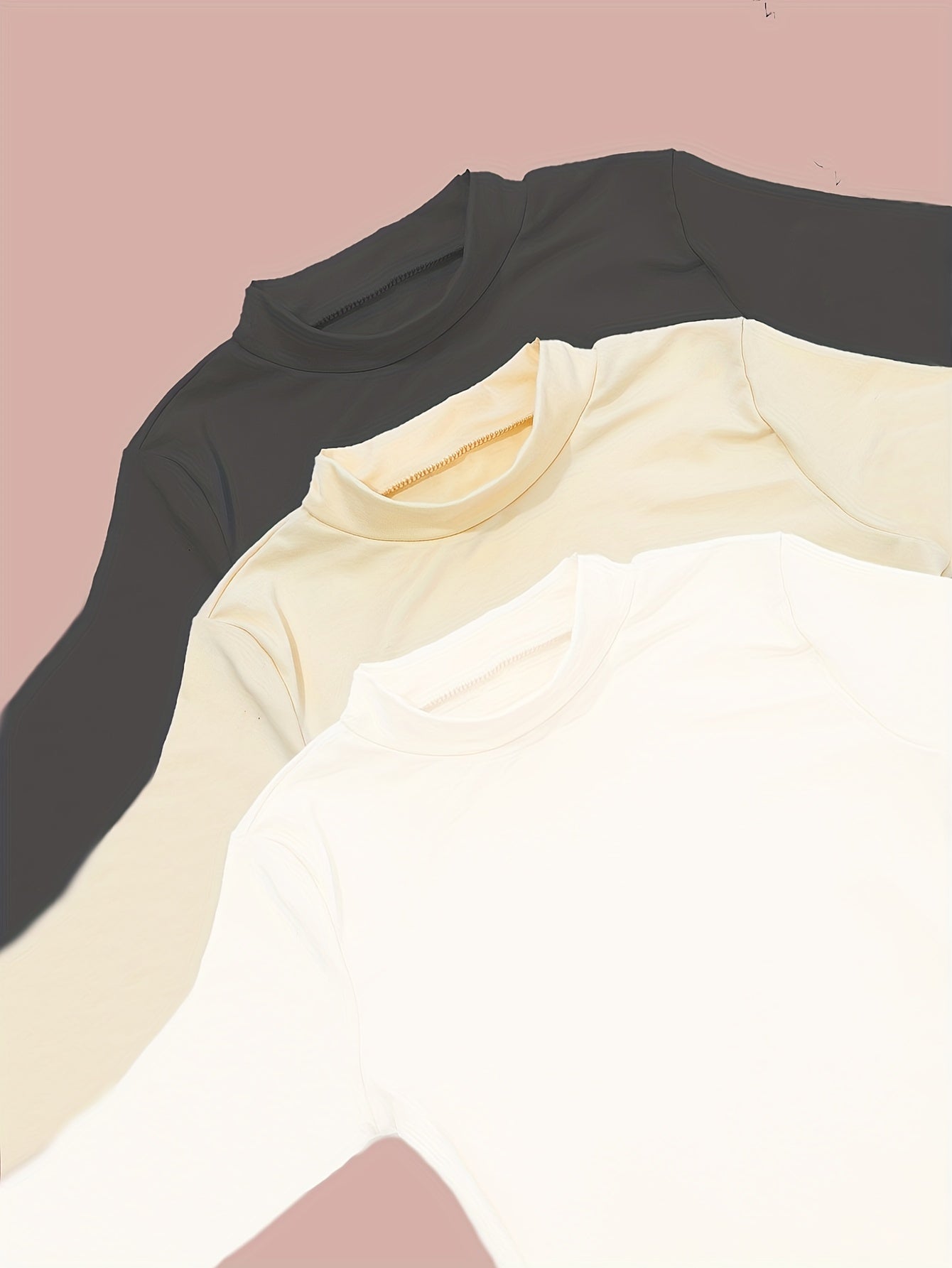 Lot de 3 bodys slim unis pour femme, manches longues, col montant, style décontracté
