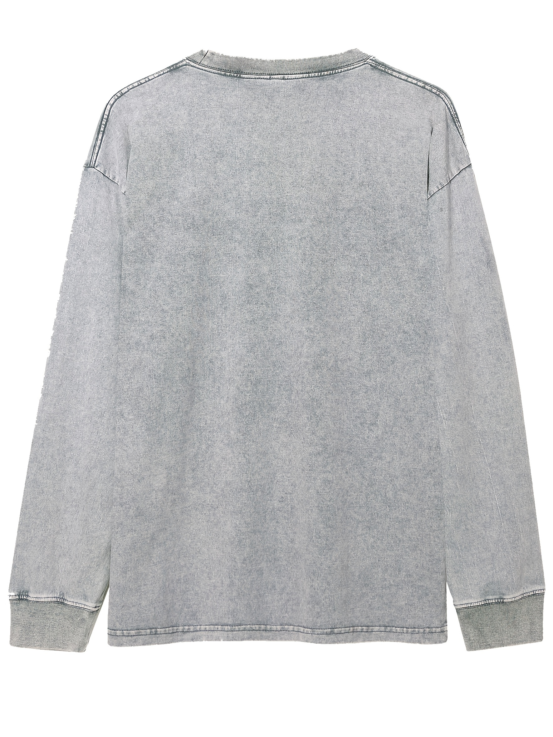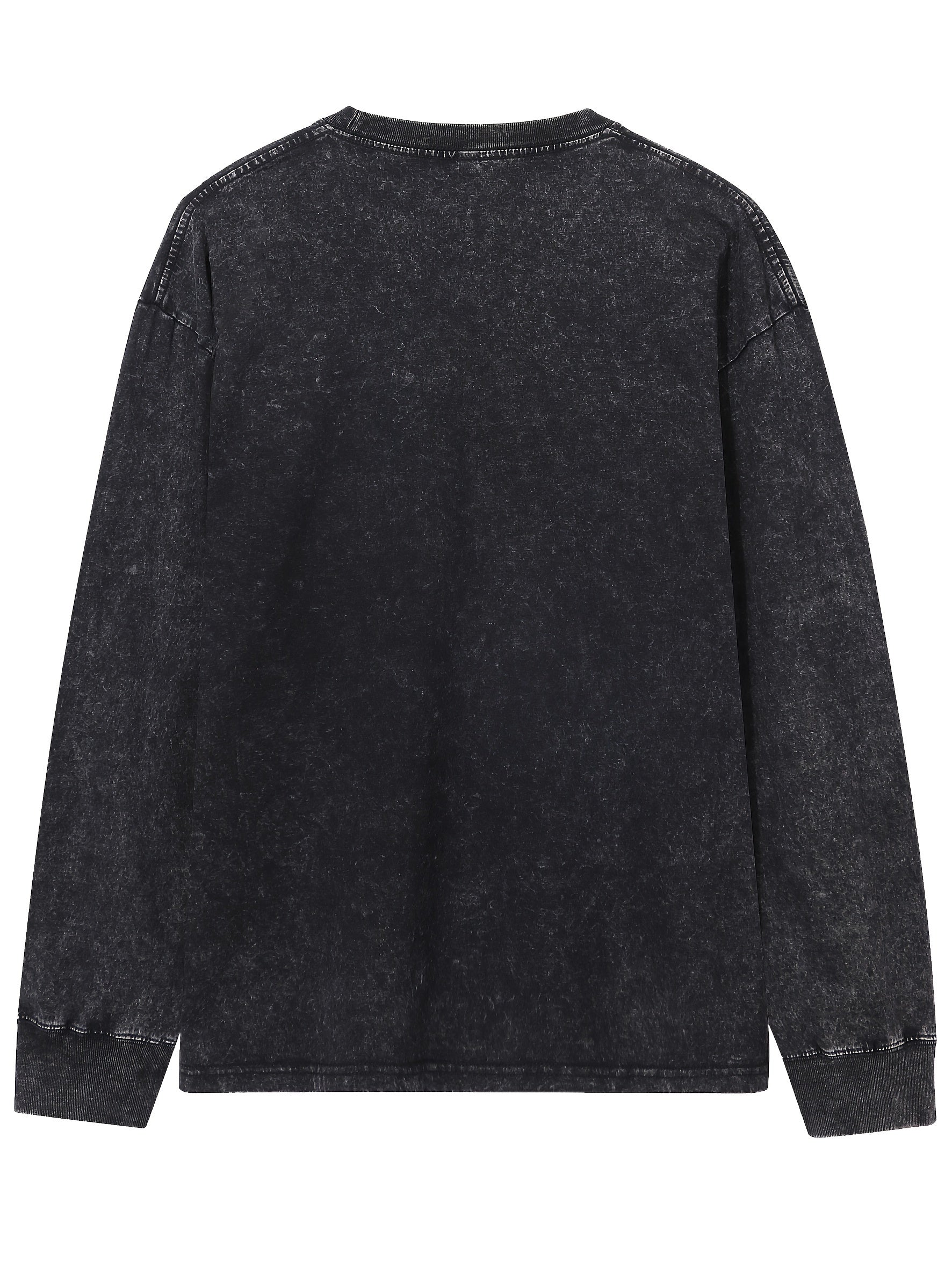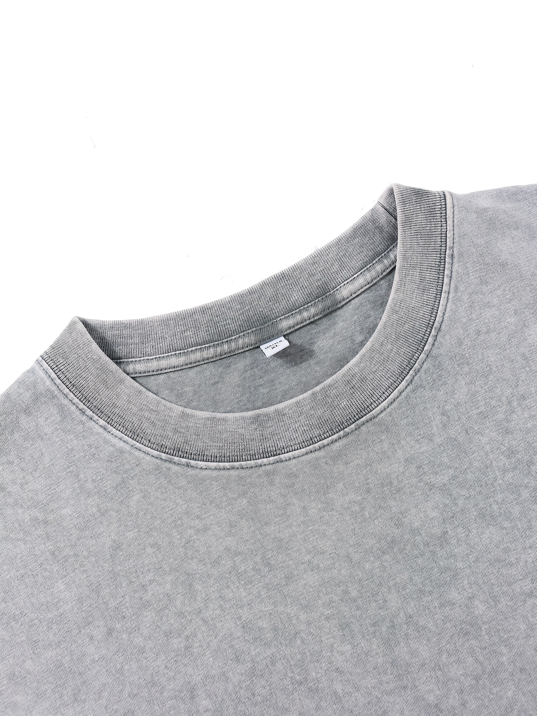 Lot de 3 t-shirts unisexes printemps/automne/hiver – manches longues, col rond côtelé, 240 g, coton pur lourd, style vintage usé délavé, tendance pour couples, nouveau