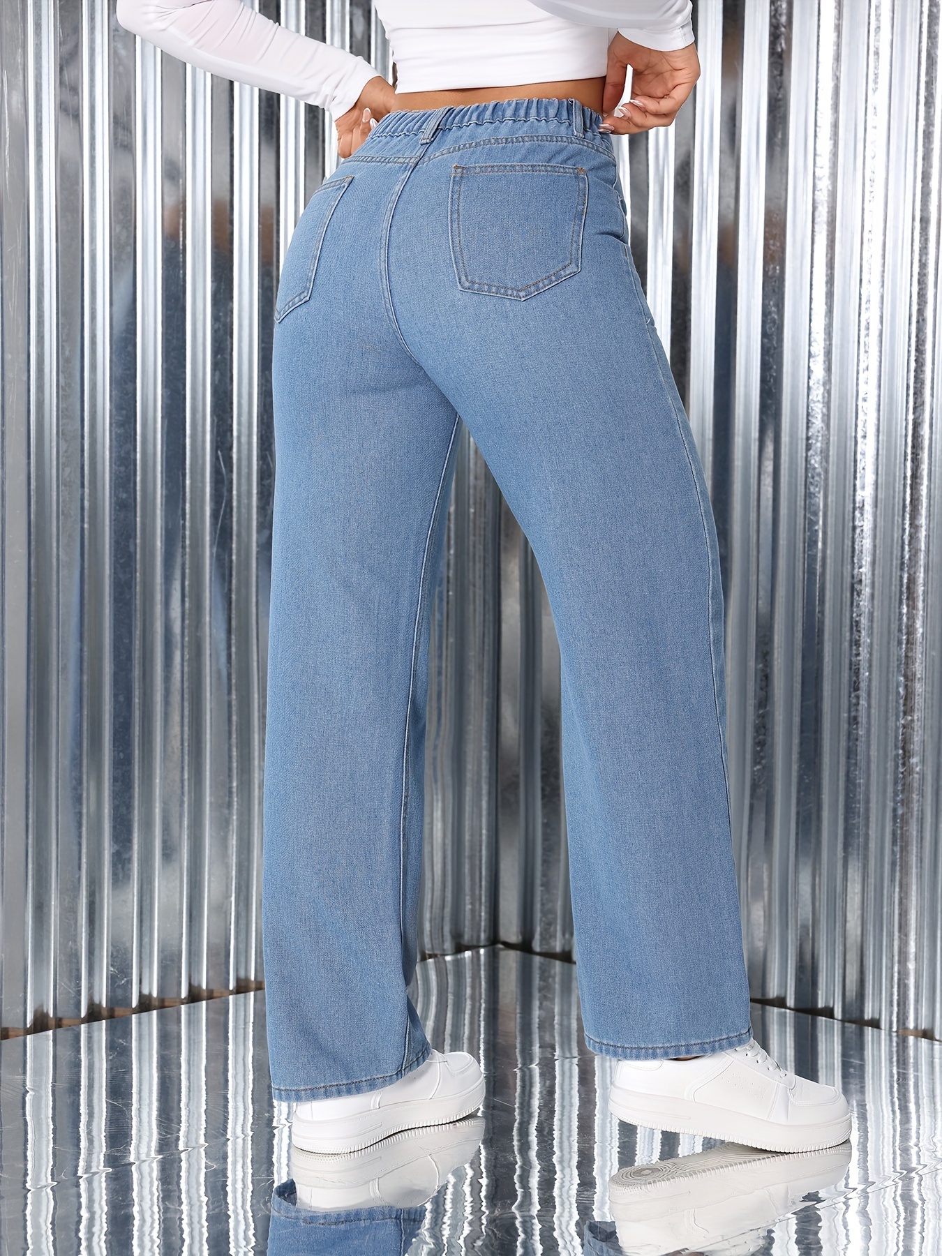 Jeans Femme Jambe Droite Décontracté Denim Avec Nœud Confortable