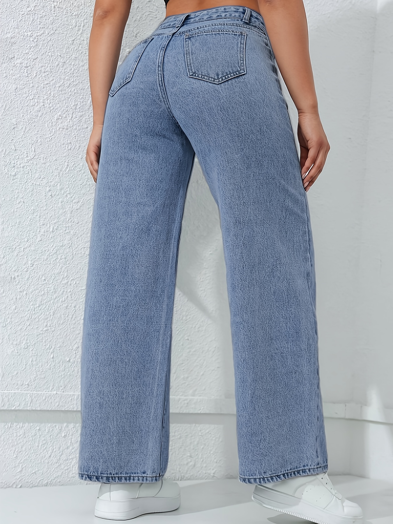 Jeans Femme Décontracté – Jambe Droite, Coupe Ample, Confort Toutes Saisons, Fermeture Boutons, Poches, Denim Bleu Clair, Idéal Sorties Week-end, Tissu Non Extensible, Coupe Relâchée