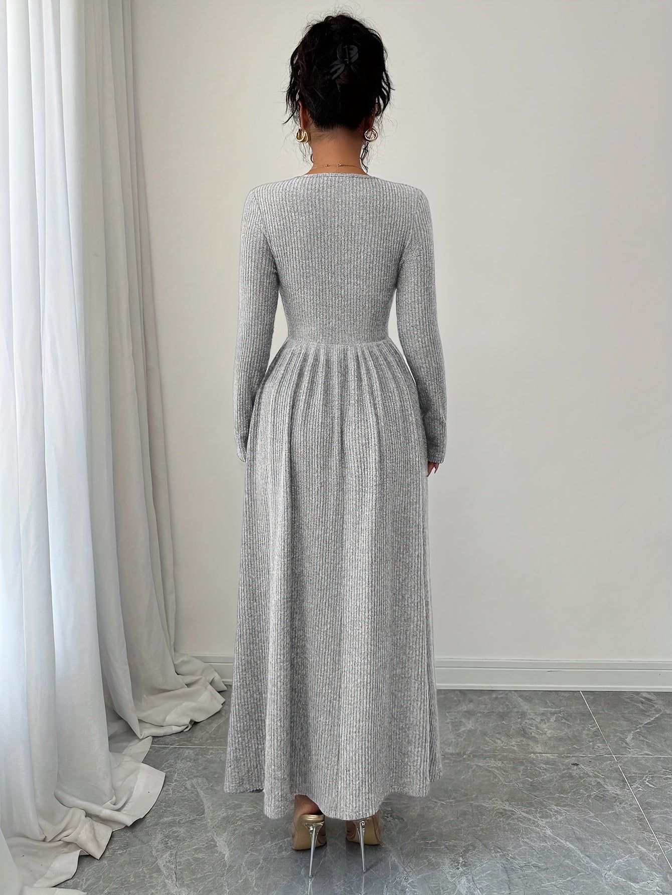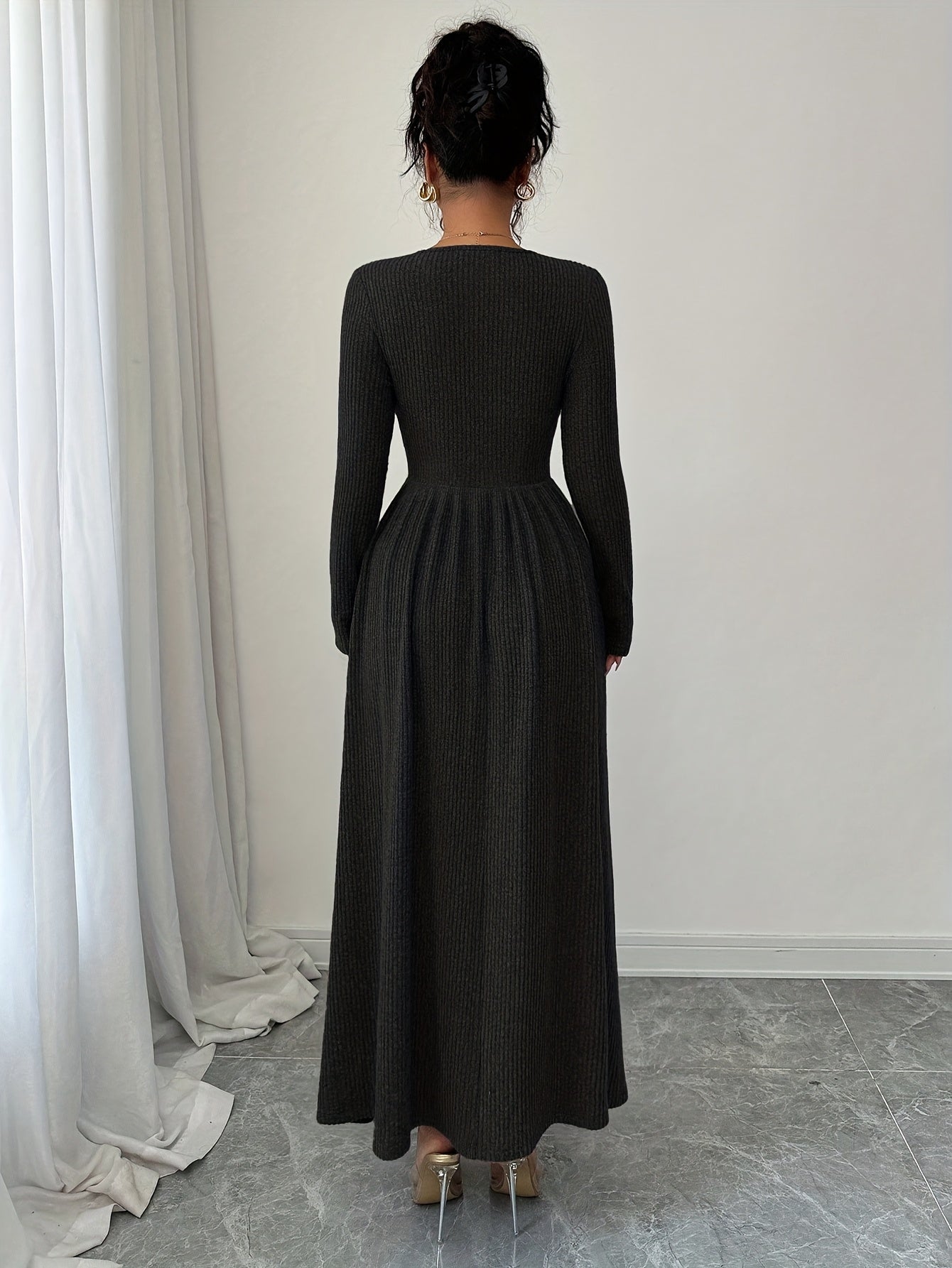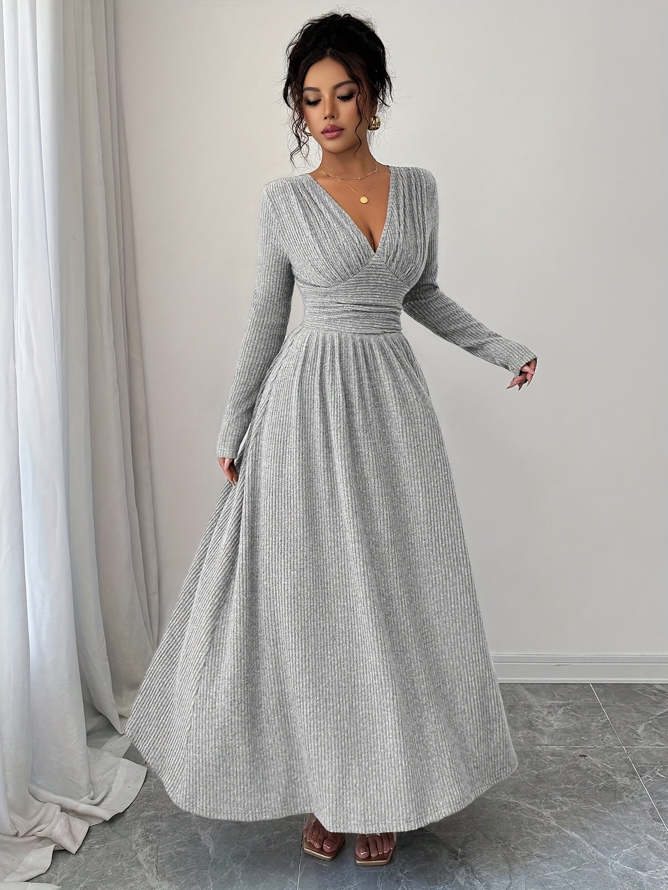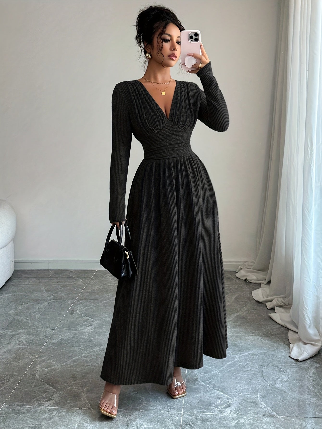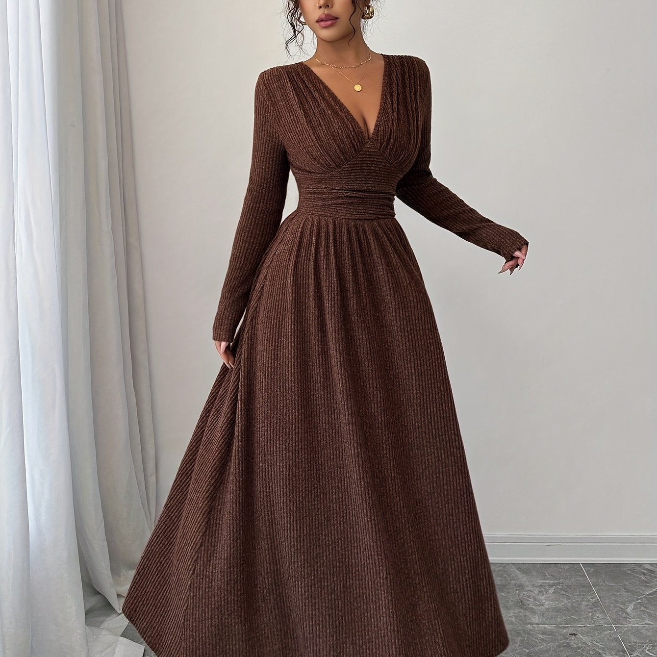 Robe Femme Élégante A-Line Maxi – Manches Longues, Col V, Robe Formelle et Quotidienne, Coupe Flatteuse pour Automne/Hiver, Bureau, Fête, Mariage, Tenues Quotidiennes, Robe Formelle et Décontractée, Port au Bureau, Ourlet à Volants, Look Stylé