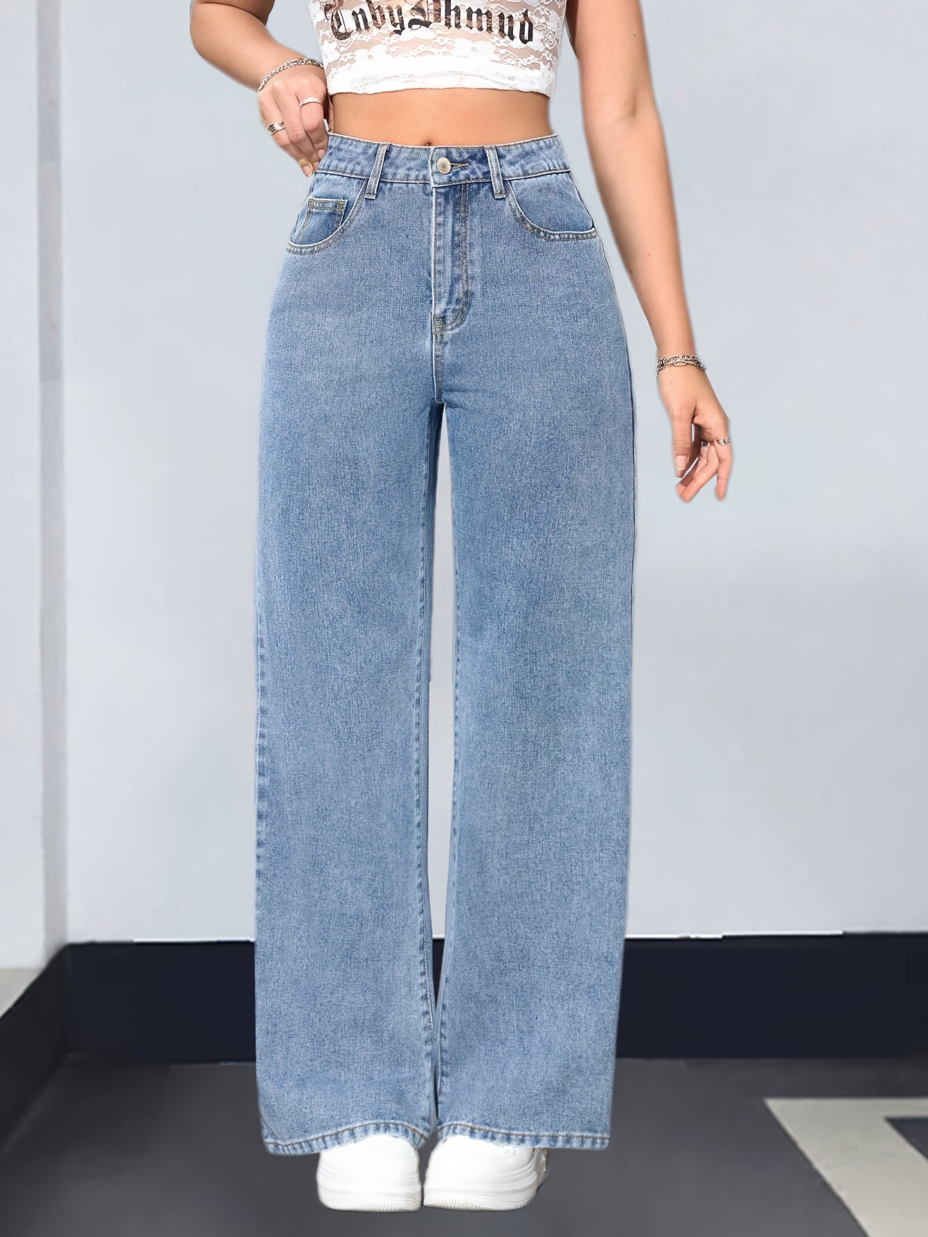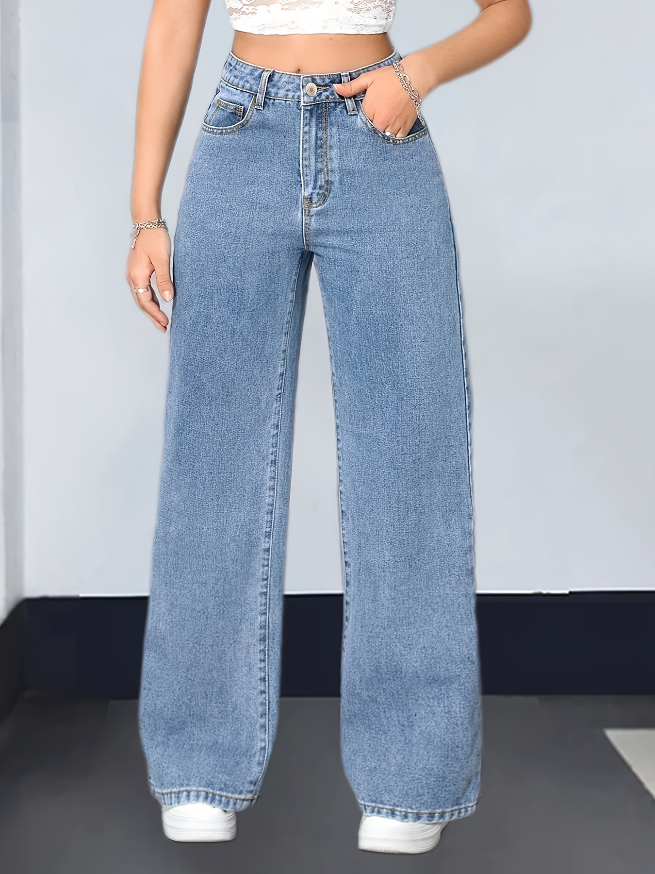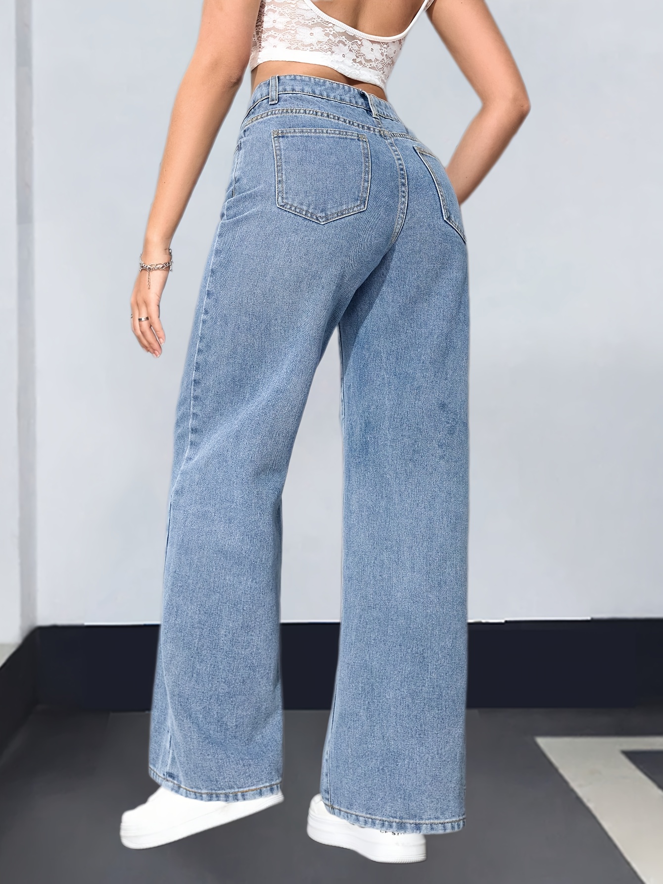 Pantalon évasé en denim stretch bleu élégant pour femme