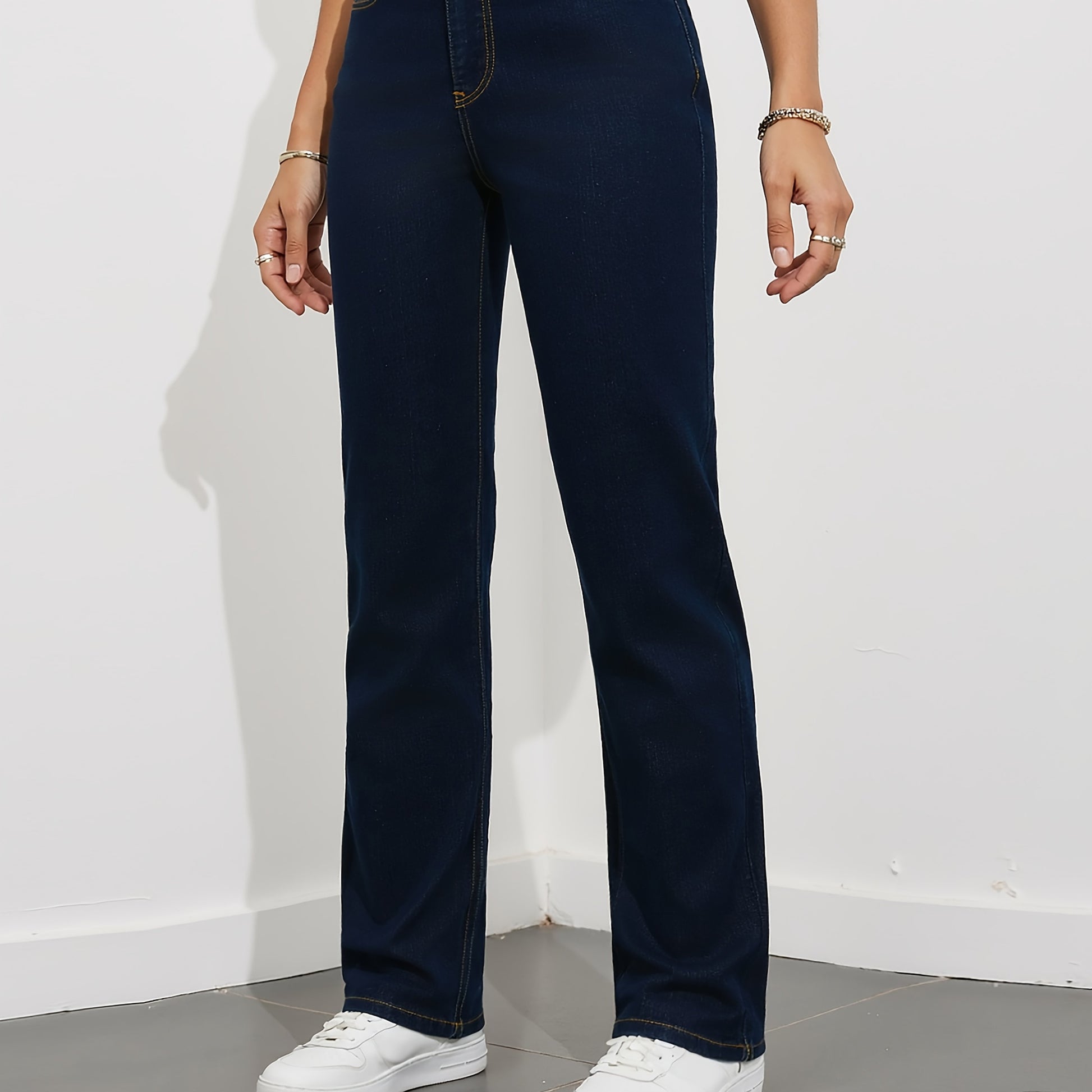 Pantalon élégant pour femme, taille haute, jambes larges - Bleu marine uni, coupe fuselée structurée, poche arrière en forme de cœur