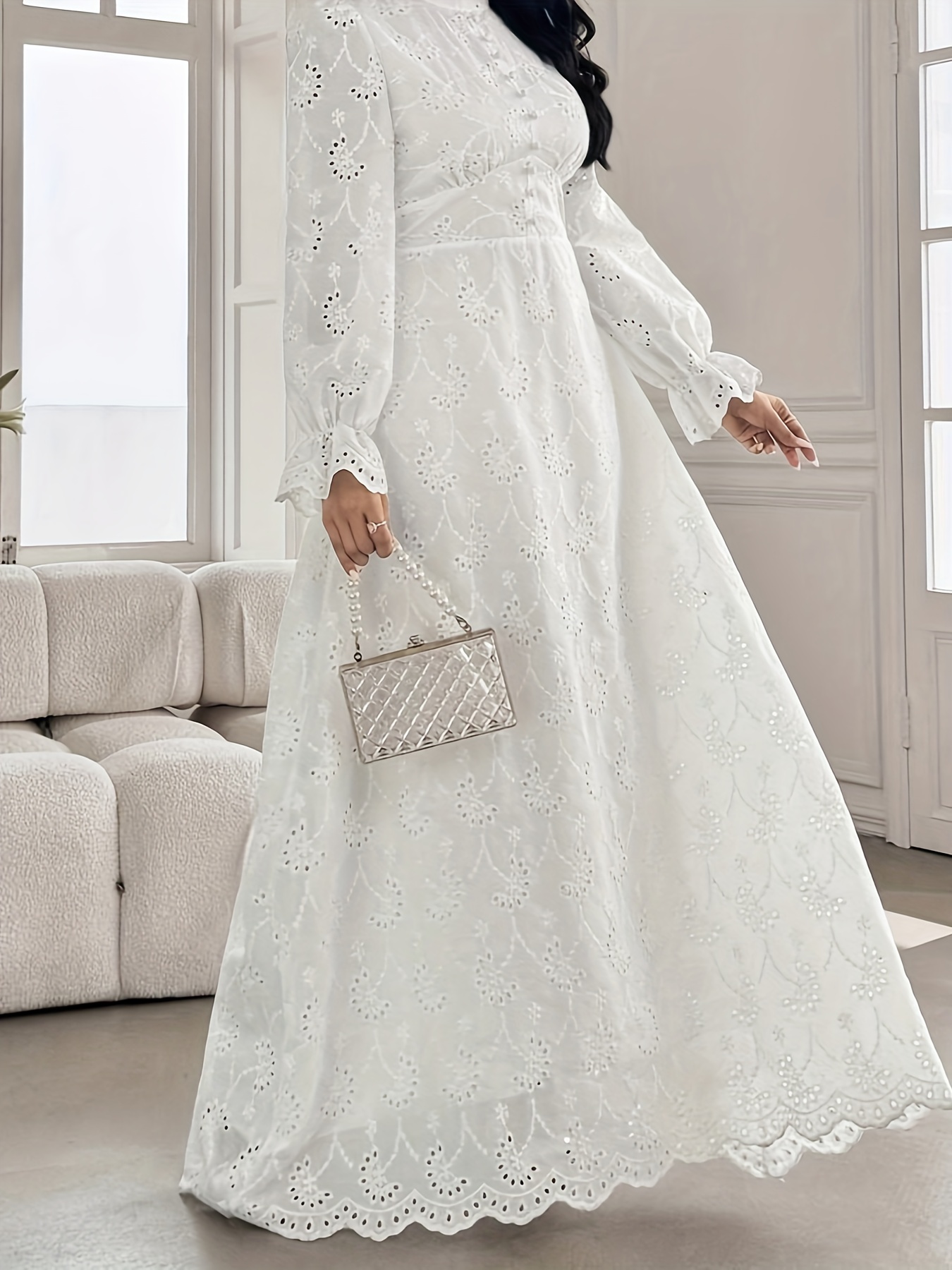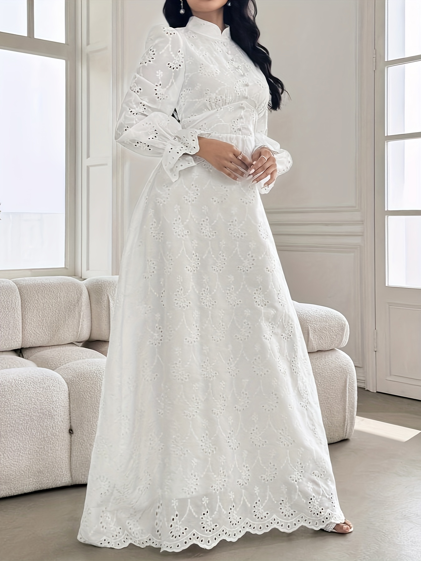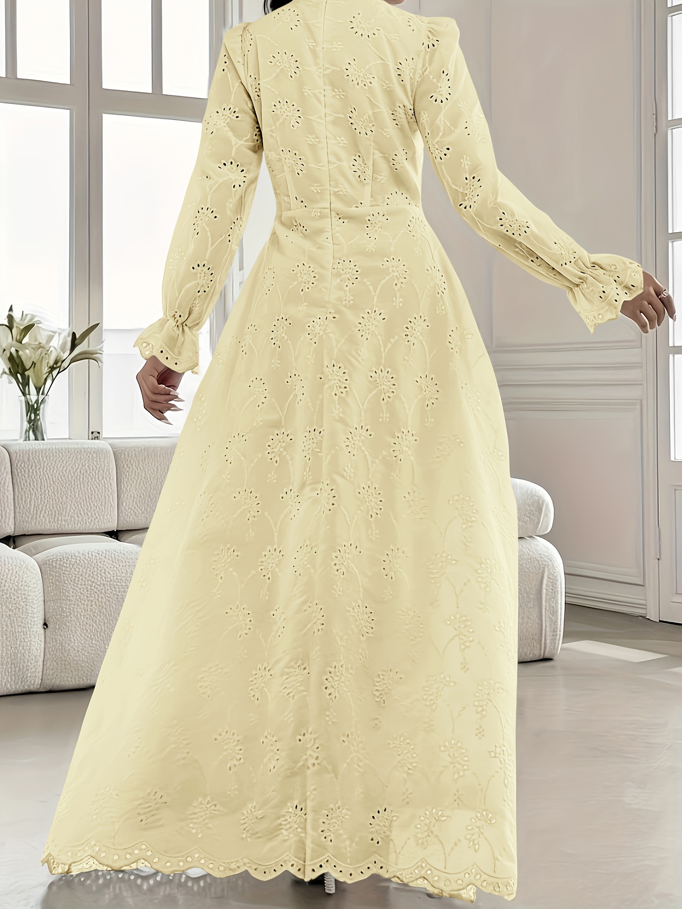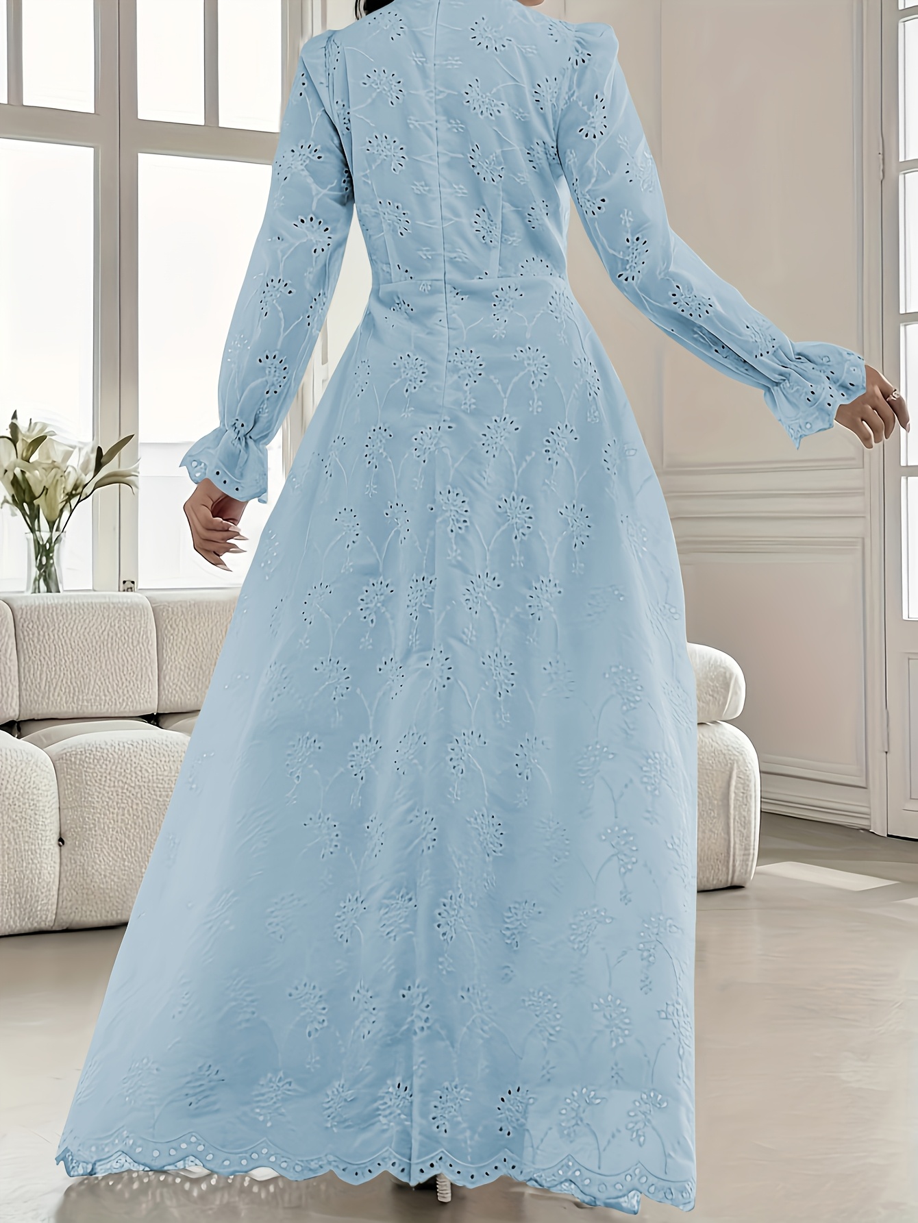Women'S French Embroidered Stand Collar Puff Sleeve Dress Featuring a Ruffled Design, Suitable for Dates, Vacations, Parties, And Everyday Commuting.