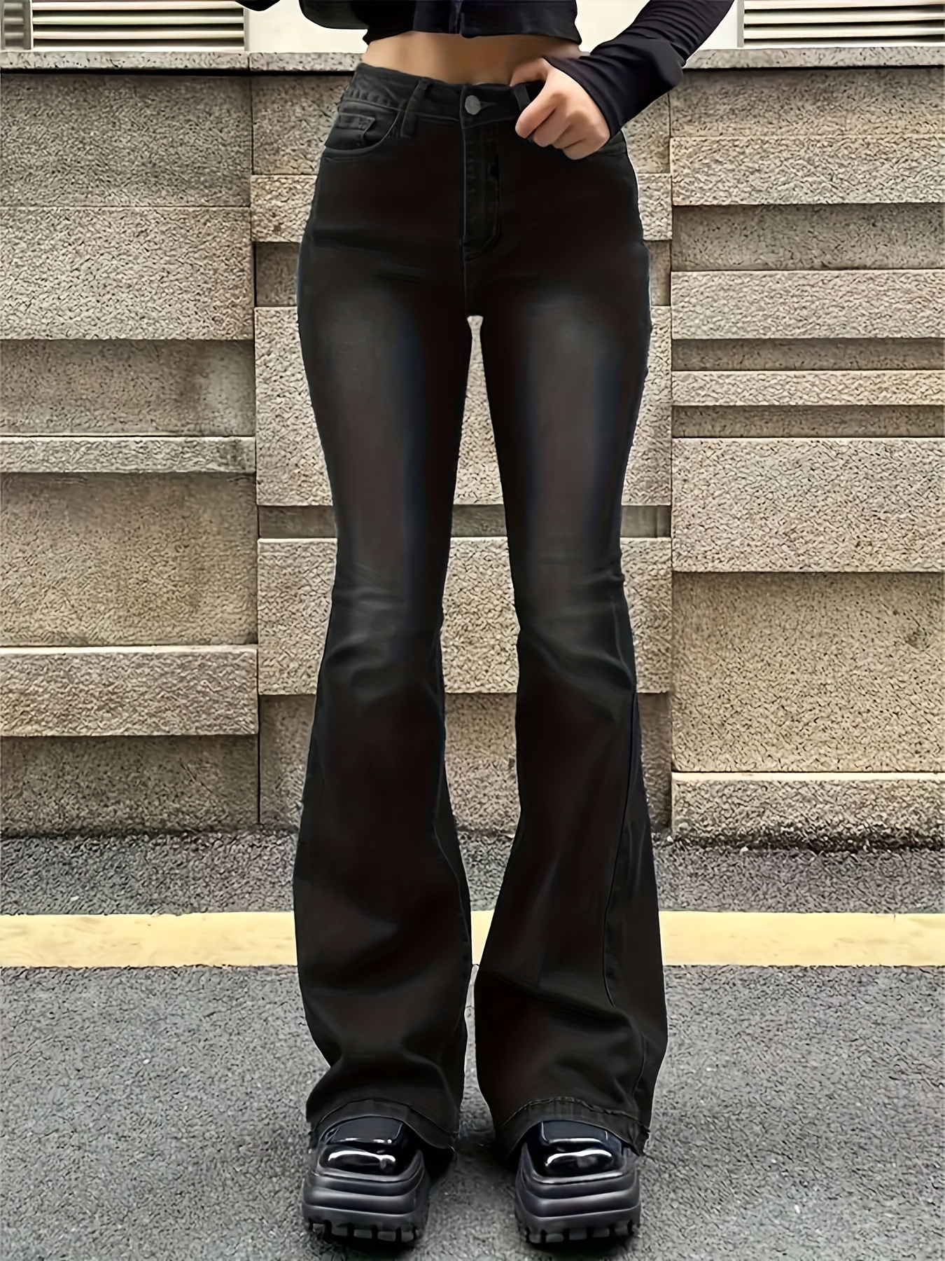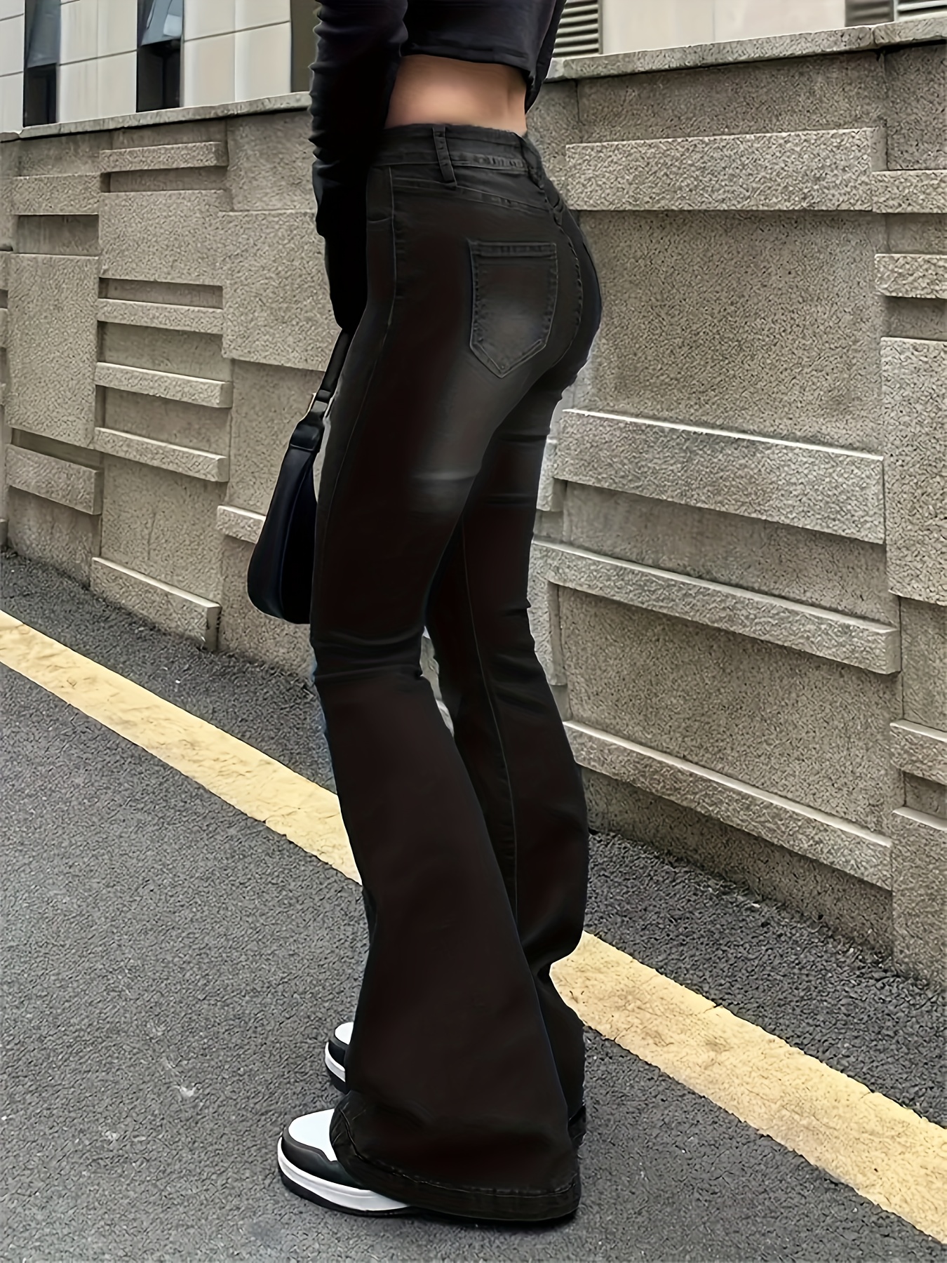 Jeans Femme Évasé Extensible Noir Slim Poches Obliques Bell-Bottom Décontracté Confortable Lavable